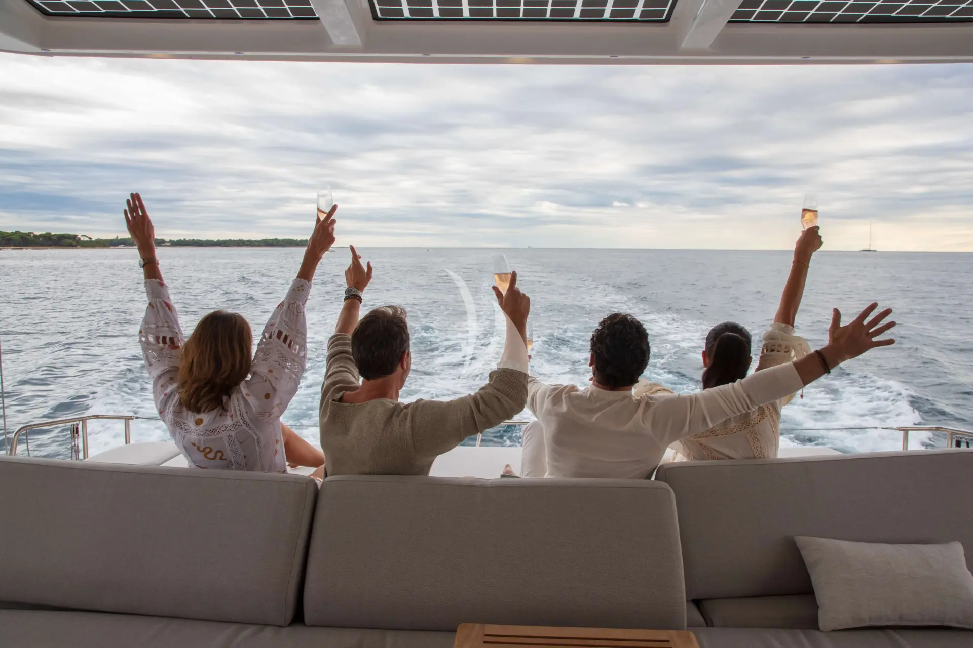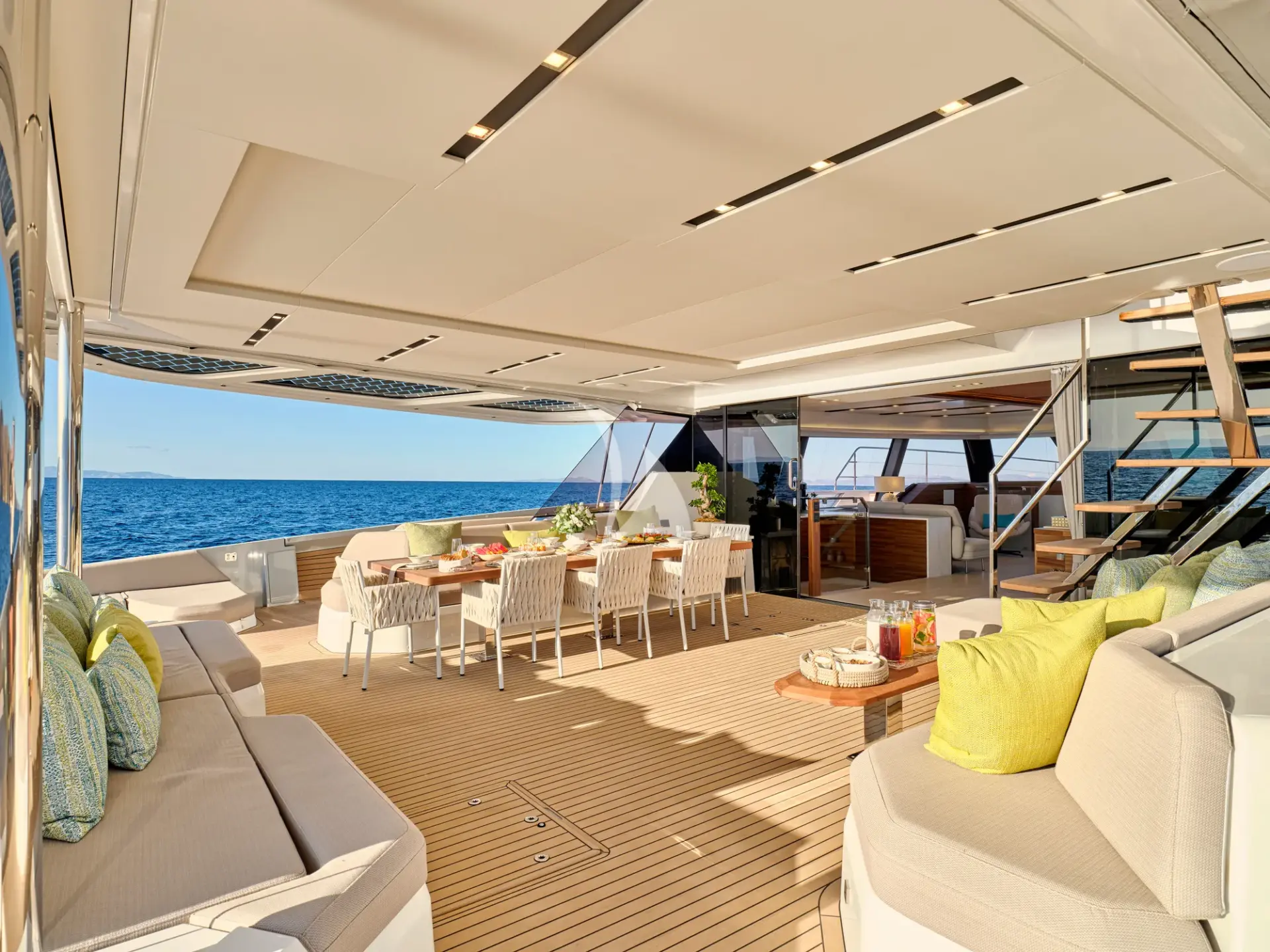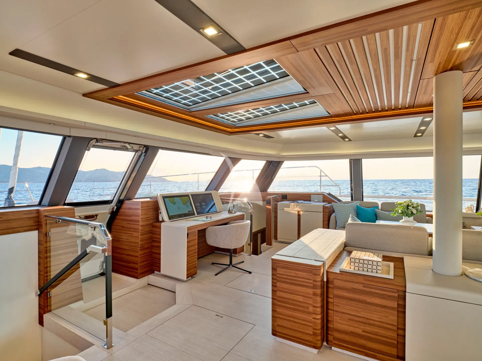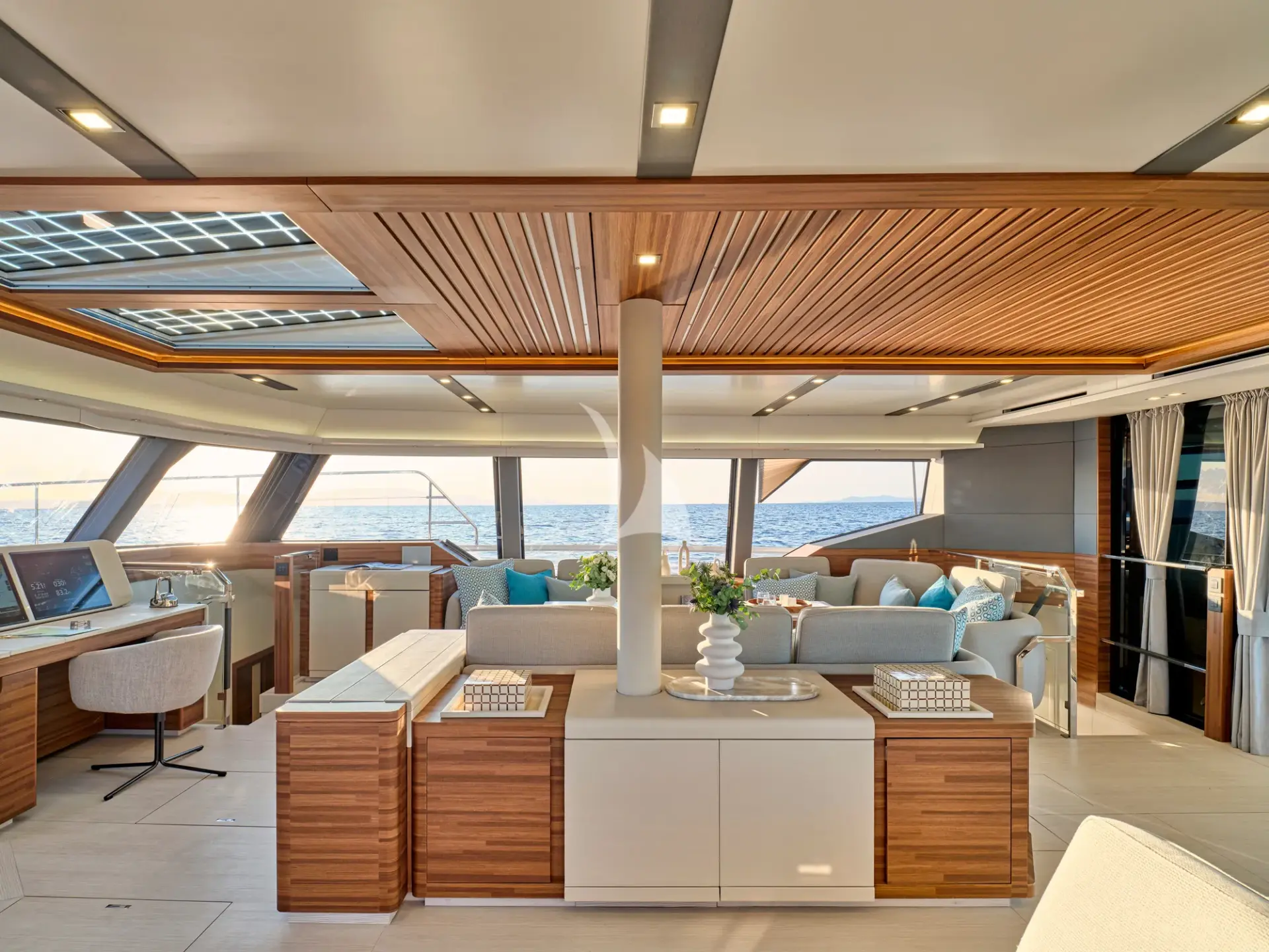 One of her biggest strengths is the sense of volume throughout: wide decks, airy interiors, and a seamless indoor–outdoor layout that makes it easy for everyone to spread out, socialise, or find a quiet corner to unwind. Whether you’re enjoying breakfast in the shade, lounging with a book, or moving between the saloon and aft deck as the breeze comes through, the flow of the yacht feels natural and unforced—perfect for unhurried days hopping between anchorages.