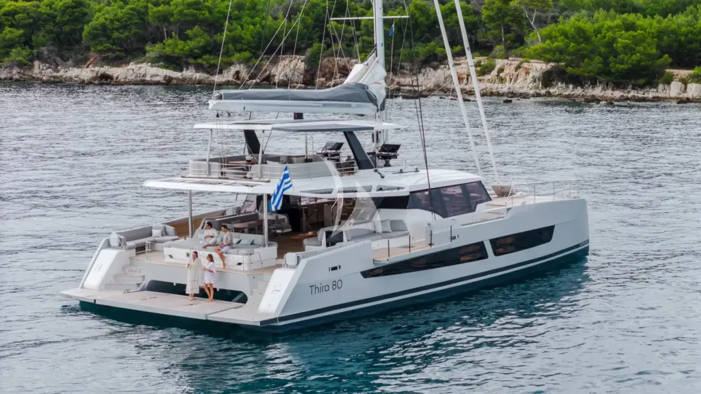 Magic Moments III is a brand-new Thira 80 catamaran, newly built and designed for stylish, easy cruising with up to 10 guests on board. With a professional crew of four taking care of every detail, she’s set to charter in the Caribbean and offers an effortless blend of comfort, space, and a relaxed island-living feel.