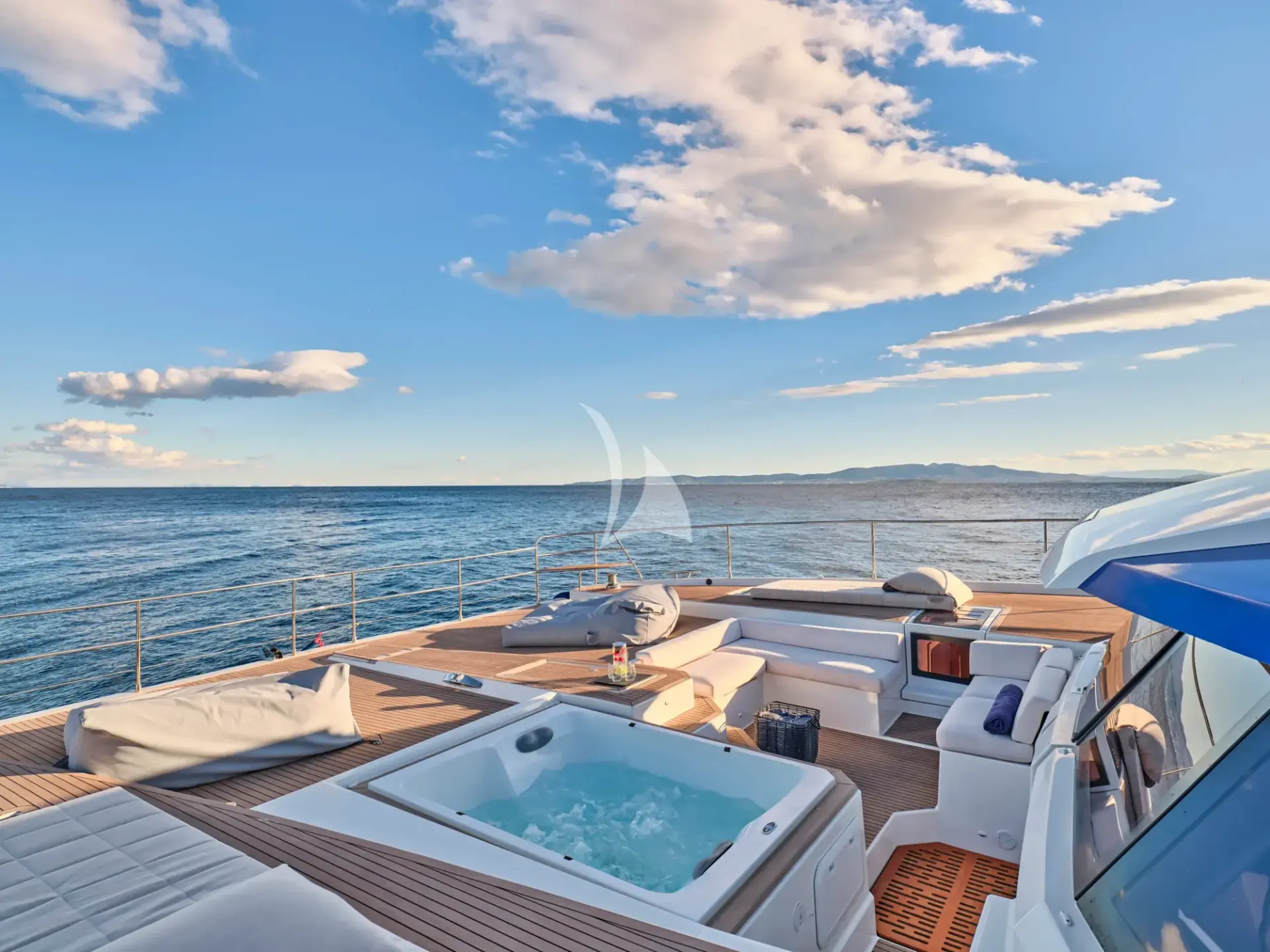Every space on Majesty of Greece has been thoughtfully designed for ultimate enjoyment. Relax in the expansive cockpit perfect for social gatherings, soak in the sun-drenched flybridge, or unwind on the inviting foredeck complete with a Jacuzzi—your private sanctuary over the shimmering waters of Greece.