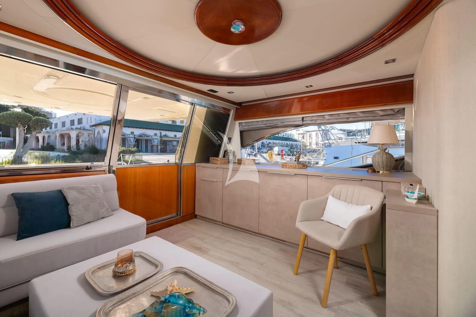 Luxury motor yacht Mary is a stylish 68 feet Ferretti, which combines comfort and style along with exceptional performance. She is based in the wonderful Greek island of Rhodes and is available for private charters in the Greek islands of the Dodecanese, the Cyclades, Crete and the Turkish coast. Sunbathe or enjoy afternoon barbeques under the shade of the Bimini on the spacious sun deck. The table on the aft deck offers an ideal environment for breakfast and brunch while appreciating the timeless simplicity and beauty of the seascape view. Unwind with your favorite DVD or CD in the full width Salon, furnished with rich cream leather and fully air conditioned. The raised dining area features a briarwood dining table, comfortably seating eight. Gourmet meals, tailor made to personal taste, will be served from the adjacent galley while the crew attend your every wish and pamper you and your guests in 5 star luxury!