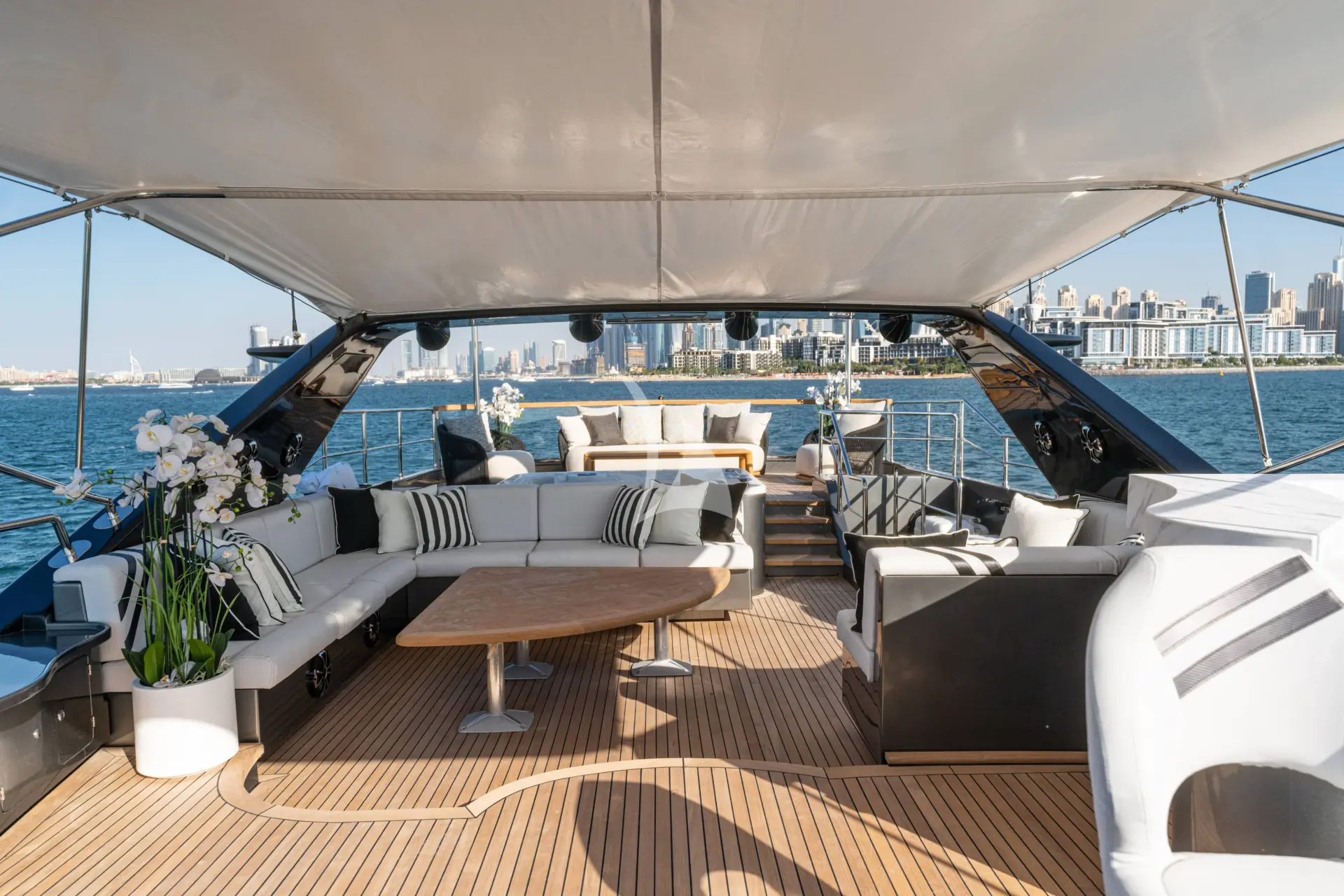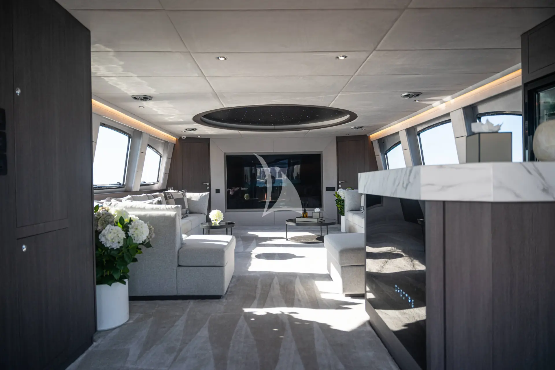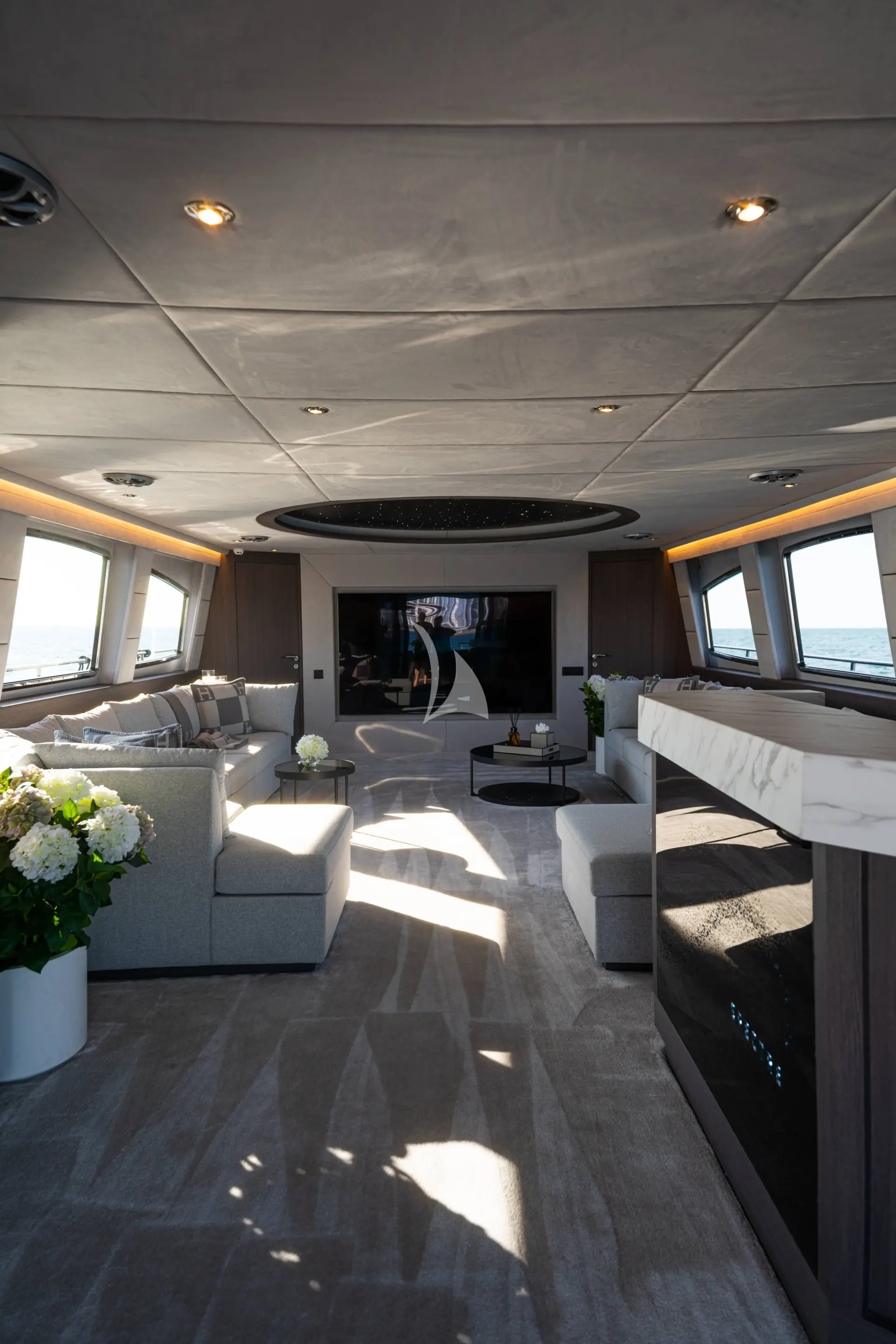 The yacht’s interior reflects understated elegance, featuring sophisticated furnishings, refreshed décor, and state-of-the-art systems throughout. A modern, fully equipped galley and advanced audiovisual technology enhance both comfort and entertainment. Spectre accommodates up to 8 overnight guests across a spacious master suite, a VIP cabin, and two beautifully appointed double cabins, each crafted to ensure privacy and relaxation. For events the yacht comfortably hosts up to 30 guests, making it an exceptional choice for larger gatherings and high-profile occasions.