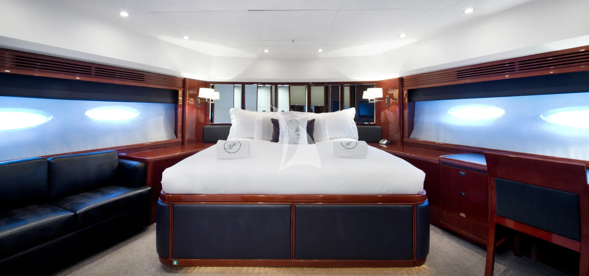 * Sweeping windows span Molly Malone’s saloon and her dining areas. This enhances the yacht's open layout with an almost panoramic look. Below deck, she offers beautiful, elegant staterooms which provide superb living space for an extended stay!