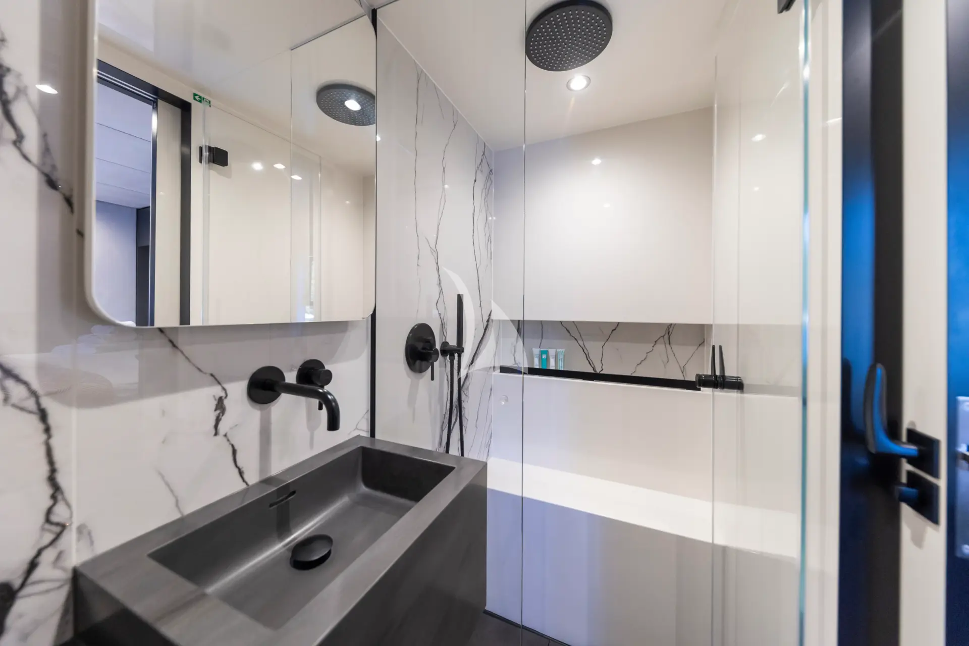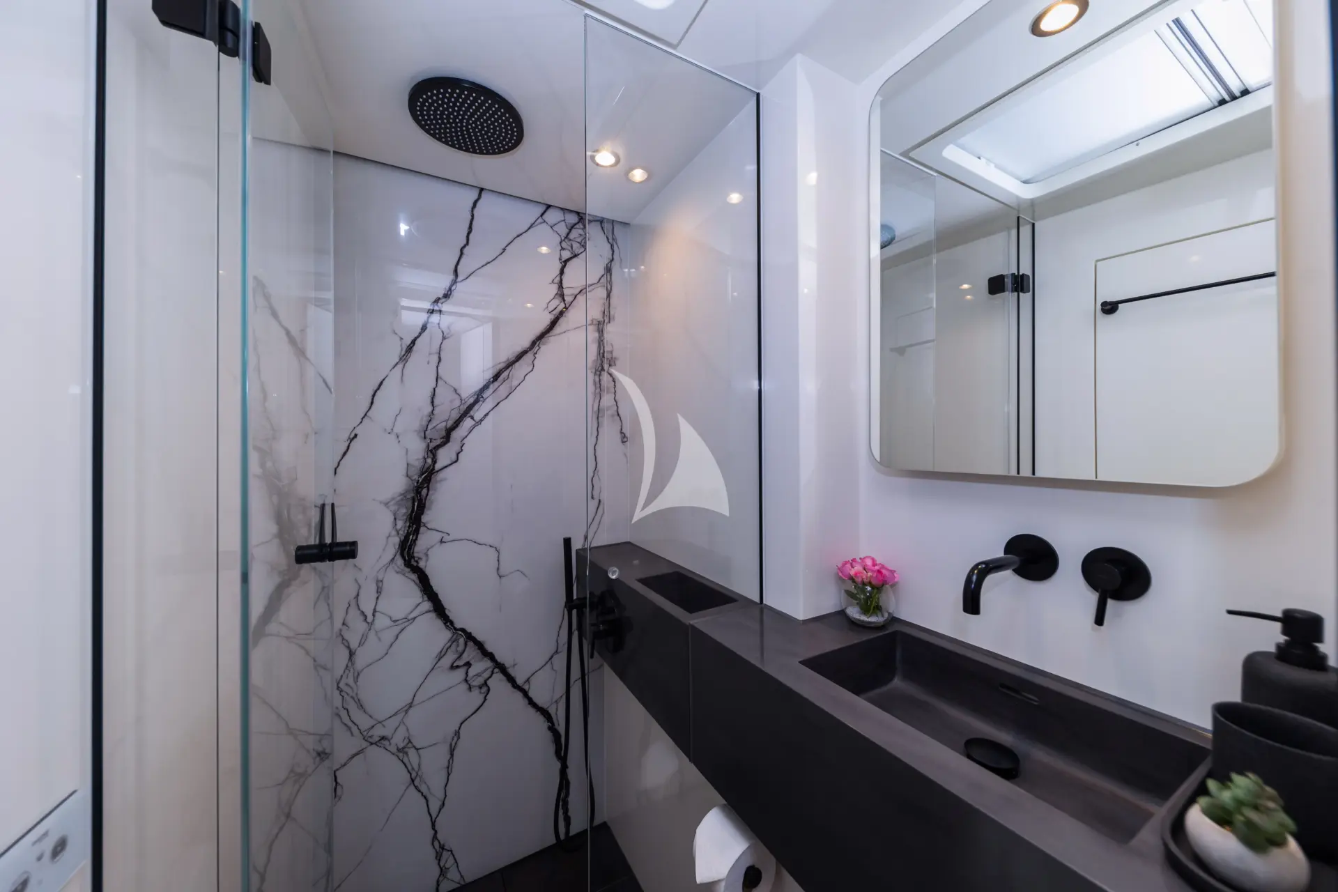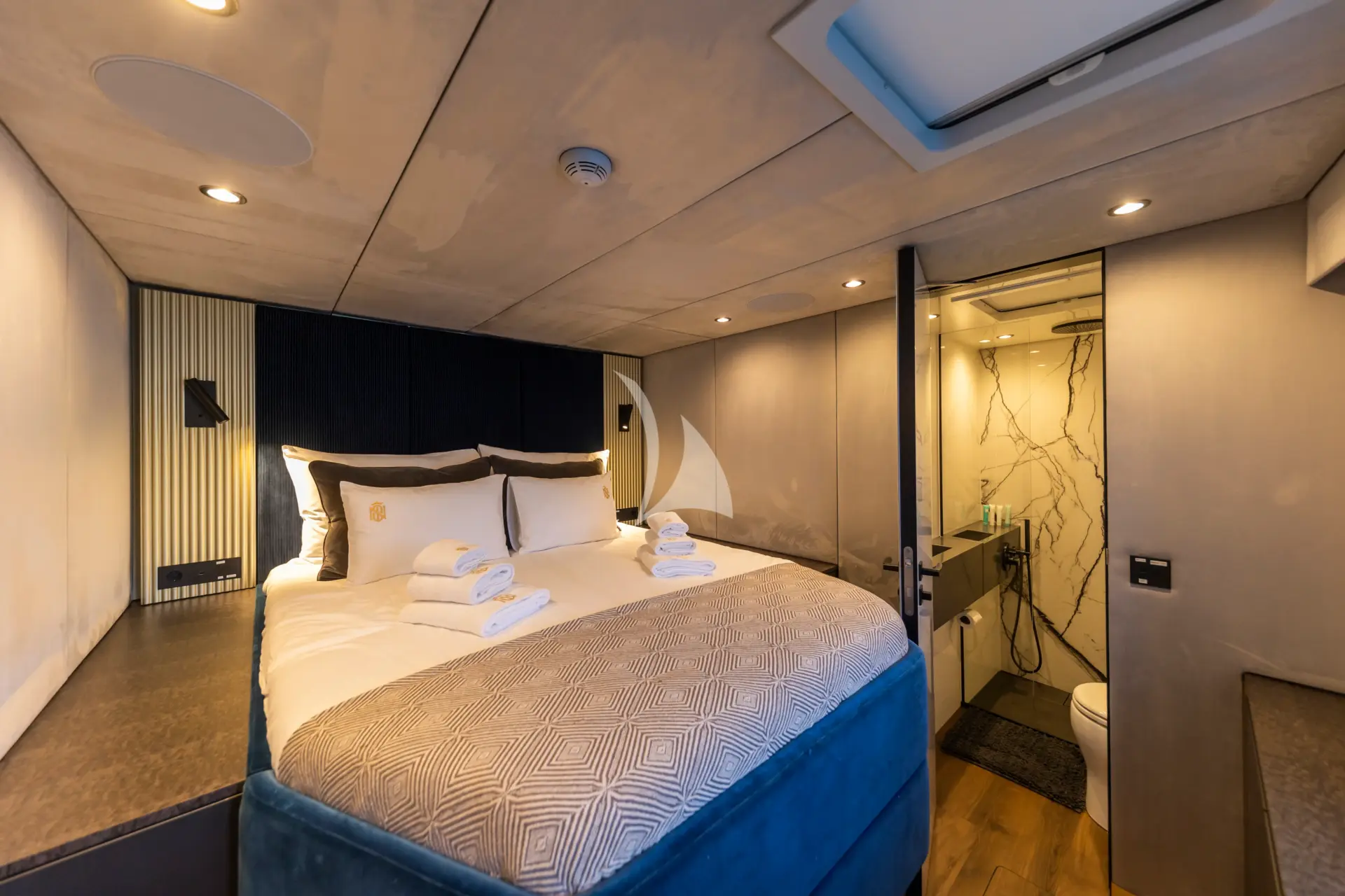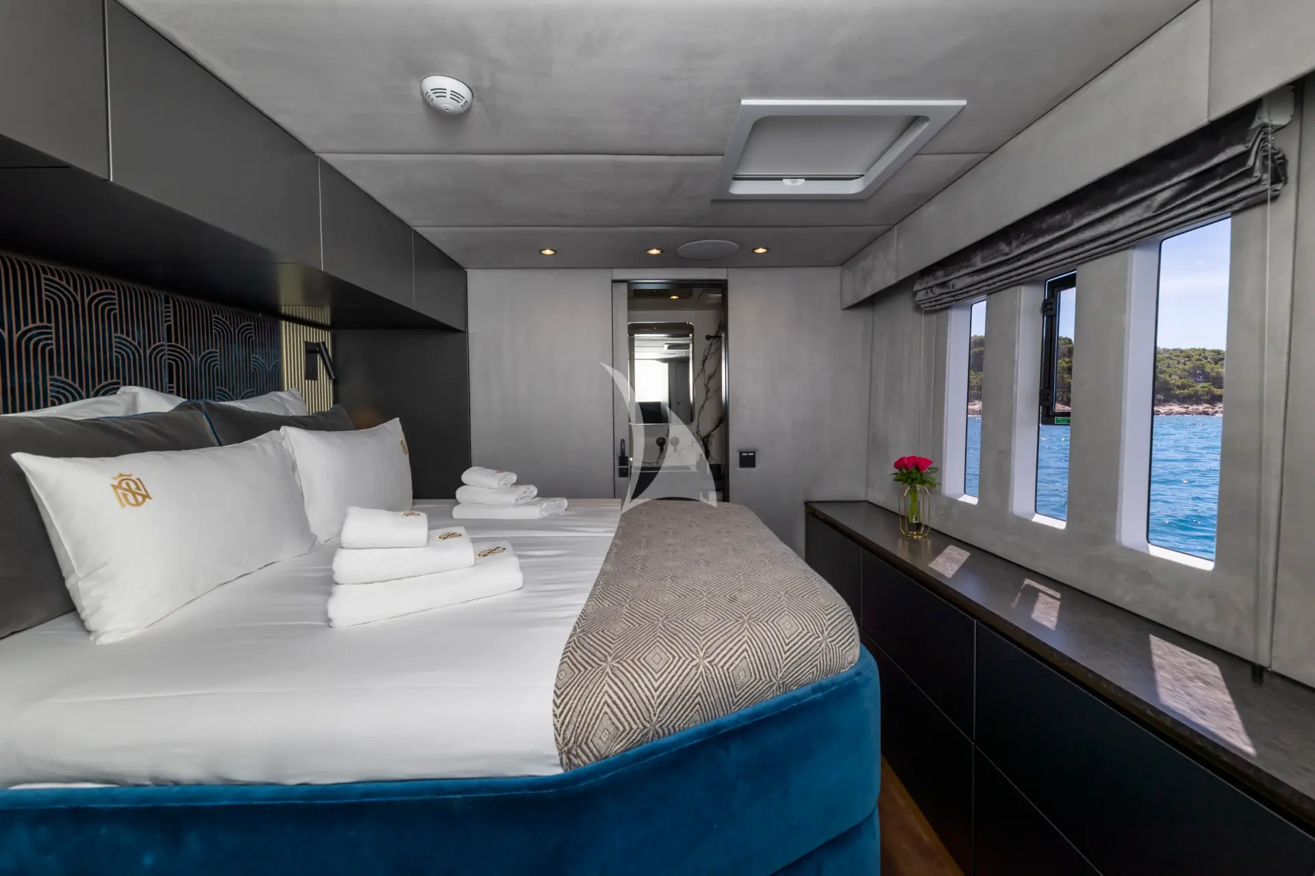 MR.SI is a luxurious and contemporary Sunreef 60 that combines sleek design with spacious comfort. Expansive windows fill the saloon with natural light and offer panoramic views, while sliding glass doors seamlessly connect indoor and outdoor living areas. Each cabin features a private ensuite, individual climate control, and personalized settings, allowing guests to wake up and fall asleep to enchanting sea views in both the Master and Guest rooms.
