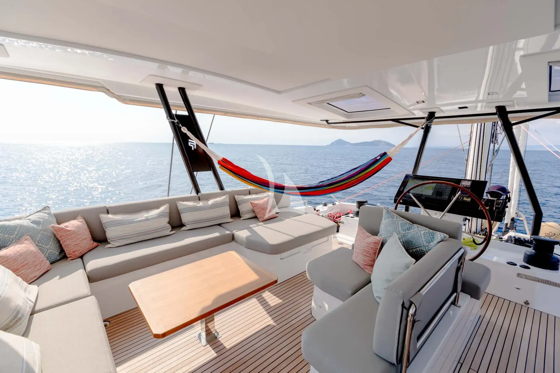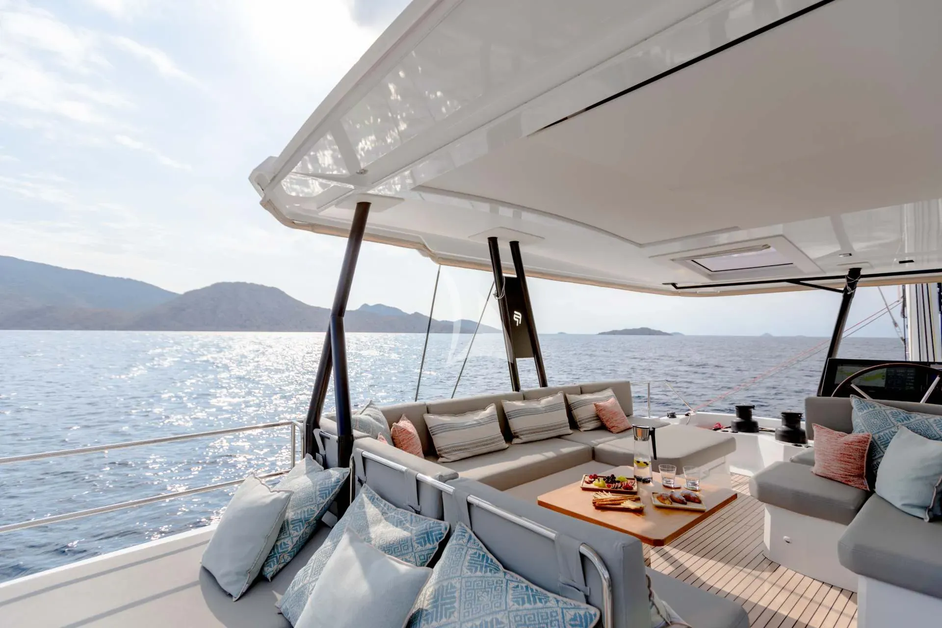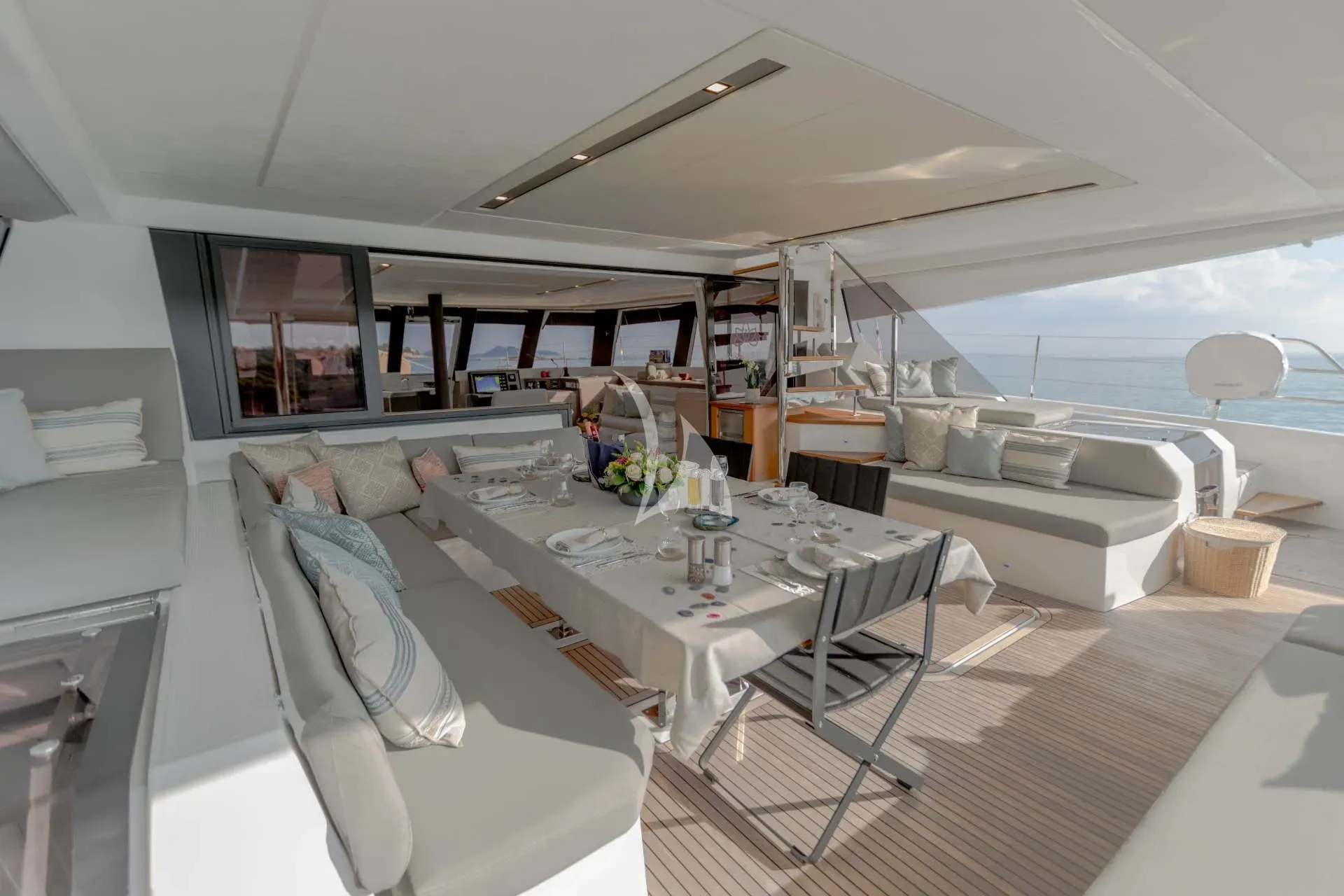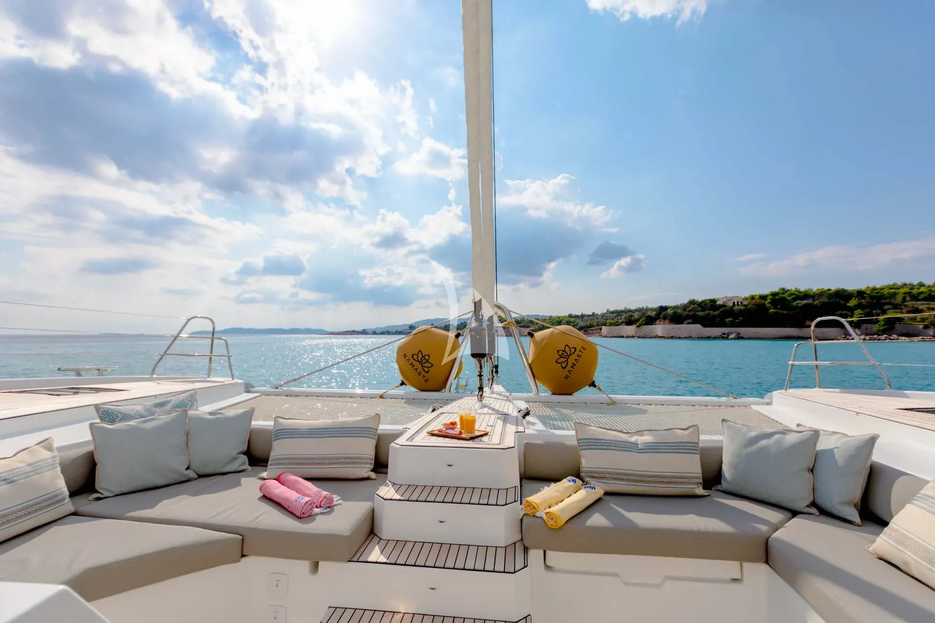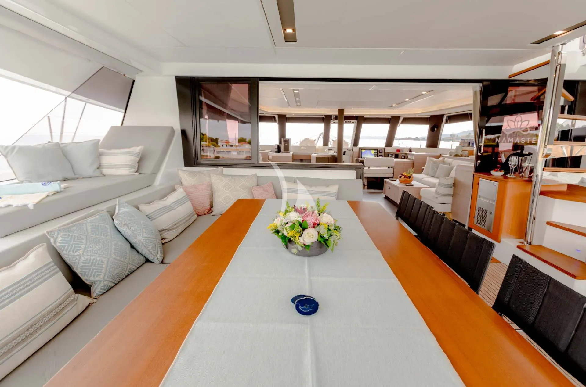 S/Y Namaste is a magnificent Fountaine Pajot Samana 59, designed to offer the perfect harmony of space, elegance, and freedom. With her breathtaking 30m² flybridge — the largest in her category — and her beautifully balanced blend of open social areas and private retreats, she invites guests to savor the art of living at sea in true French style.