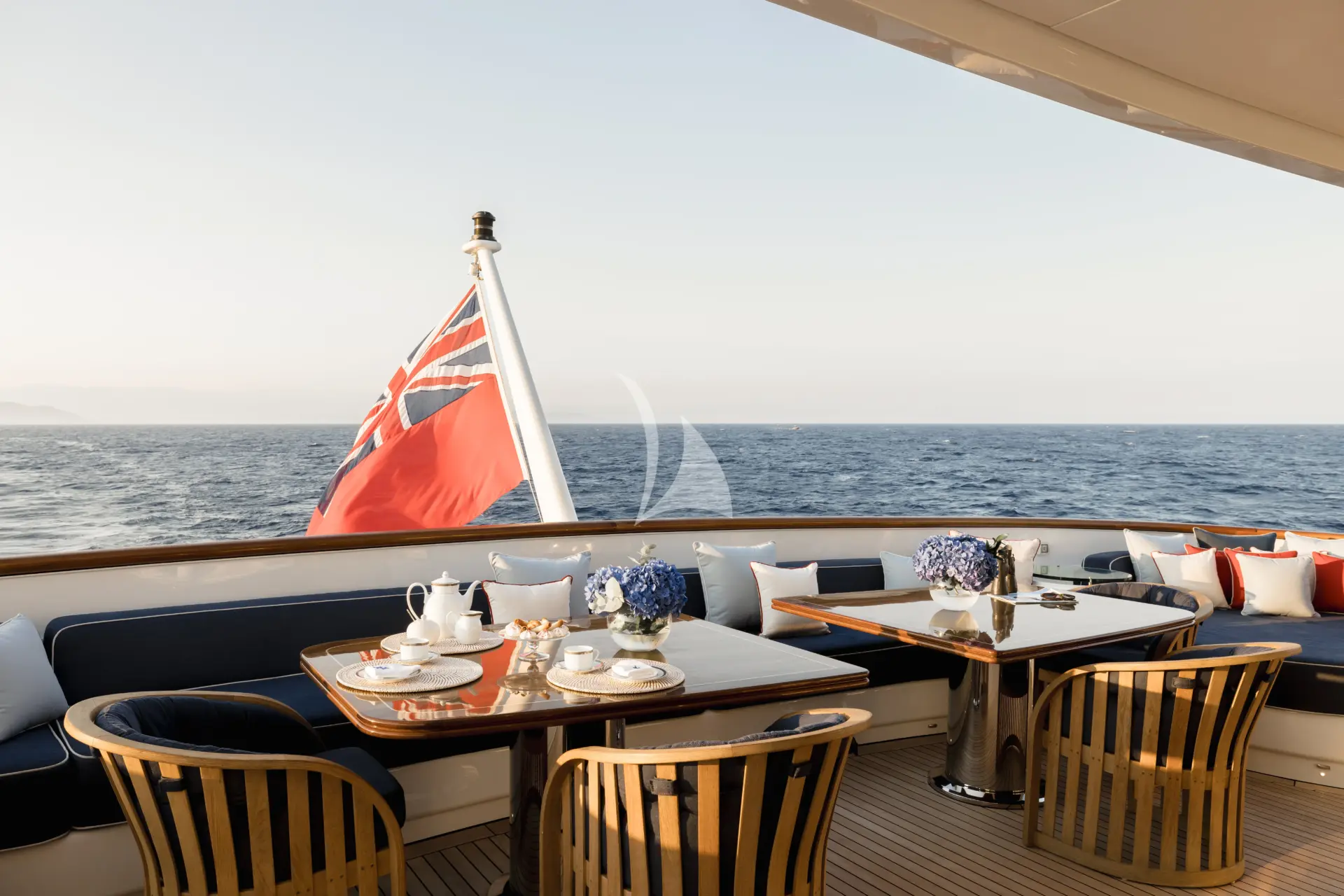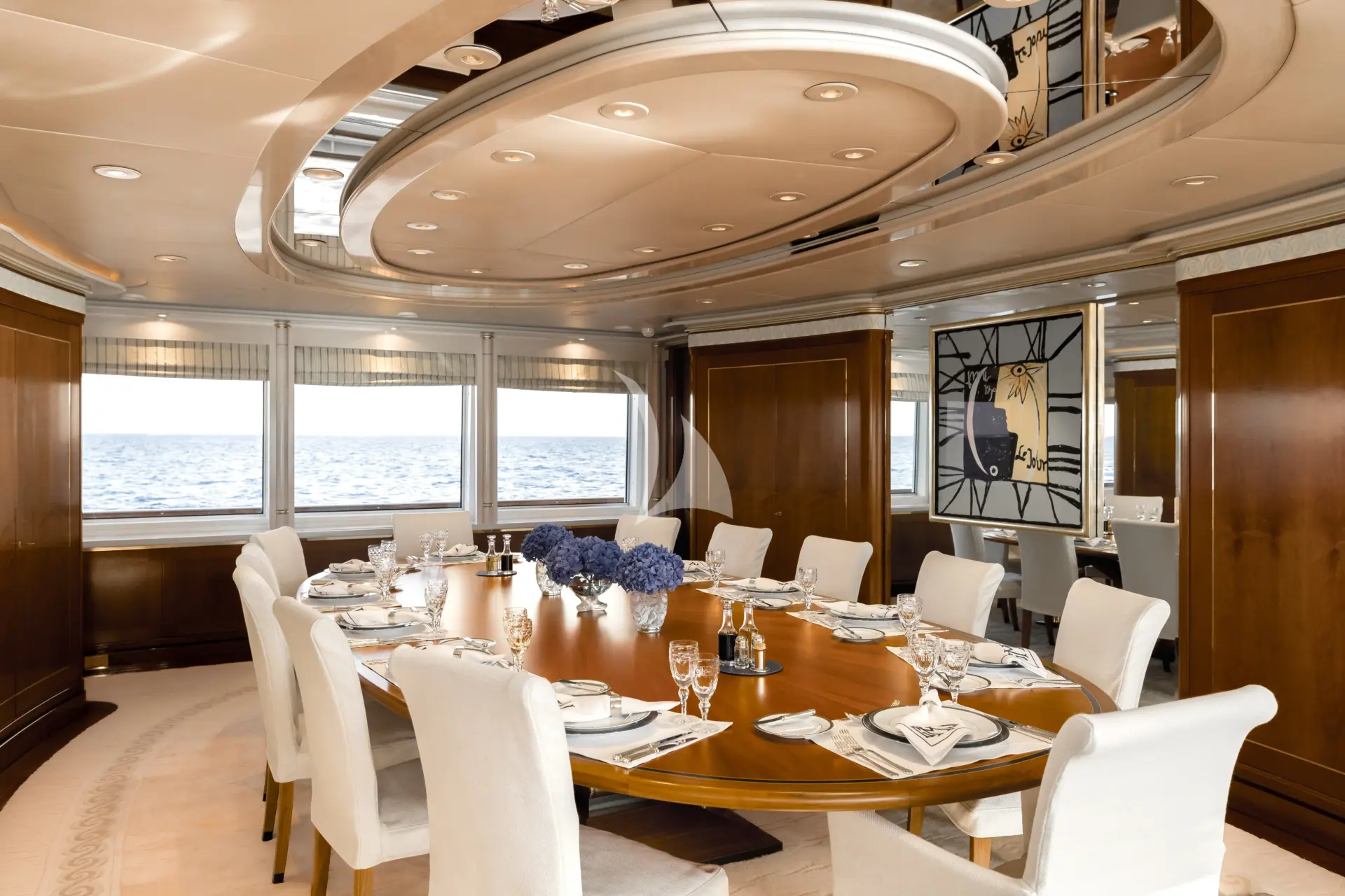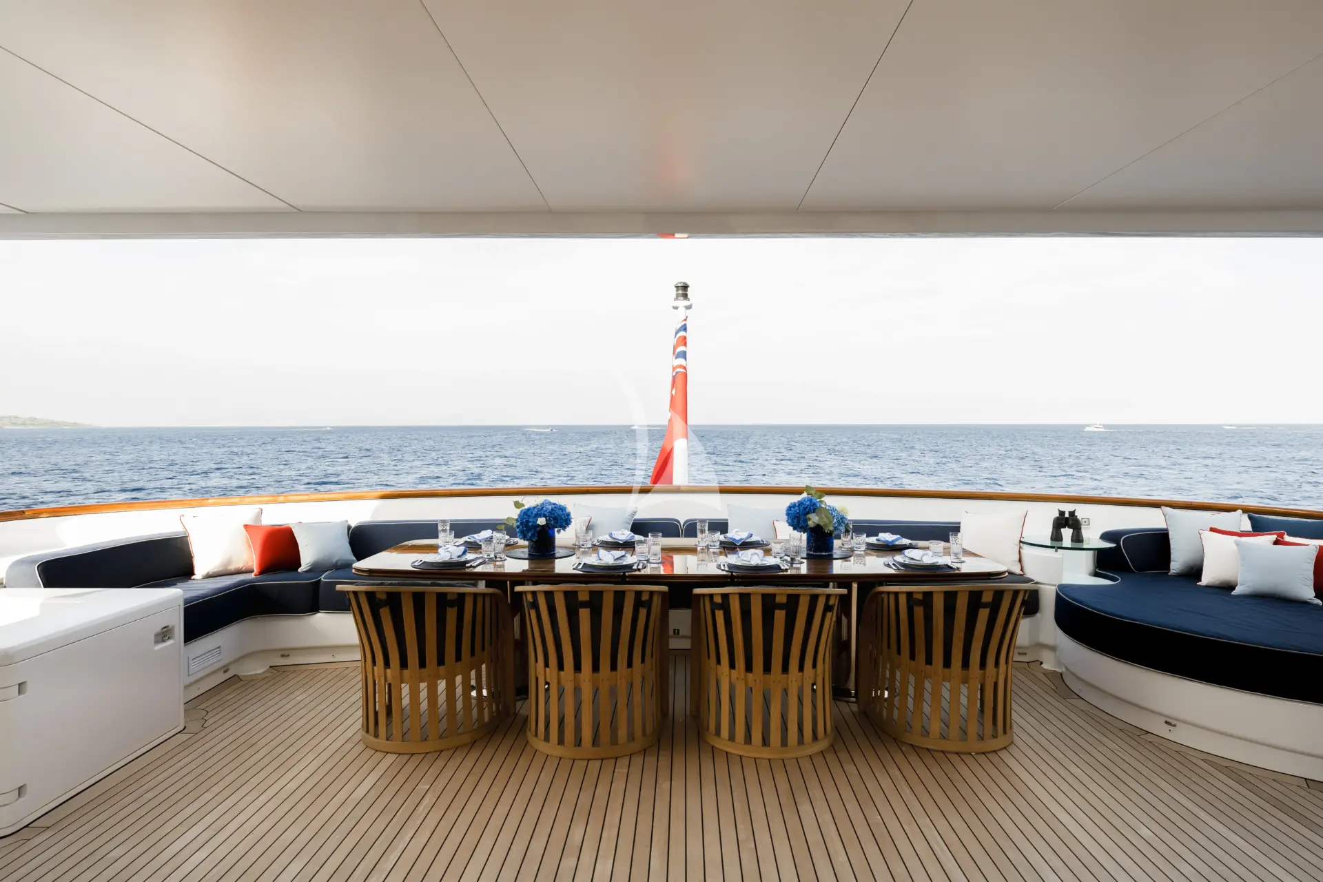 With tenders launched, the aft section of the sundeck transforms into a gym or open-air cinema — an extraordinary multi-purpose space equally suited to energetic days or relaxed evenings under the stars. For quieter moments, the upper and main deck exterior areas offer private dining and lounging away from the main social flow. More formal occasions are equally well catered for, with indoor and outdoor dining for up to 12 guests.