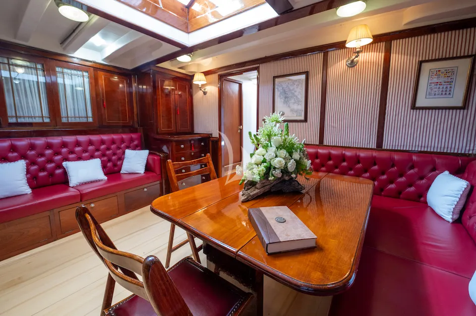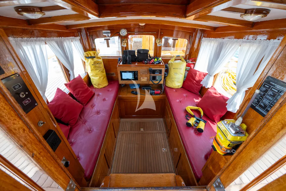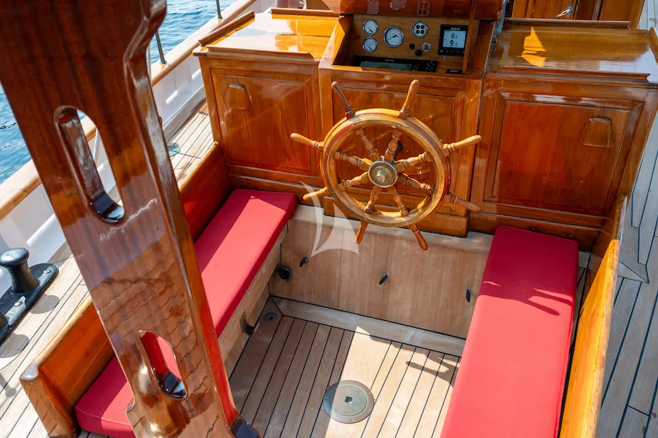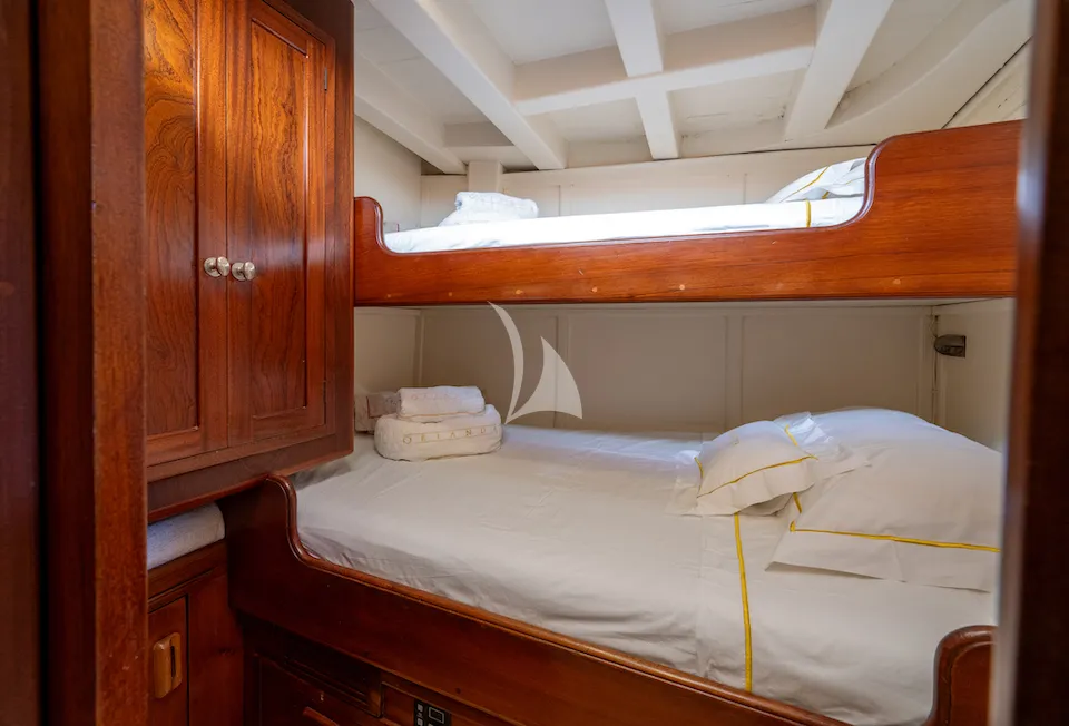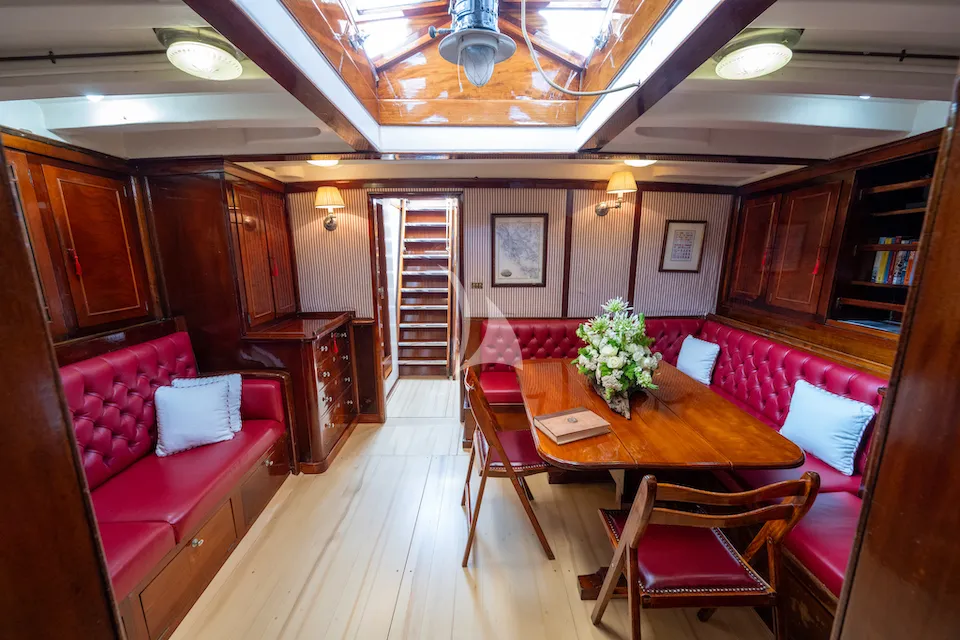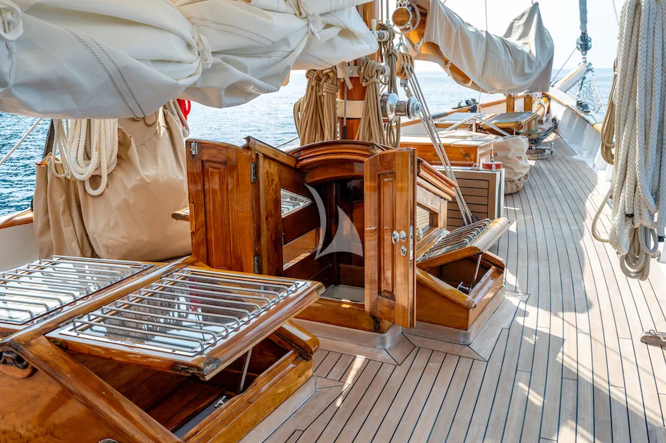 She sleeps 8 guests in 4 cabins, served by a crew of 3, offering all the comforts and safety of modern yachting without losing the charm and craftsmanship of the 1930s.