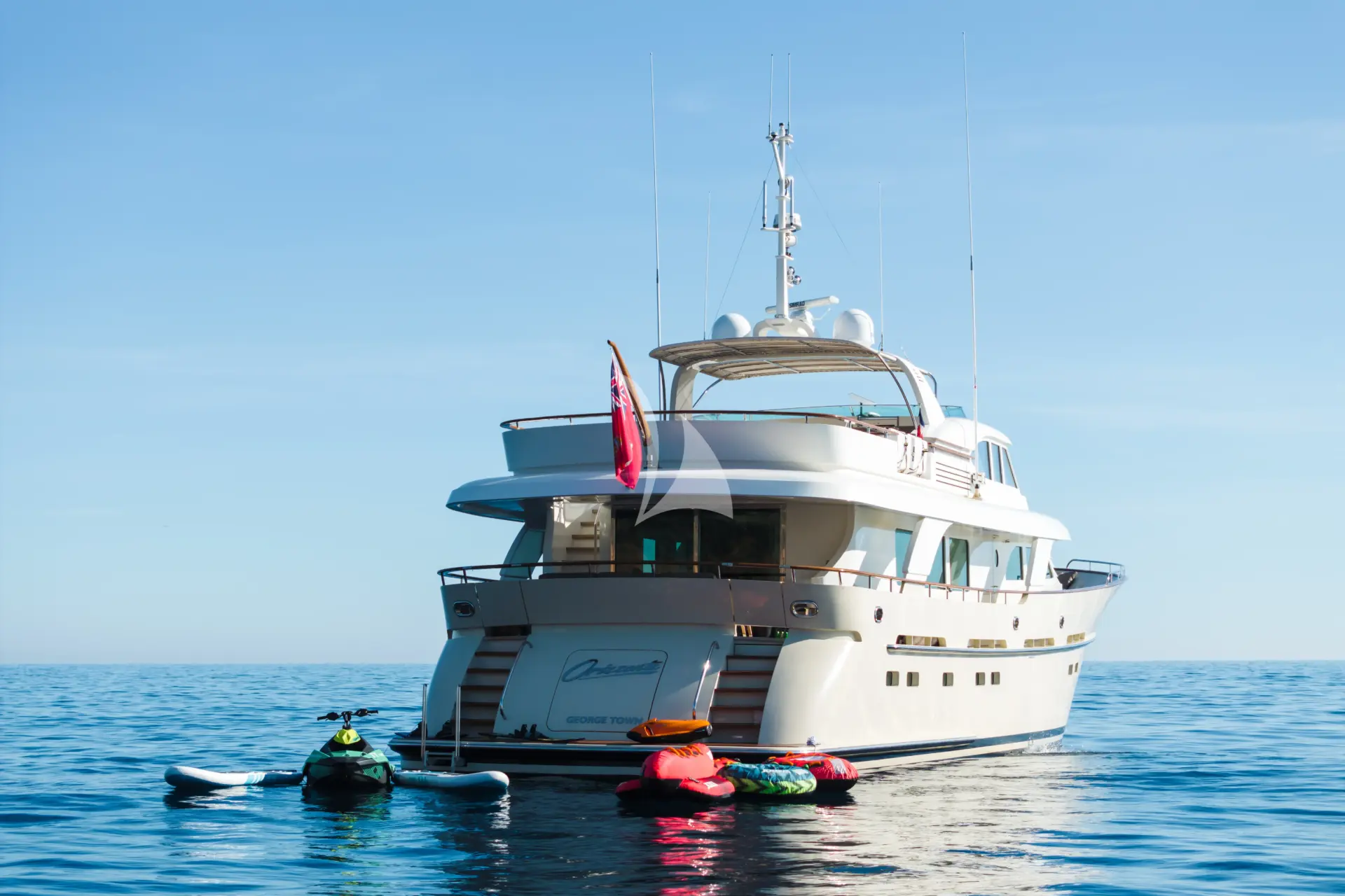 Venture into the crisp waters from the swim platform for a refreshing escape, or continue the excitement with a plethora of water toys, including a jet ski, seabob, water skis, and snorkeling gear, ensuring your days are filled with exhilarating moments.
