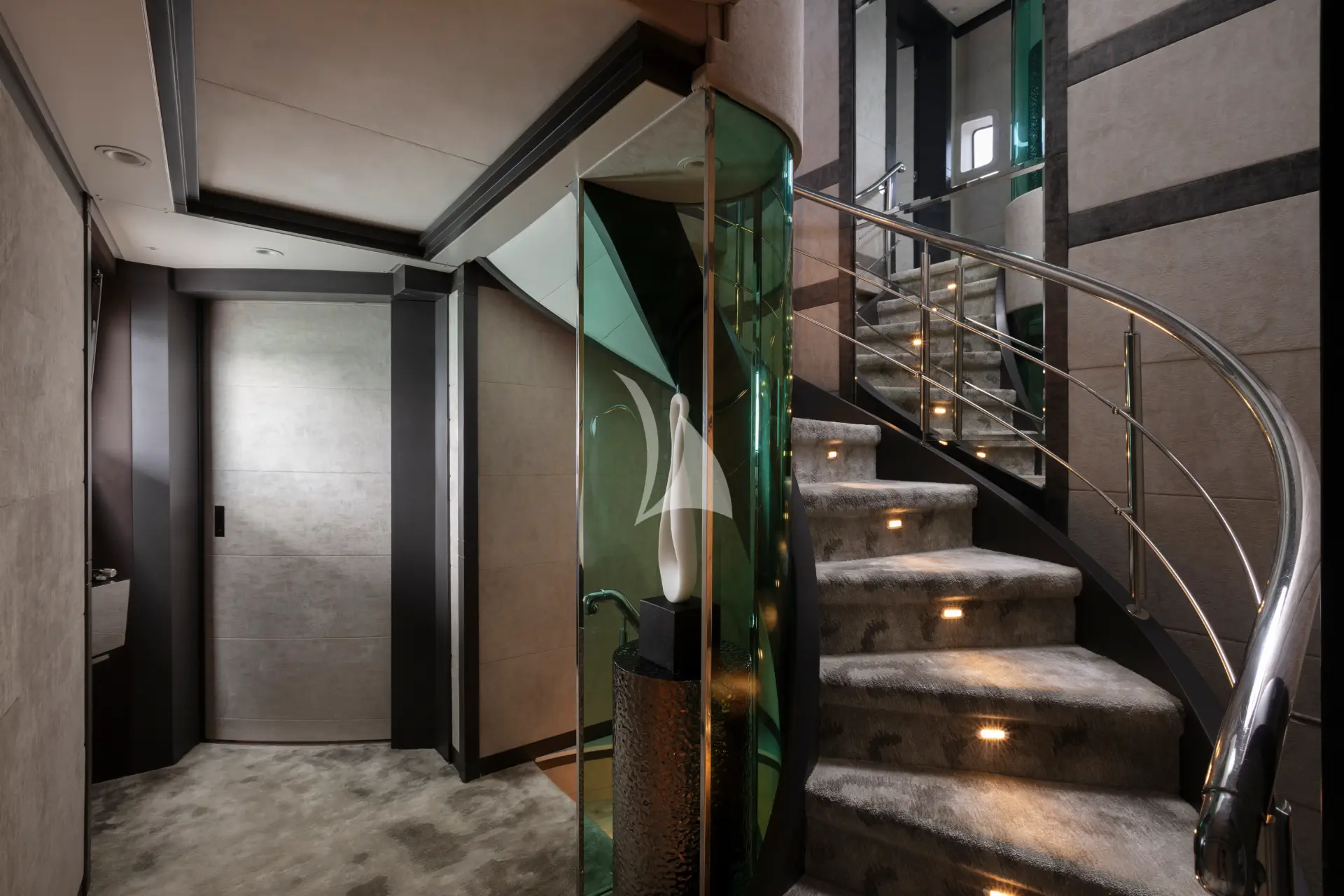 The toy collection includes a SeaDoo Jetski, wakeboards and water skis, kayaks, eFoils, fishing tackle, an on-water trampoline and ‘jungle gym’ pyramid, as well as various towable inflatables and a ‘free fall’ slide. An 11m chase tender is available as an optional extra.