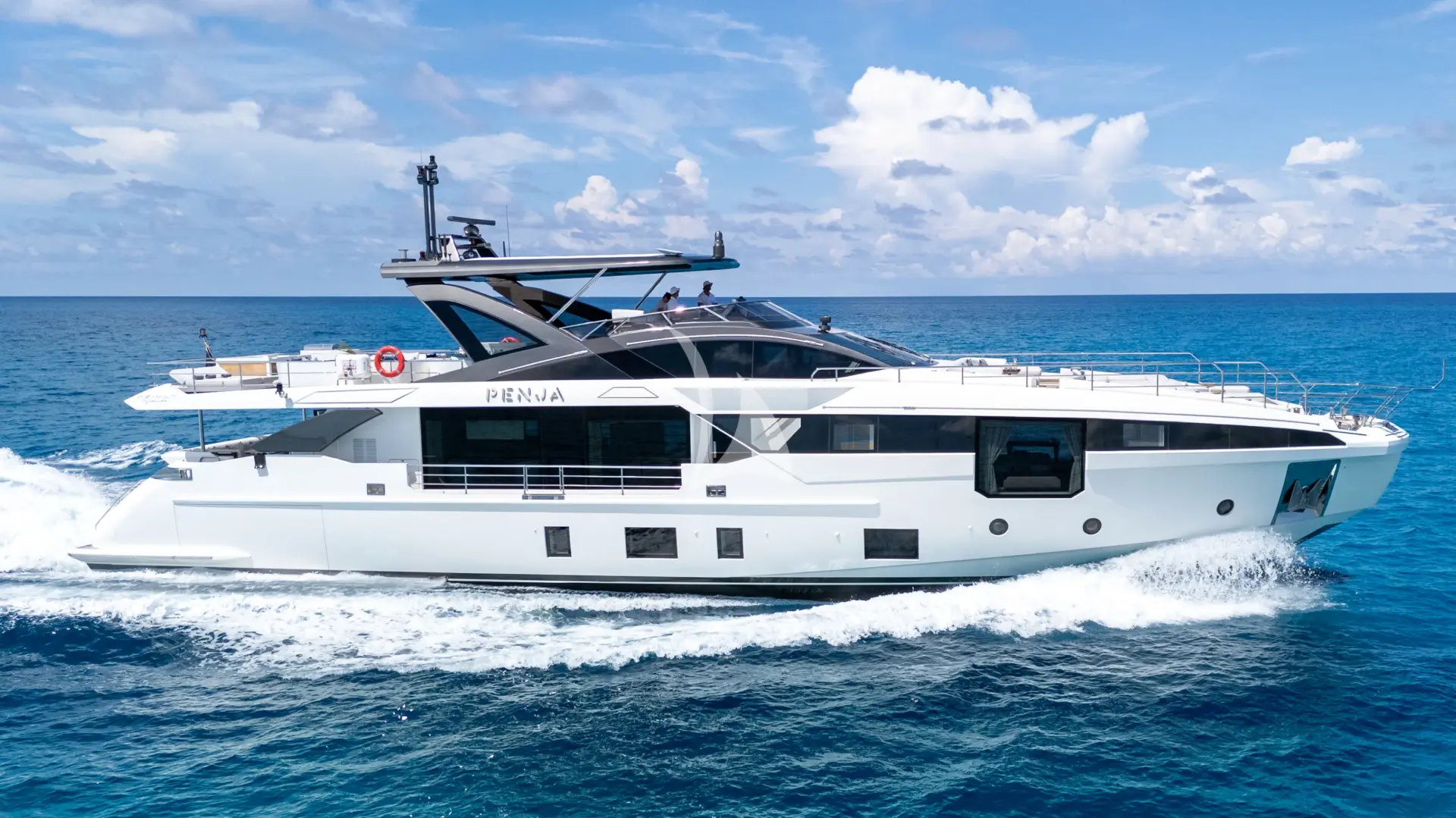 PENJA is an exceptional charter platform, combining the fresh appeal of a 2022 build with the volume, layout, and lifestyle features charter guests consistently look for. Her wide-body design delivers a sense of space rarely found in a 32m, highlighted by a full-beam, on-deck master suite and bright, contemporary interiors with seamless indoor-outdoor flow. Expansive exterior areas - including a generous flybridge, inviting aft deck, and well-designed forward bow seating - create multiple spaces to relax, dine, and socialize throughout the day. With easy water access for swimming and toys, efficient performance ideal for island hopping, and a proven Azimut pedigree, PENJA is perfectly suited to relaxed, high-end charter experiences—particularly in warm-weather destinations like the Bahamas.