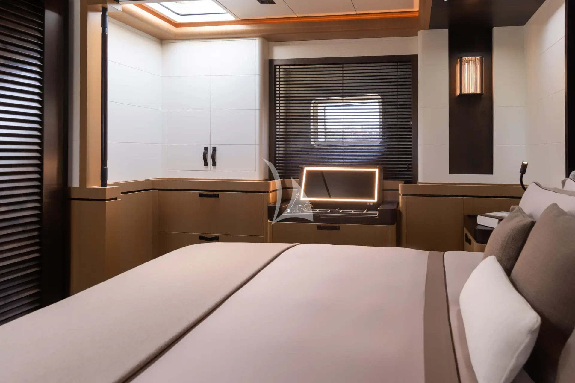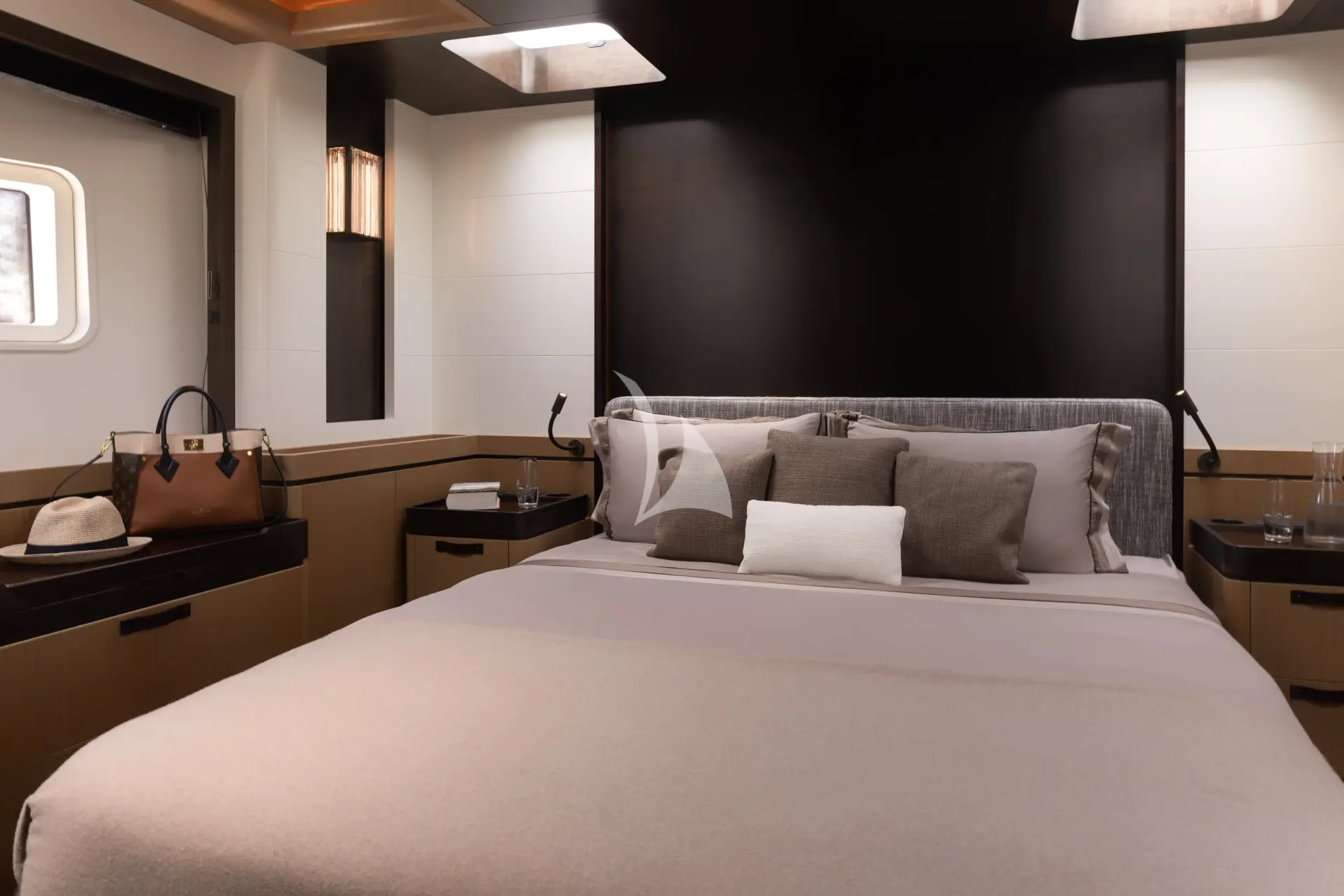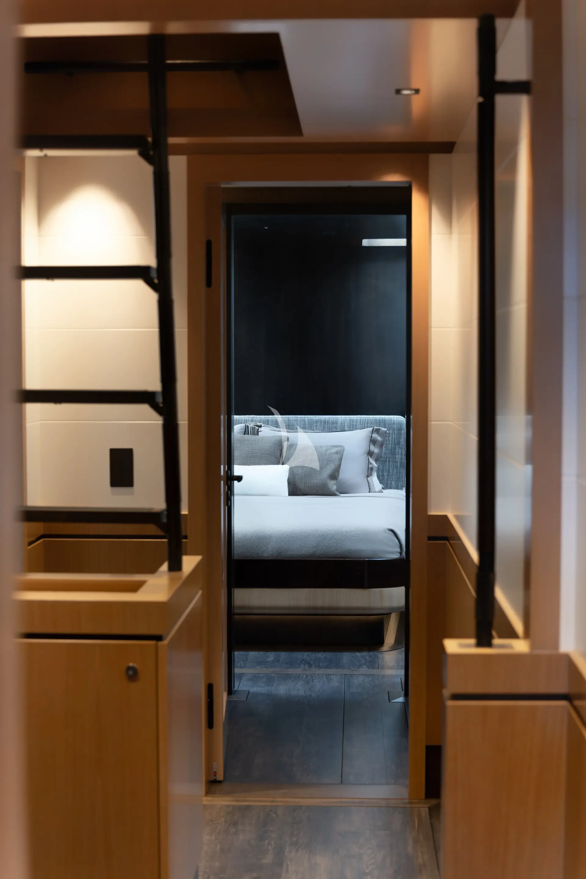 Designed to provide a welcoming yet sophisticated environment, PERSEVERANCE can comfortably accommodate up to 8 guests in four beautifully appointed cabins. The forward owner’s suite offers a serene retreat with natural light and space, while the VIP, twin, and bunk cabins provide flexibility and comfort for families or groups. The contemporary interior by deVosdeVries features light, modern finishes with stained oak and bespoke details that create a bright, stylish ambiance throughout the saloon and guest areas.