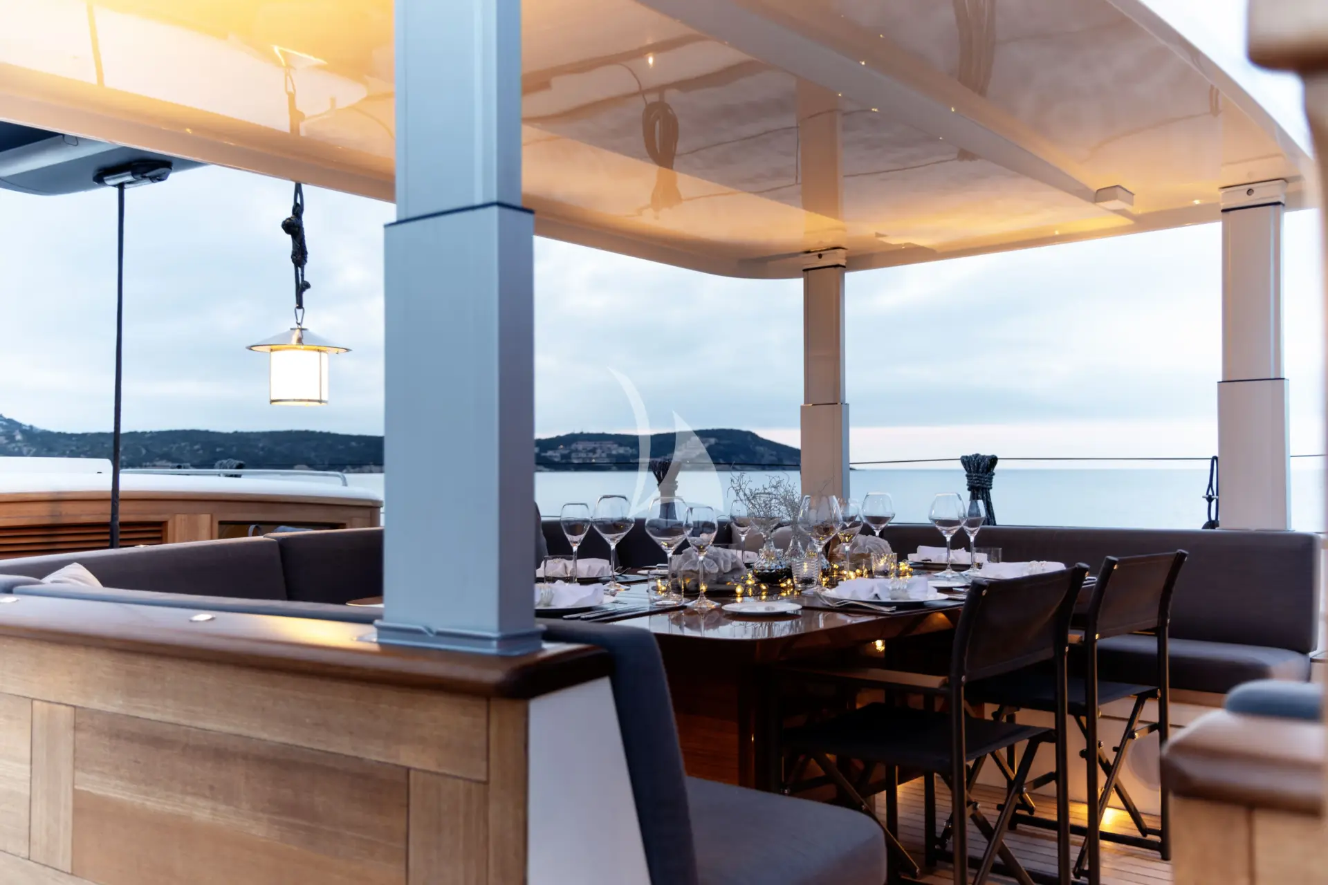 The exterior layout perfectly complements the yacht's performance heritage. Spacious cockpit areas encourage al fresco dining and relaxation, while the sailing cockpit offers ample room for guests to enjoy the thrill of being under sail. Guests will relish the feeling of wind and sea, enhanced by the yacht’s quiet, efficient motion and exceptional balance. When it comes to technology and sustainability, PERSEVERANCE goes above and beyond conventional sailing yachts with features such as “smart” cabins that minimize power use when unoccupied, an energy-efficient electric propulsion system, and integrated power regeneration underway. These innovations provide a greener charter experience that doesn’t compromise performance or comfort.