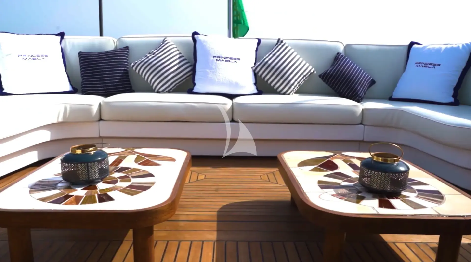 With four beautifully arranged decks, Princess Maela offers generous space and exceptional comfort. The lower deck features four elegant double cabins, each with a private en-suite and shower, providing a serene retreat for guests. The main deck saloon welcomes you with a warm and sophisticated lounge and dining area, seamlessly connected to the galley for impeccable onboard service.