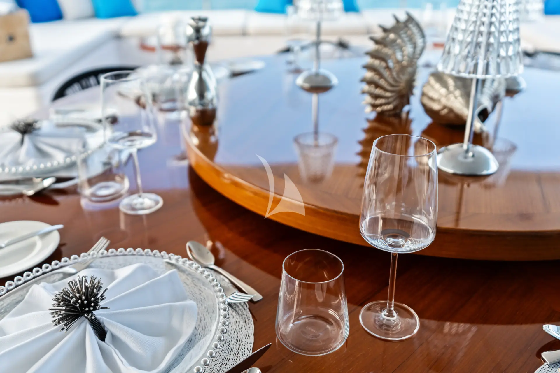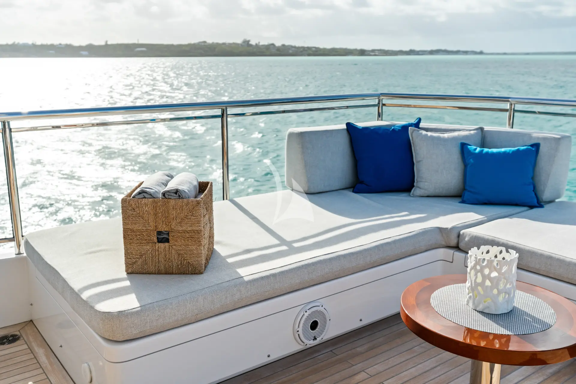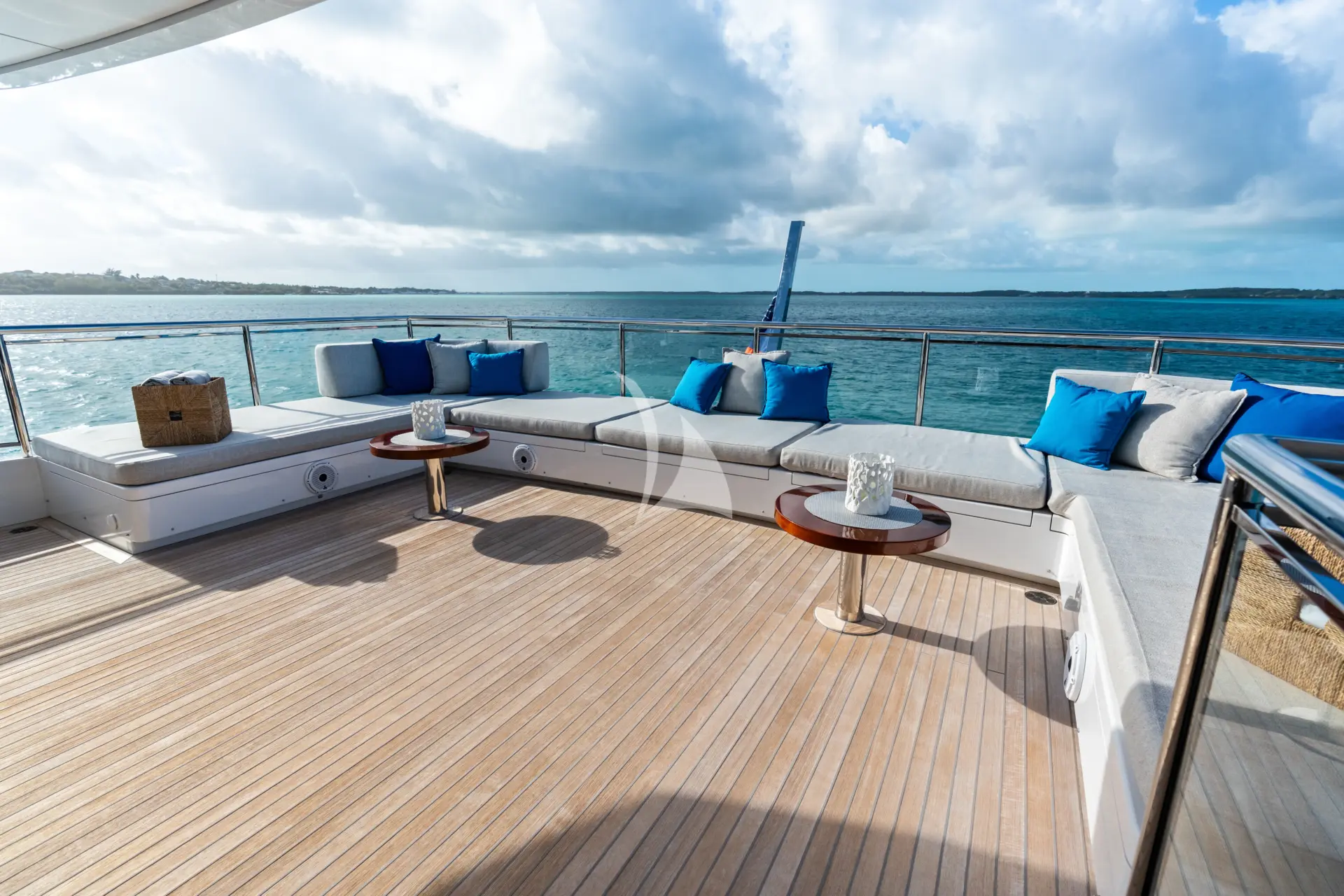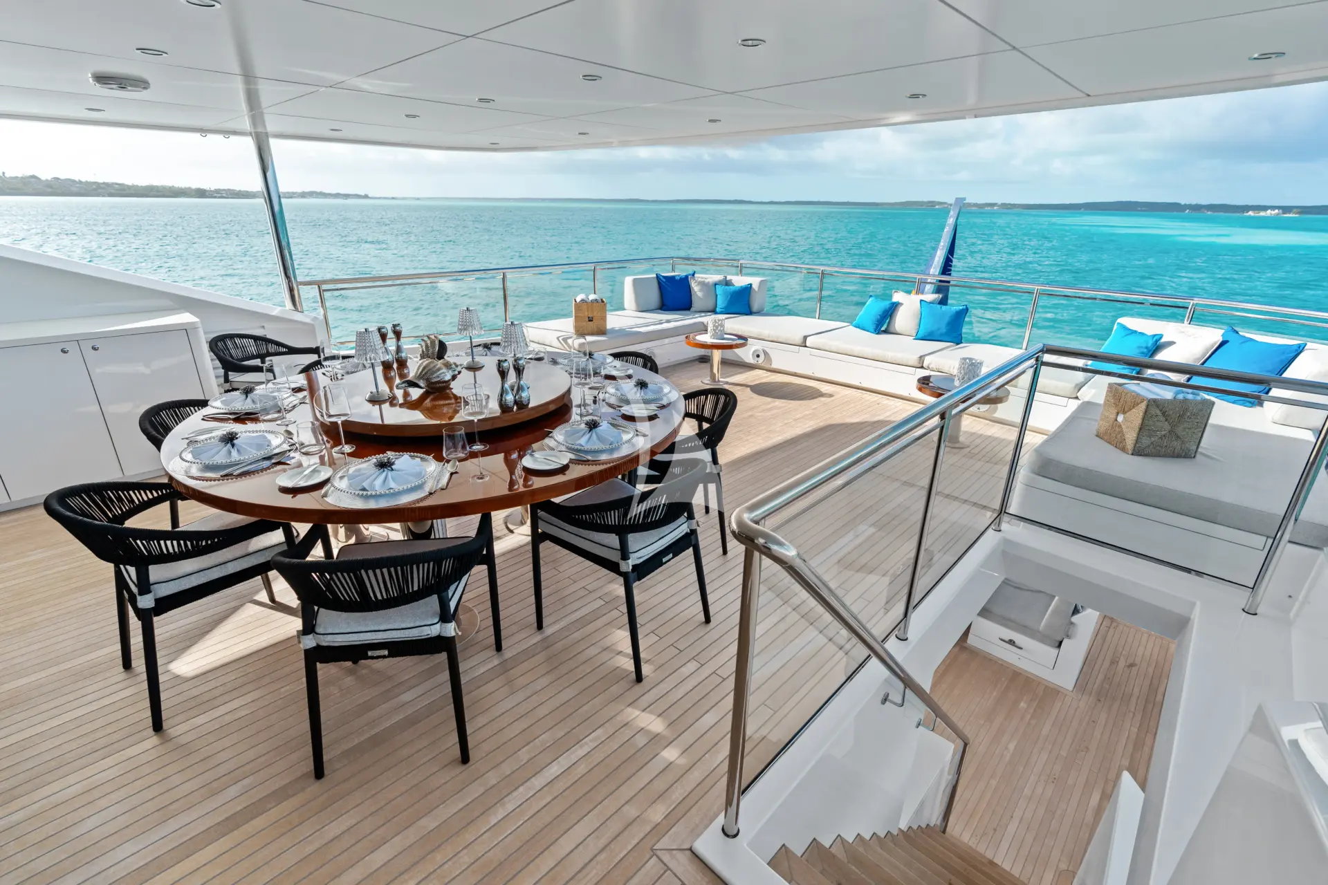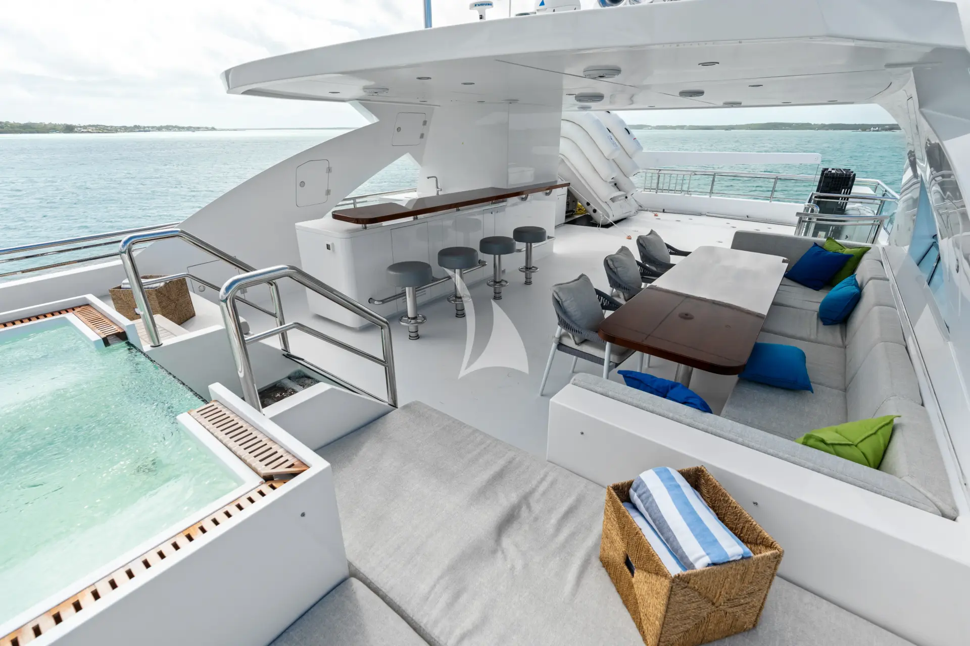 Relax on the sundeck while immersing yourself in the waterfall infinity-style Jacuzzi, or enjoy a meal at the Alfresco dining table on the bridge deck. Roam around to the oversized sunbed on the bow and soak up some rays, all while getting lost in the view! Head down to the beach club, where a hydraulic swim platform opens at anchor for sunbathing and spectating, or melt any pre-trip stress away in the steam room.