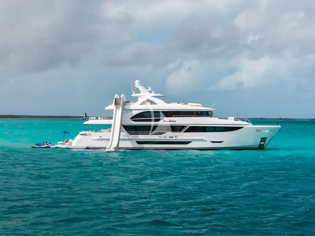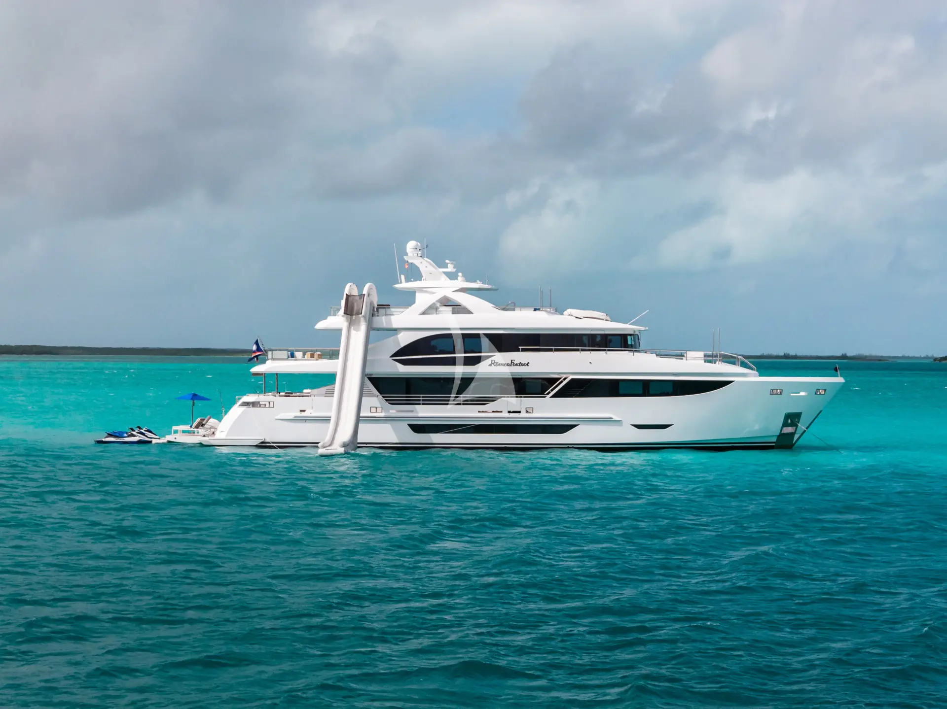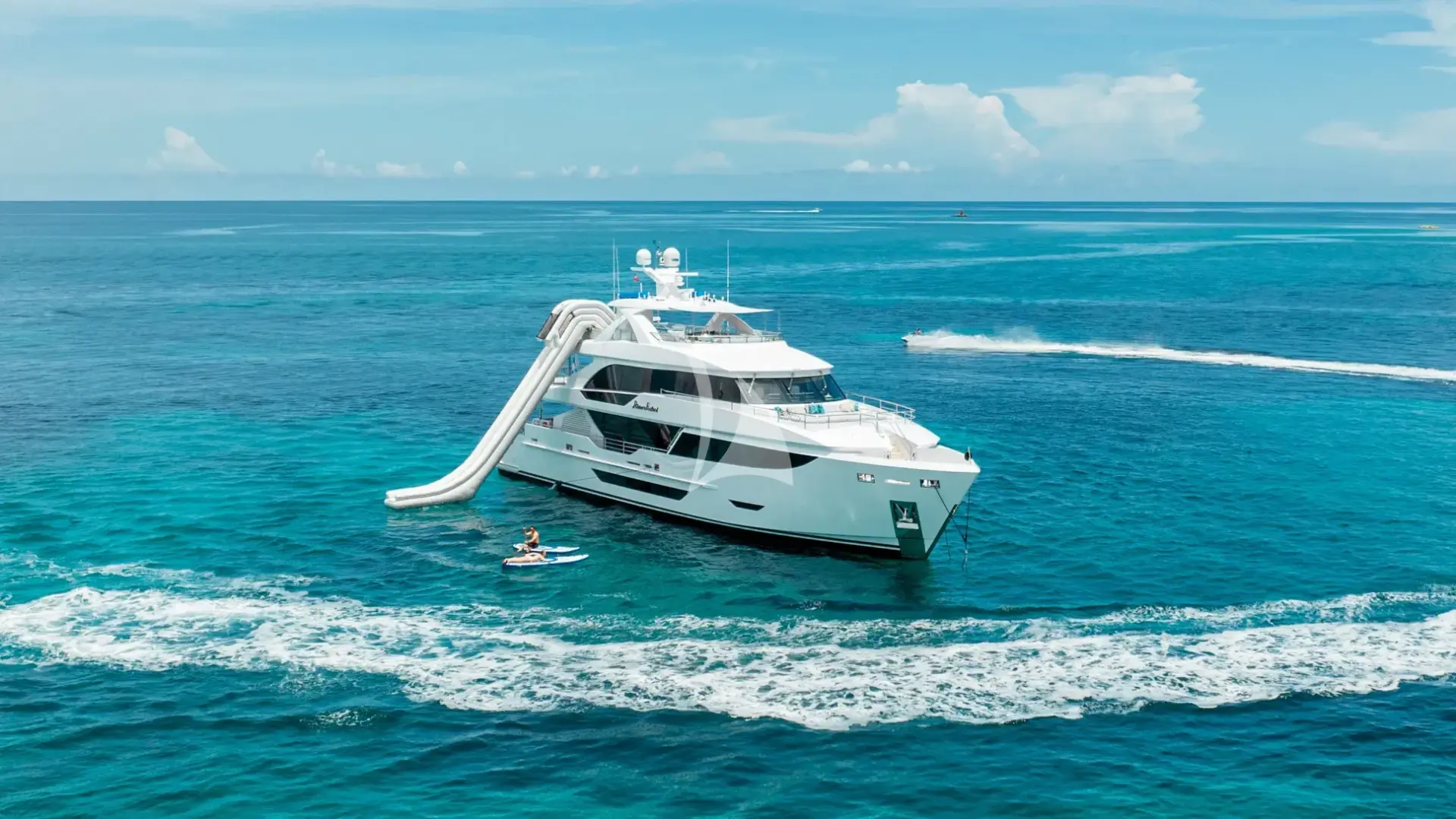 ROMEO FOXTROT comes fully loaded with an epic lineup of toys. Among them are a 32’ Grady White 2021 tender, two SeaBobs, two Jet Skis, snorkeling gear in various sizes, fishing gear (trawling and bottom fishing), inflatable toys, kayaks, paddle boards, a towable tube, a wakeboard, and a full beach set-up to make your charter truly unforgettable. And don’t forget the waterslide is thrilling fun for all ages.