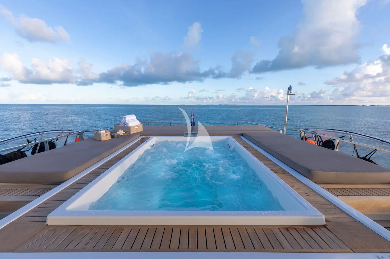 Of course, you may prefer to spend your leisure time unwinding, either up on the flybridge, or down at the beach club for a more chilled on-the-water vibe.
