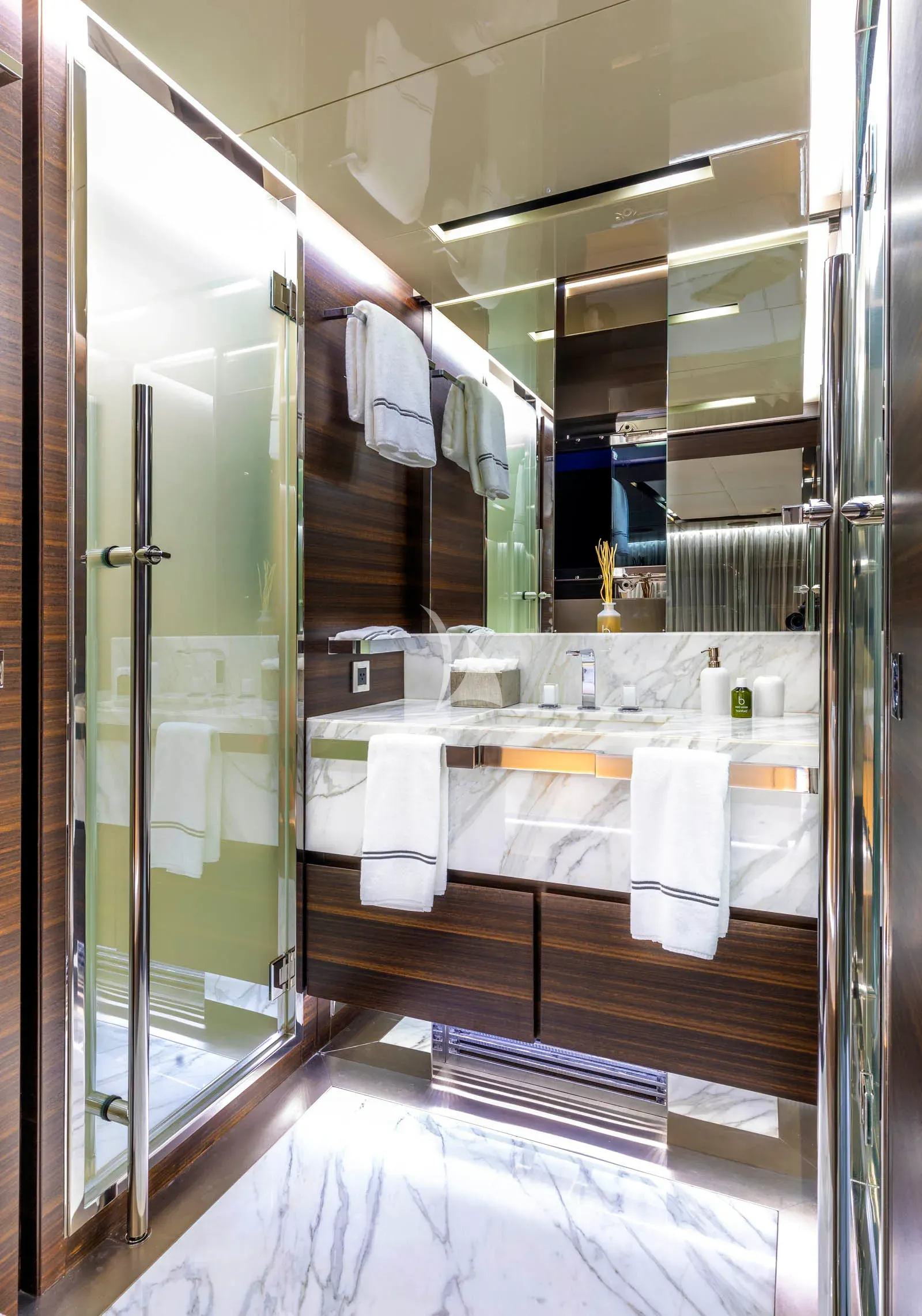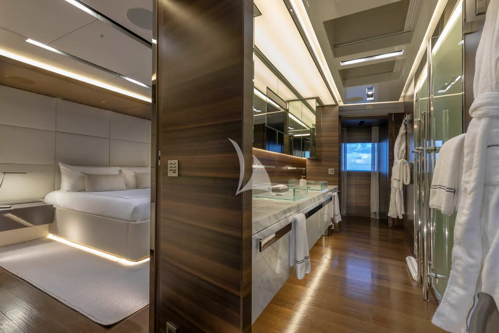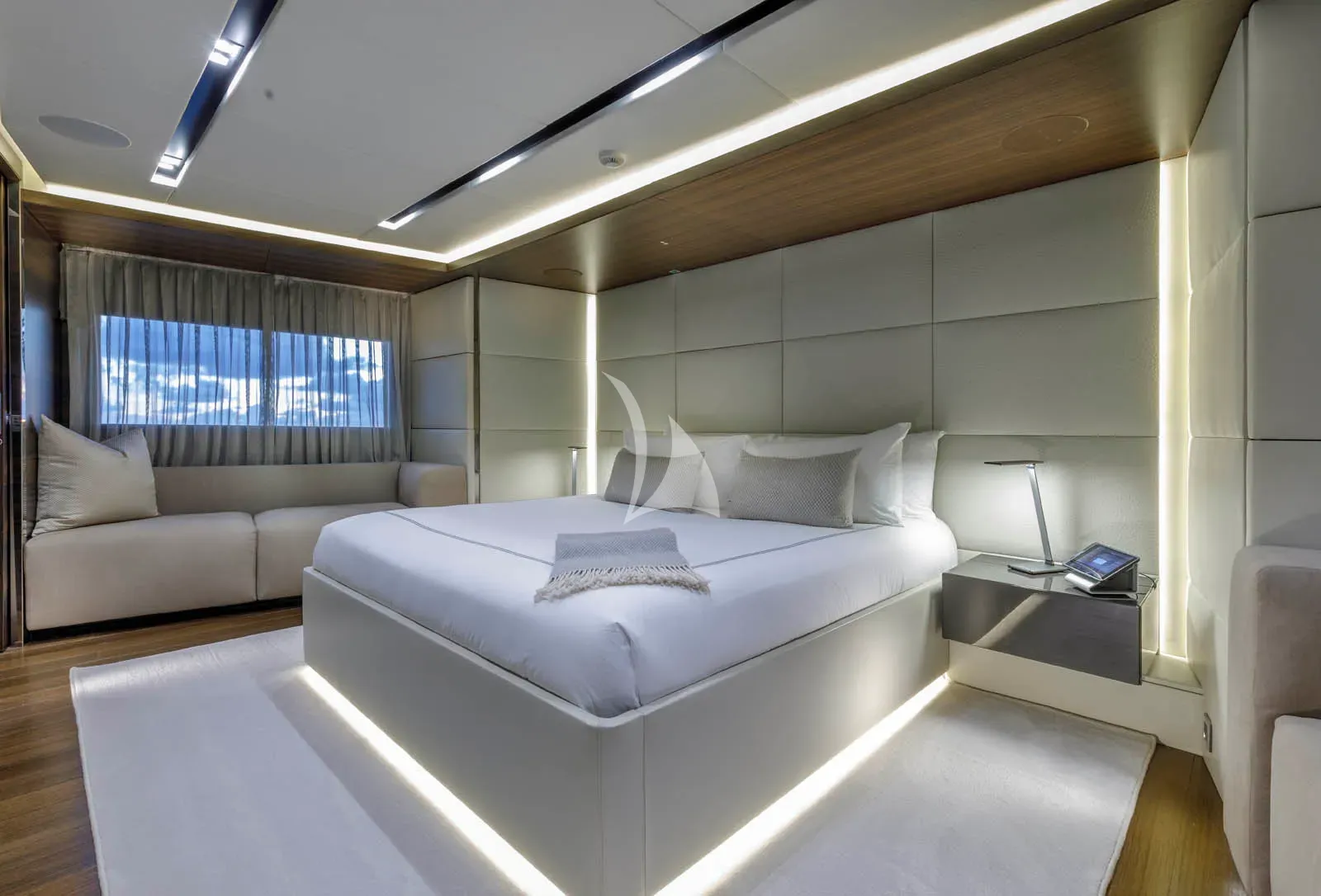 A SAFE HAVEN yacht charter can accommodate 11 guests across an impressive five cabins that belie her size, including two full-beam master cabins, a full-beam VIP, plus a further double cabin and a twin, making her an appealing charter yacht.