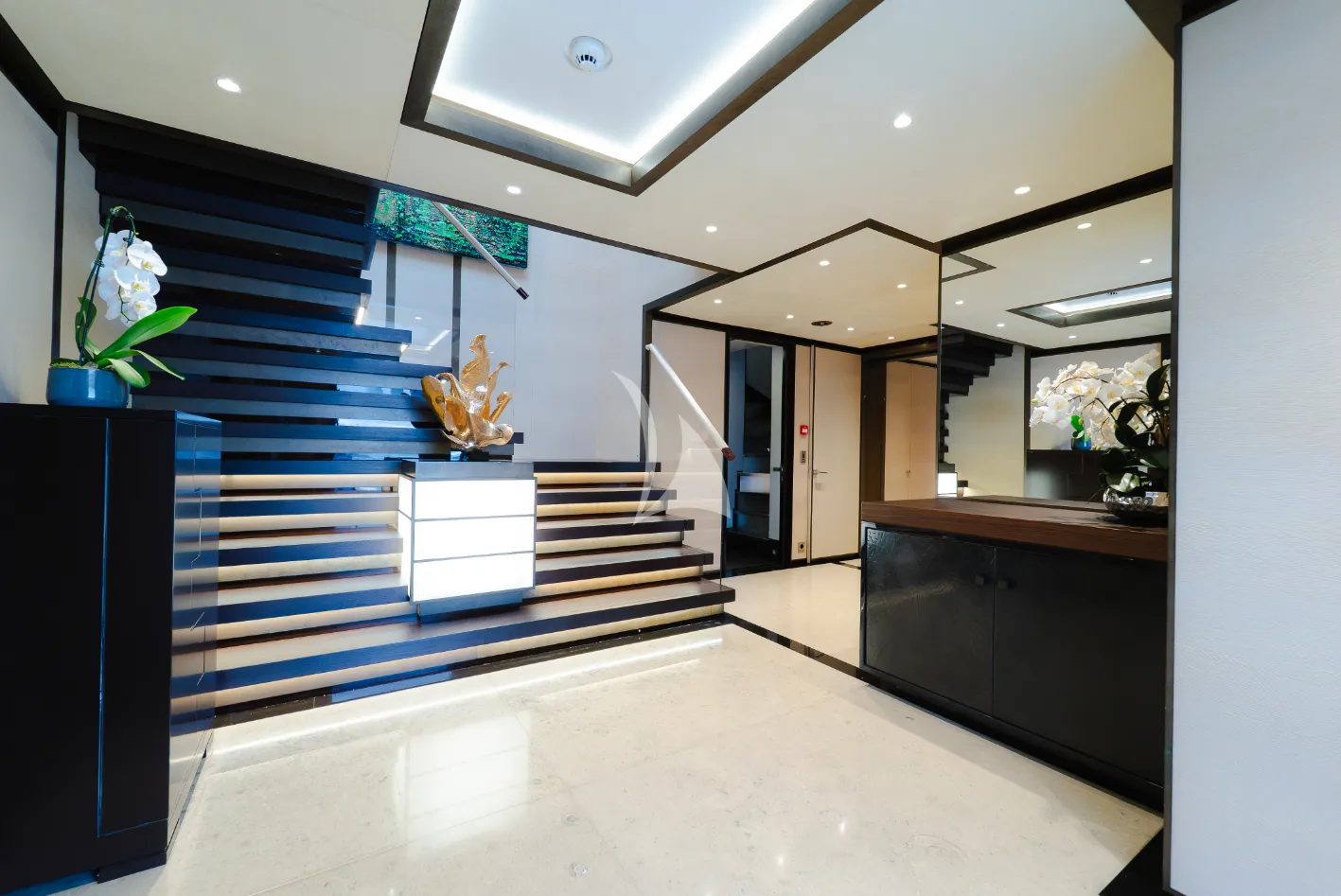 The beautifully appointed SAMURAI was built by luxury yacht builder Alia Yachts and launched in 2016. At an overall length of 198' (60.30m) she is well equipped for a yacht of her size and accommodates sleeping for 12 guests. The SAMURAI charter yacht, along with her guests, is maintained and serviced by 15 professional crew, who provide the absolute best there is to offer in a world-class yacht charter. Her exquisite styling and details are the work of Van Oossanen Naval Architects, resulting in an elegant and stately yacht designed with absolute comfort in mind. She has a beam of 37' 5" (11.40m), and a draft of 11' 0" (3.35m), and is powered by 2x MTU 16V 4000 M73L diesel engines engines, with a cruising speed of 15 knots.