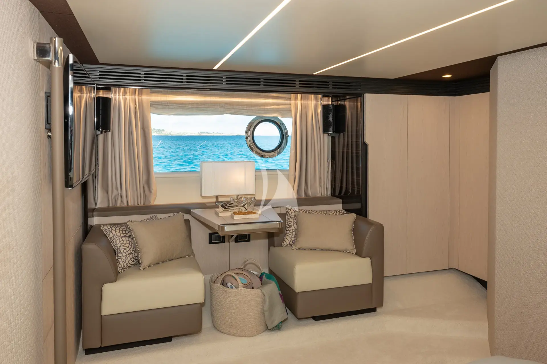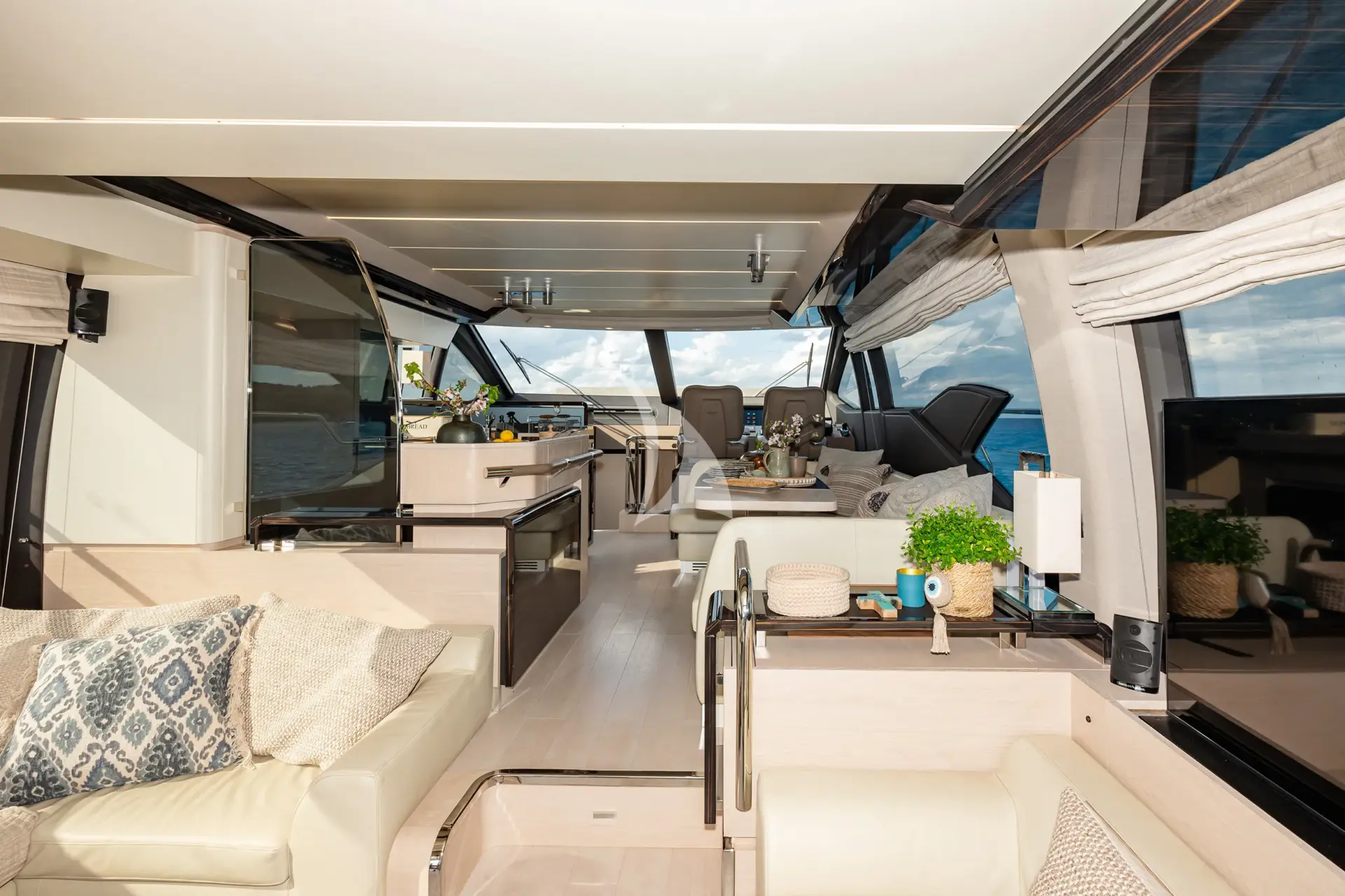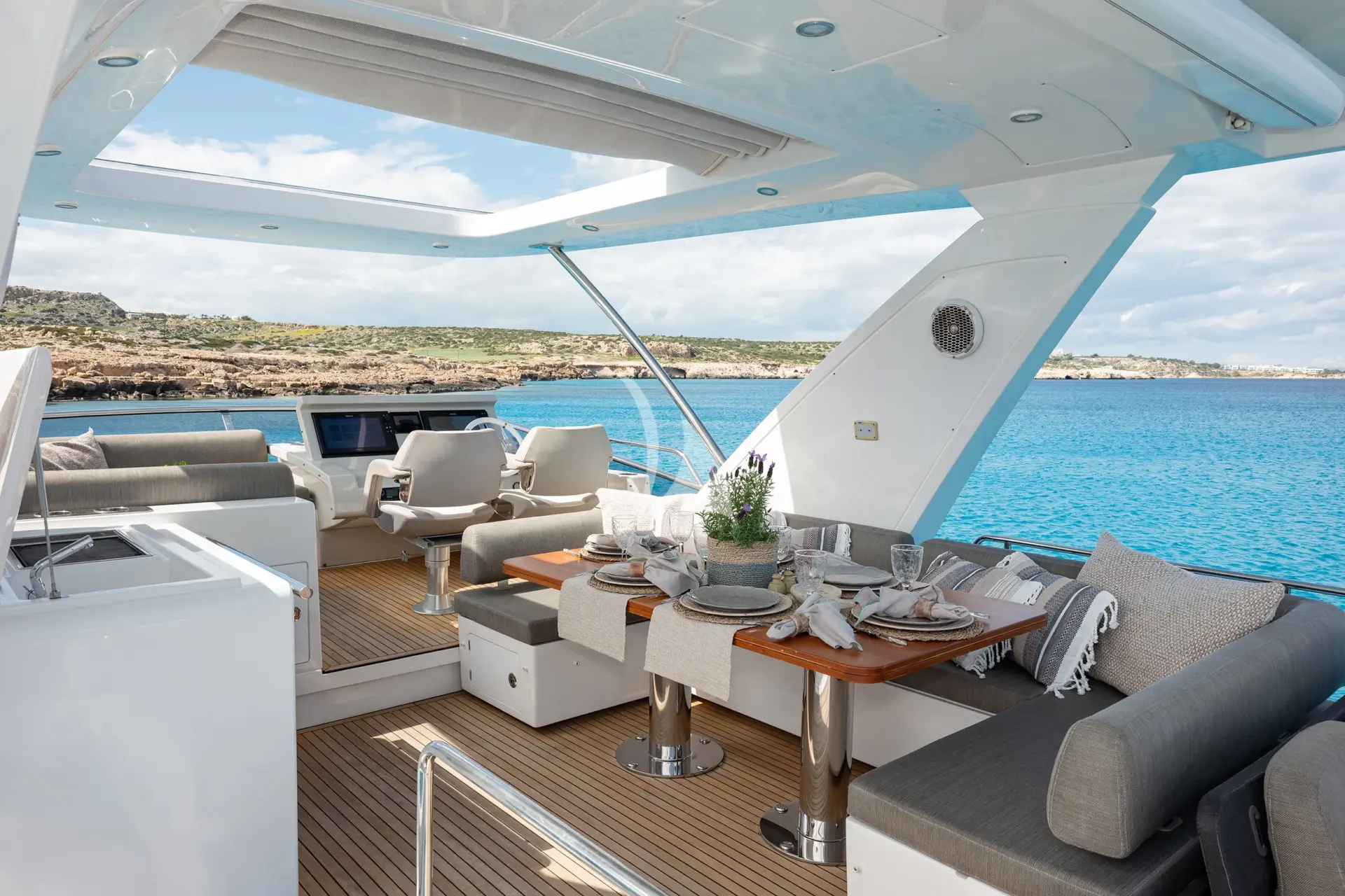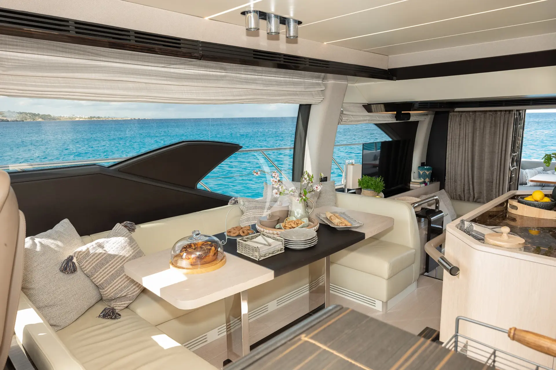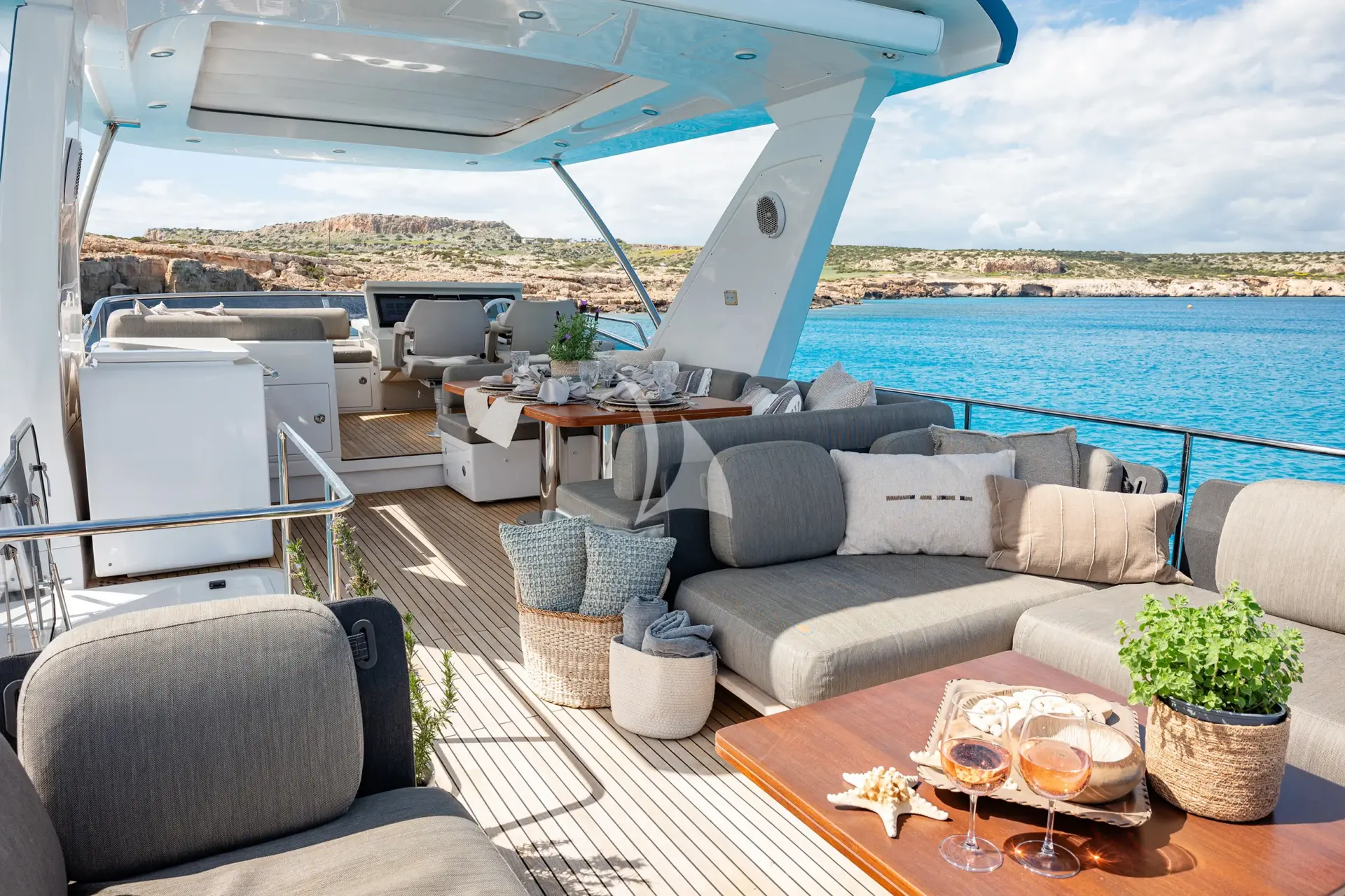 SEA YA is a 66ft (20m) motor yacht built by Azimut in 2017 and refitted in 2024. She accommodates up to 6 guests in 3 cabins comprising 2 double and 1 twin, with a professional crew of 3 ensuring an exceptional charter experience. Available for charter in All East Med. Notable features include stabilzers underway and Zero speed, submersible swimming platform, electric opening of aft shade top in fly bridge, and shallow draft and fast speeds for reef exploration.