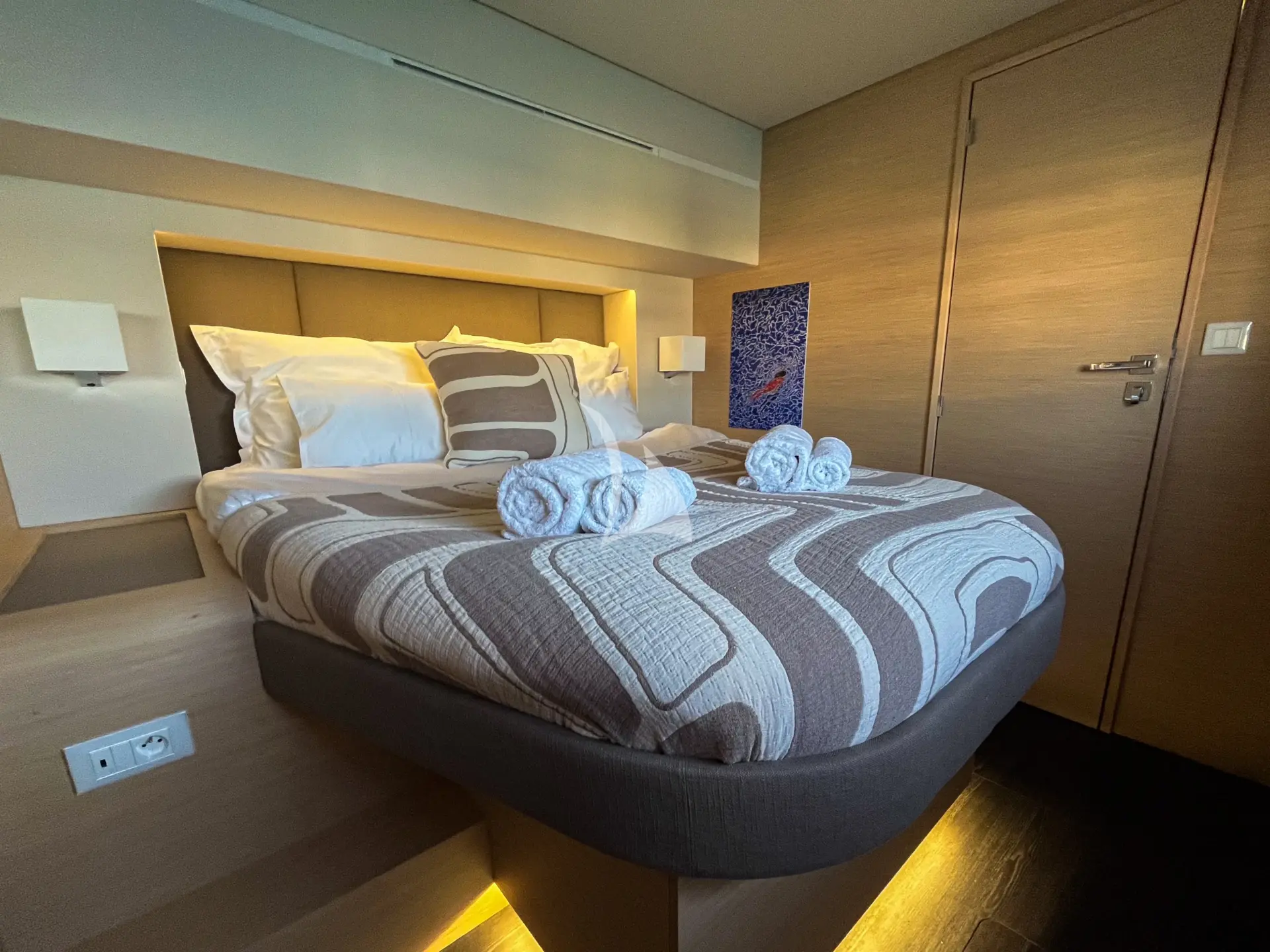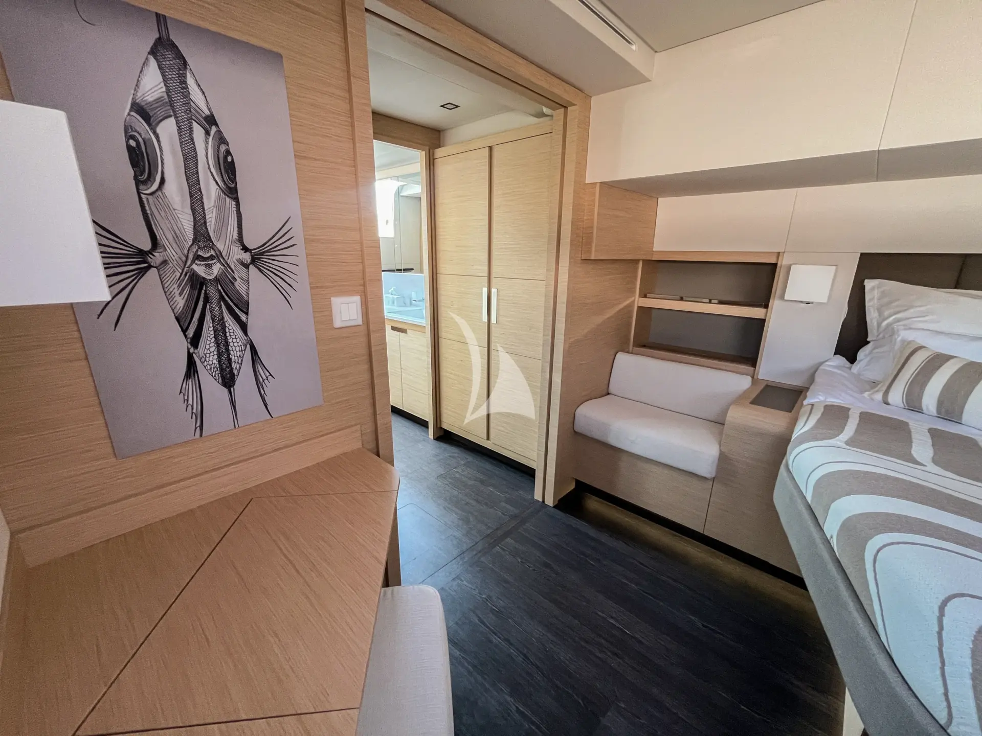 Come aboard luxury catamaran, SOLOMAR. This yacht and the layout are designed for maximum relaxation and enjoyment. Inside, you’ll discover a modern and spacious interior. It exudes style and luxury at every turn. The yacht has a total of four guest cabins, including a master cabin, and three queen-sized cabins, each equipped with a private bathroom. The salon benefits from large panoramic windows that create a bright airy space to be enjoyed day and night. The aft deck leads off from the salon; the perfect spot to enjoy delicious gourmet meals. Above is the spacious flybridge with large sun beds and a forward cockpit with spacious seating. Whether you’re looking for the thrill of sailing or want to relax in comfortable loungers and sunbathing areas, SOLOMAR has it all.