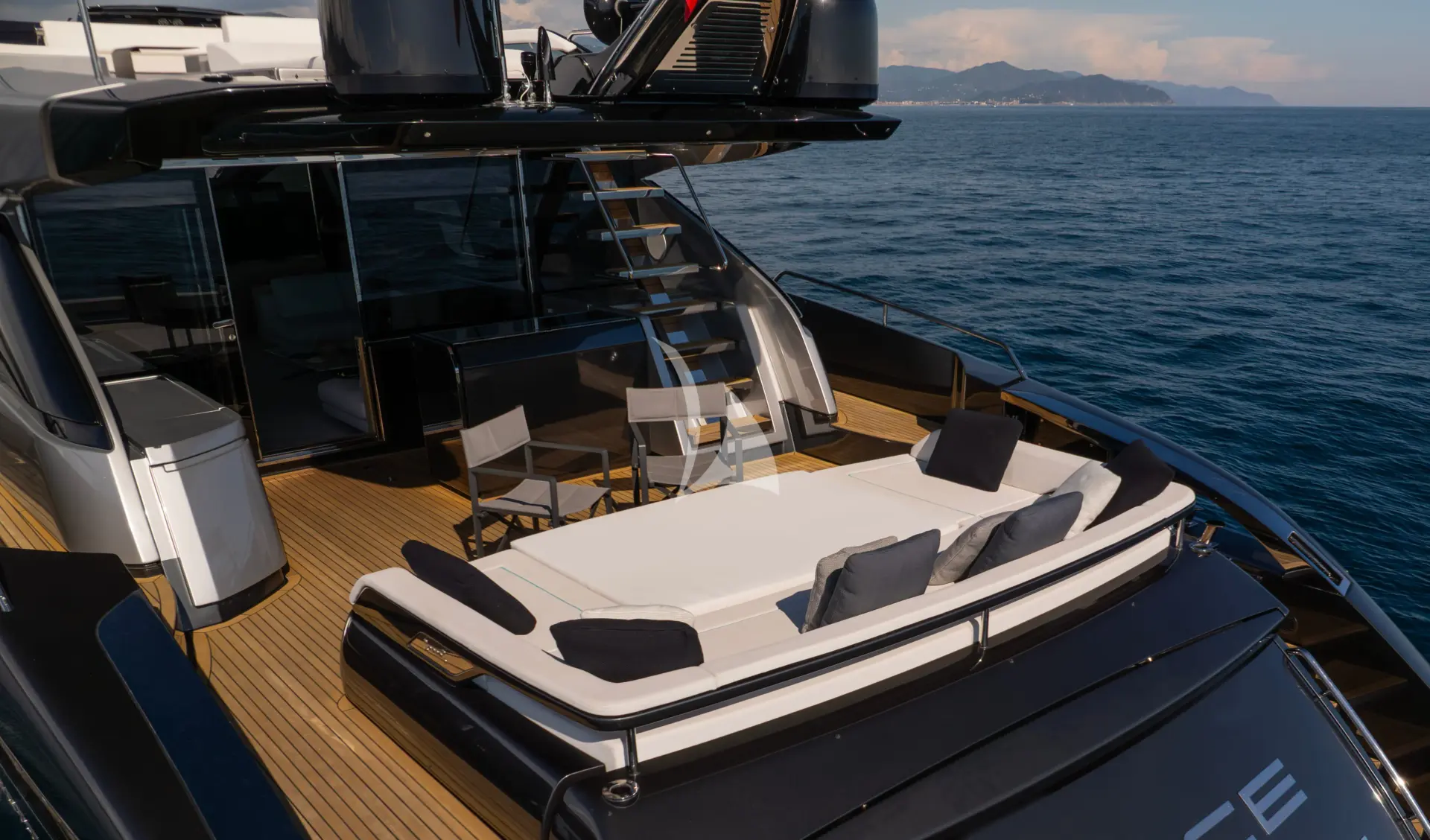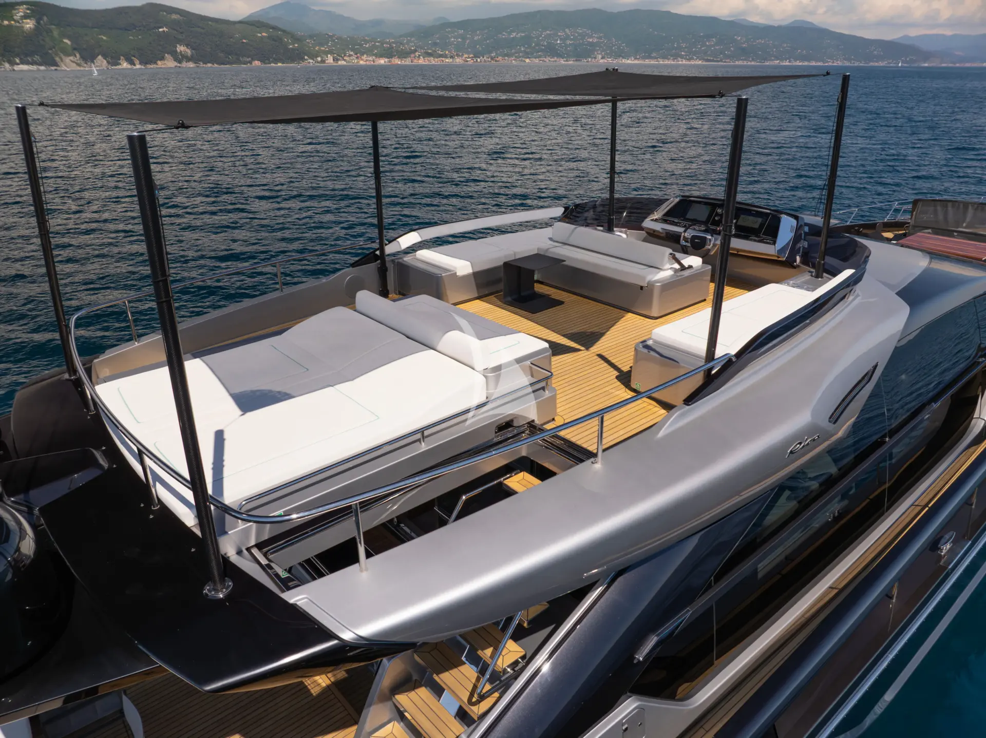 SPACE COWBOY represents the latest sportfly model: powerful and cutting edge, with a captivating allure. The appeal of her design lies in the harmony between tradition and modernity, blending contemporary materials such as carbon fibre with classic elements including mahogany accents and stainless steel finishes. Her London Grey hull, paired with a Regal Silver deck, a proprietary Riva shade, gives SPACE COWBOY a refined and eye catching presence.