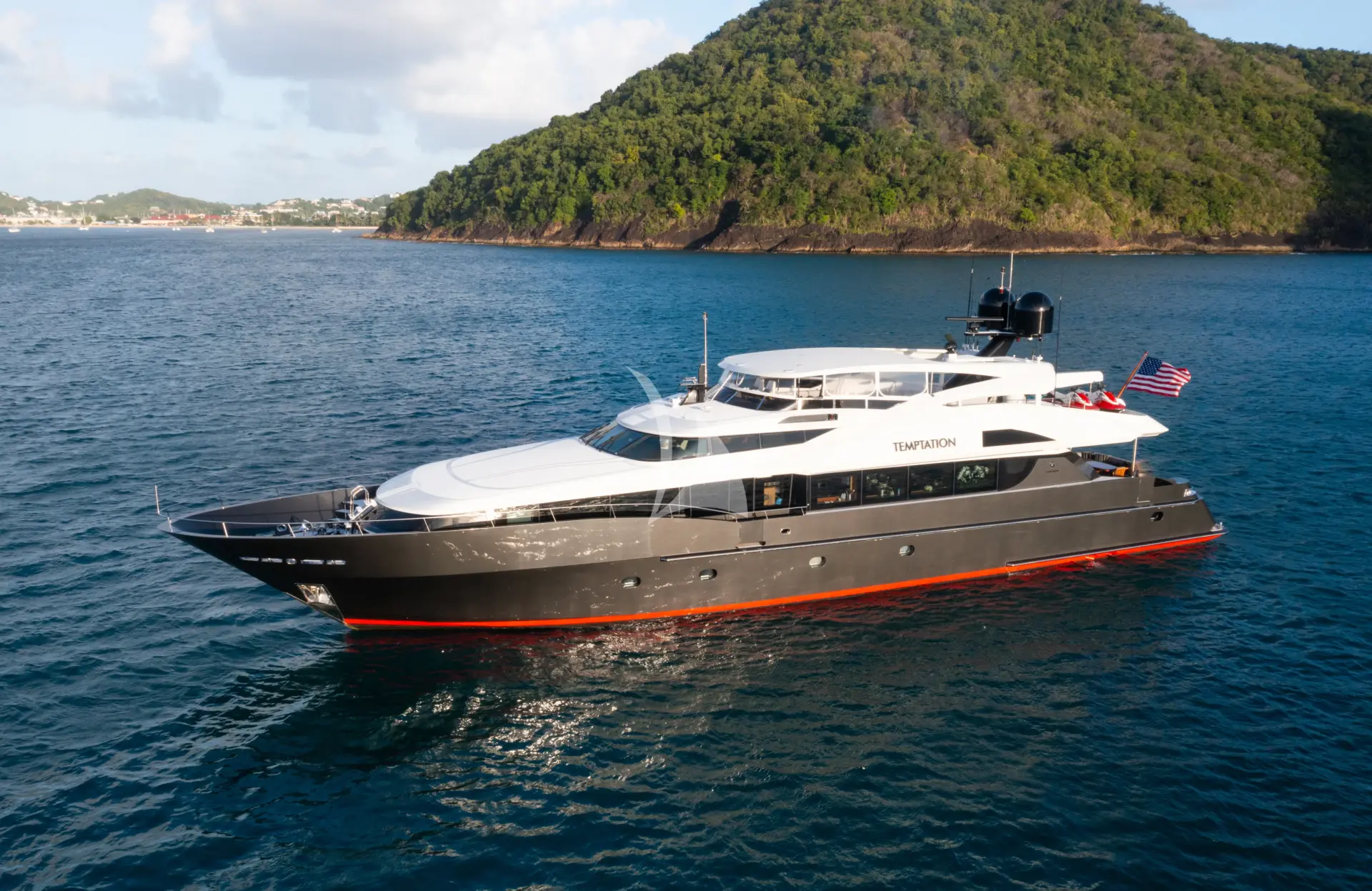 TEMPTATION is a 123ft (37m) motor yacht built by Palmer Johnson in 2007 and refitted in 2023, with design by Nuvolari Lenard. She accommodates up to 8 guests in 4 cabins comprising 4 double, with a professional crew of 5 ensuring an exceptional charter experience. Available for charter in North America, The Caribbean and the Bahamas.