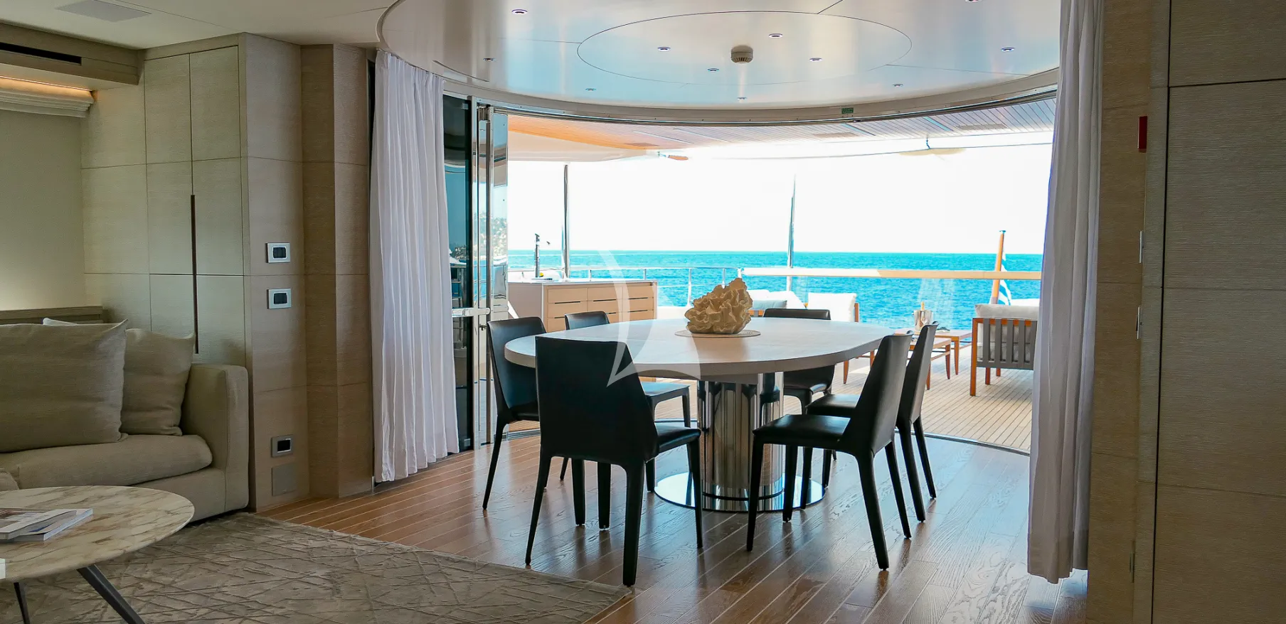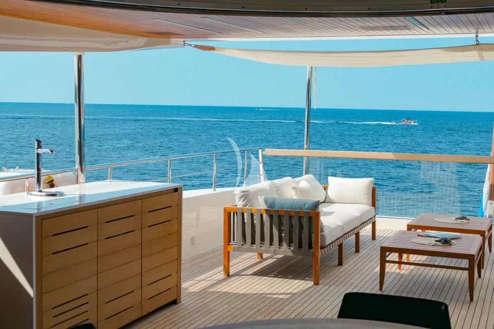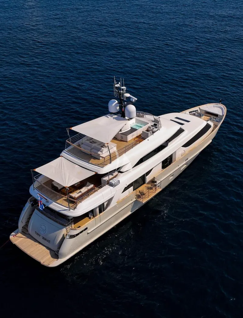 The 34.1m (111’11”) motor yacht TINY WAVE, built by Sanlorenzo and styled by Francesco Paszkowski, offers the ultimate Mediterranean charter experience for up to 10 guests in 5 luxurious cabins. Delivered in 2019, she blends contemporary Italian design with comfort and performance, featuring a flybridge with jacuzzi, spacious indoor social areas, and expansive exterior decks perfect for sunbathing, alfresco dining, and evening gatherings under the stars. With a professional crew of up to six, every detail is designed for seamless luxury. TINY WAVE also offers a wide selection of water toys, including a Jet Ski, an e-foil, wakeboards, water skis, paddleboards, snorkelling equipment, and a Williams Jet Tender for endless fun on the water. Cruising at 11 knots with a maximum of 18 knots and an exceptional range, she is the perfect choice for an unforgettable yachting escape.