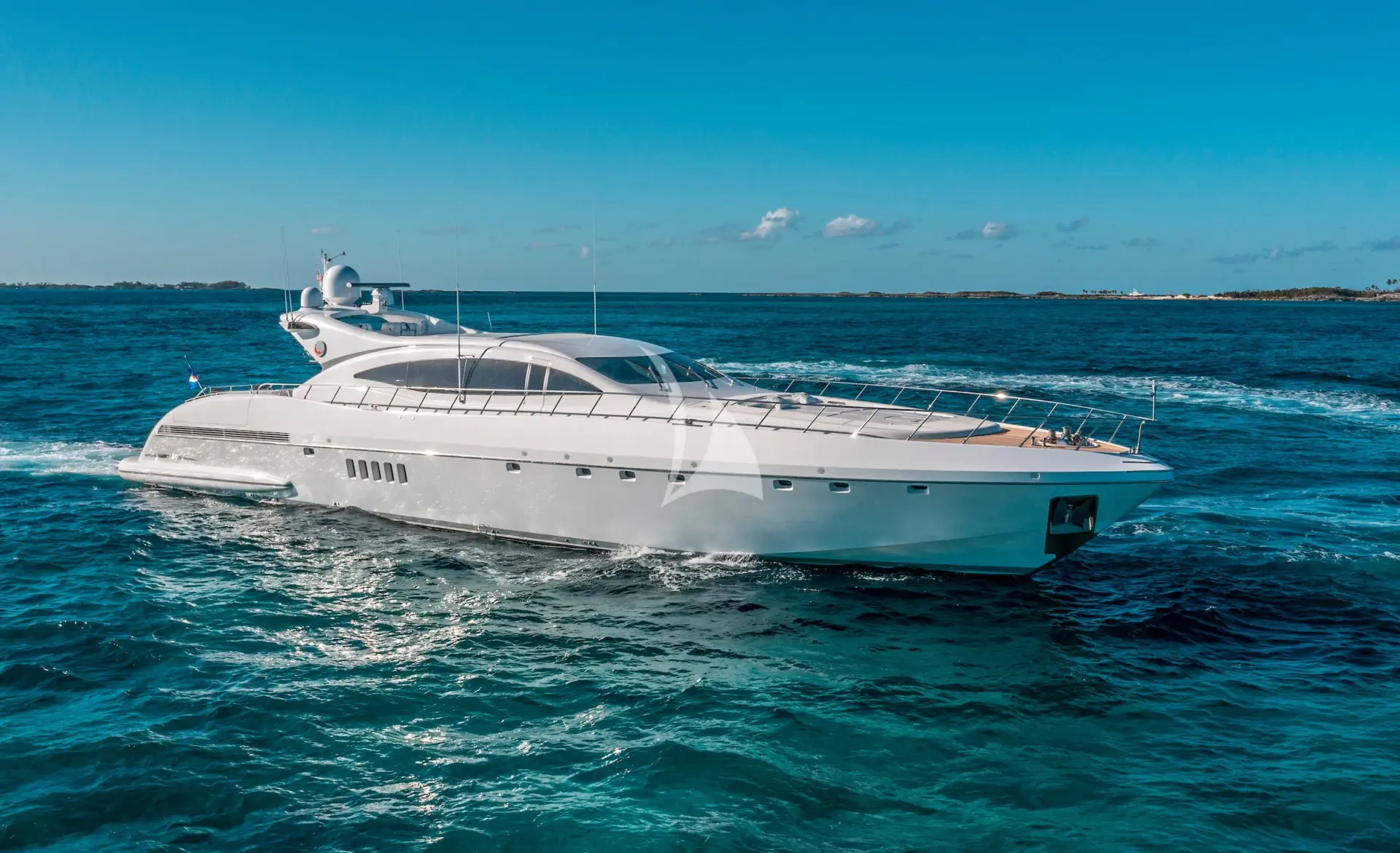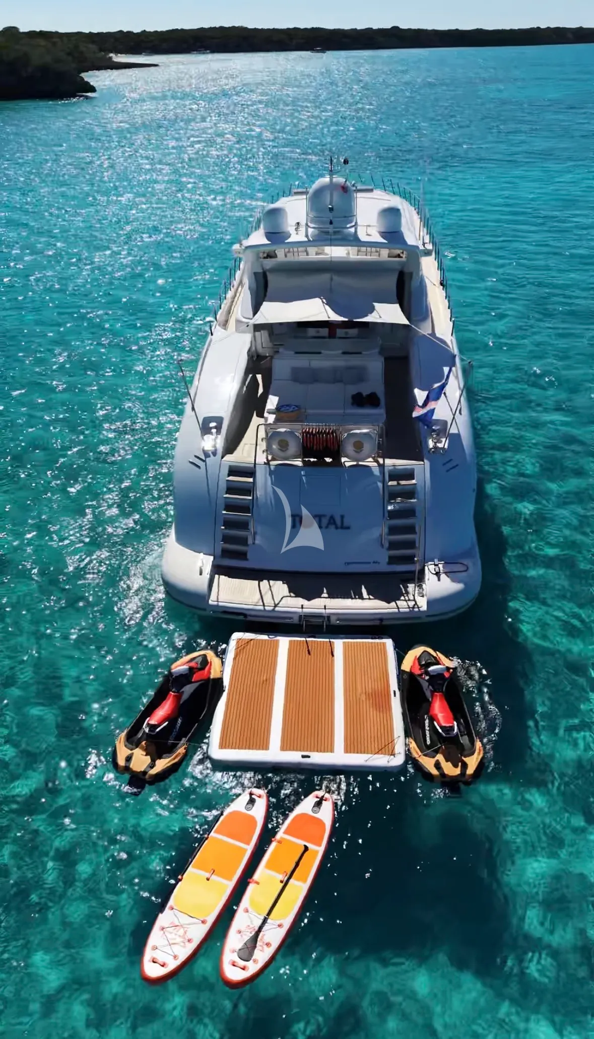 TOTAL is a 108ft (33m) motor yacht built by Mangusta (overmarine) in 2006 and refitted in 2020, with design by Overmarine. She accommodates up to 9 guests in 4 cabins comprising 3 double and 1 twin, with a professional crew of 4 ensuring an exceptional charter experience. Available for charter in The Caribbean and the Bahamas.
