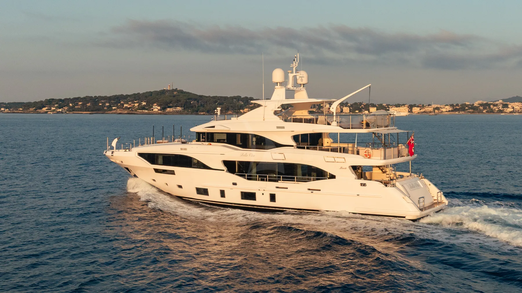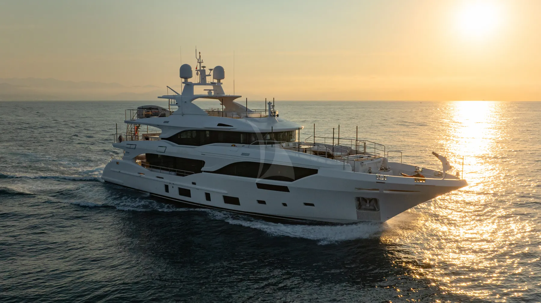 TRAMONTO is a 116ft (35m) motor yacht built by Benetti in 2020, with design by Pierluigi Ausonio Naval Architecture . She accommodates up to 10 guests in 5 cabins comprising 3 double and 2 twin, with a professional crew of 7 ensuring an exceptional charter experience. Available for charter in France, Italy. Notable features include uf0a7tAbundance of exterior spaces rival those found on larger yachts., uf0a7tFabulous Foredeck with jacuzzi, social central sunpad, shade and sofa seating., uf0a7t10 guests in 5 staterooms including a full-beam, on-deck master suite with panoramic views., and uf0a7tOver-sized windows flooding the interior with natural light..