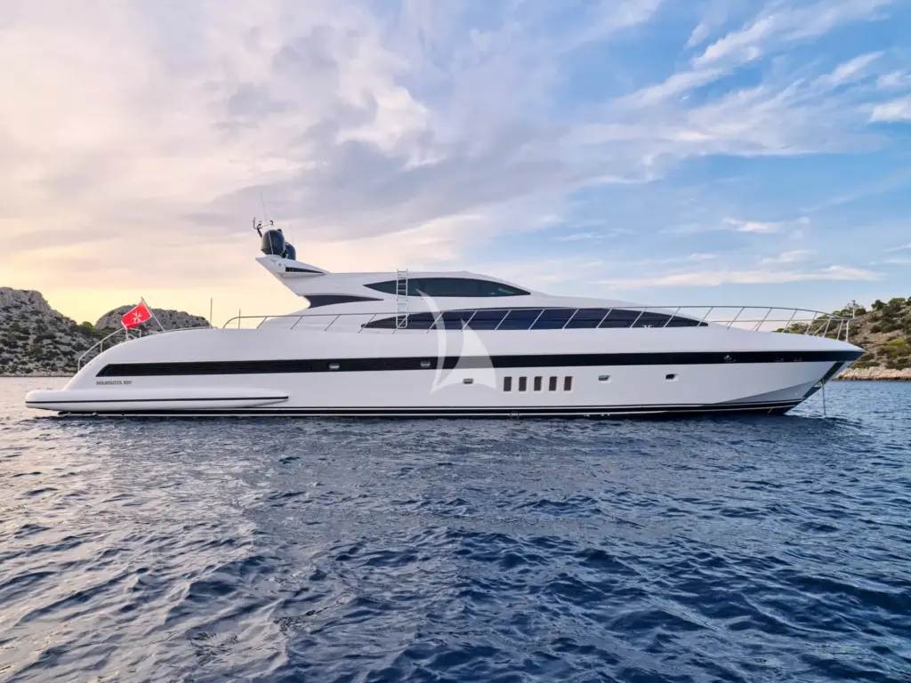 WET PANTHER is a 103ft (31m) motor yacht built by Mangusta (overmarine) in 2006 and refitted in 2026. She accommodates up to 10 guests in 4 cabins comprising 2 double and 2 twin, with a professional crew of 5 ensuring an exceptional charter experience. Available for charter in All East Med.
