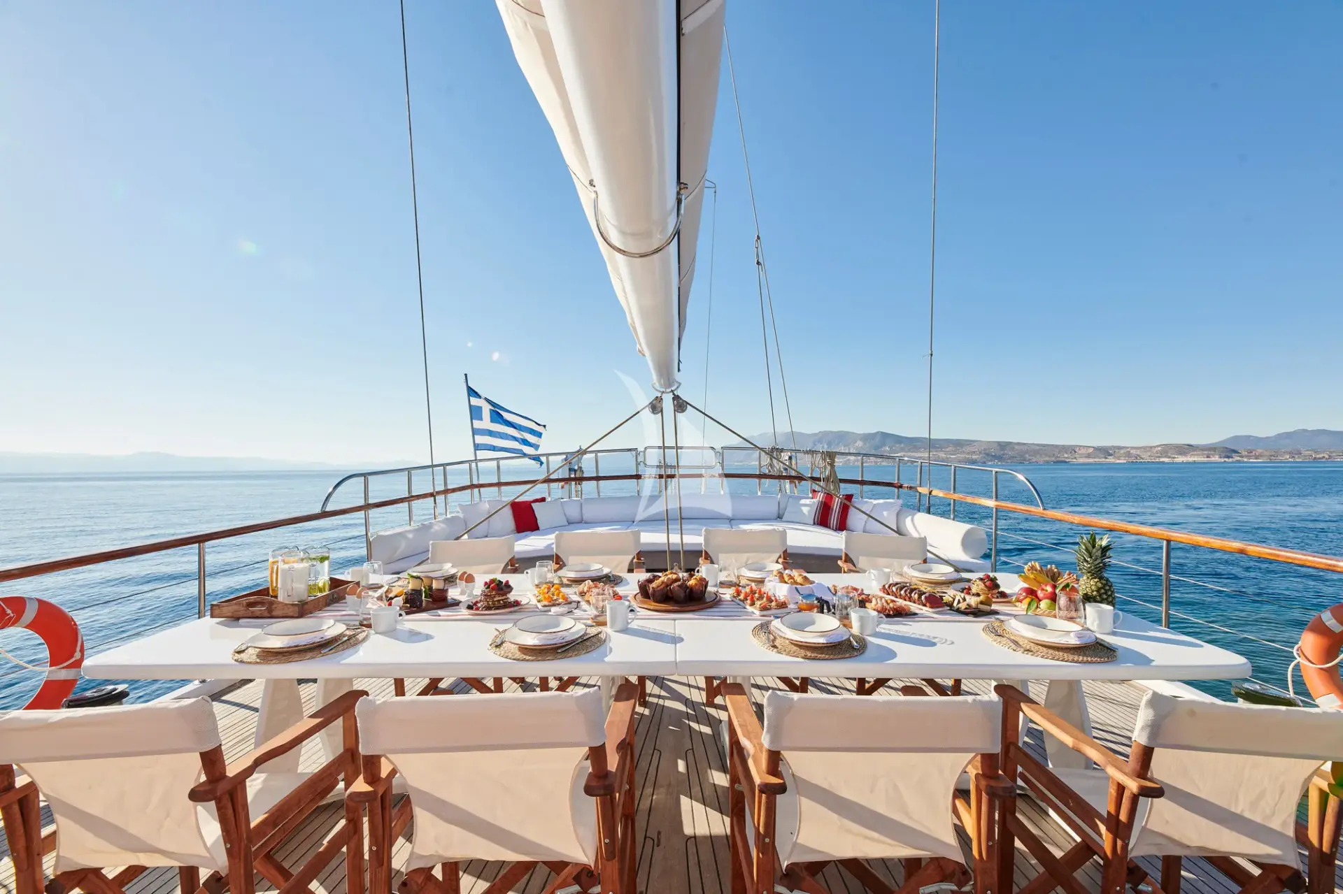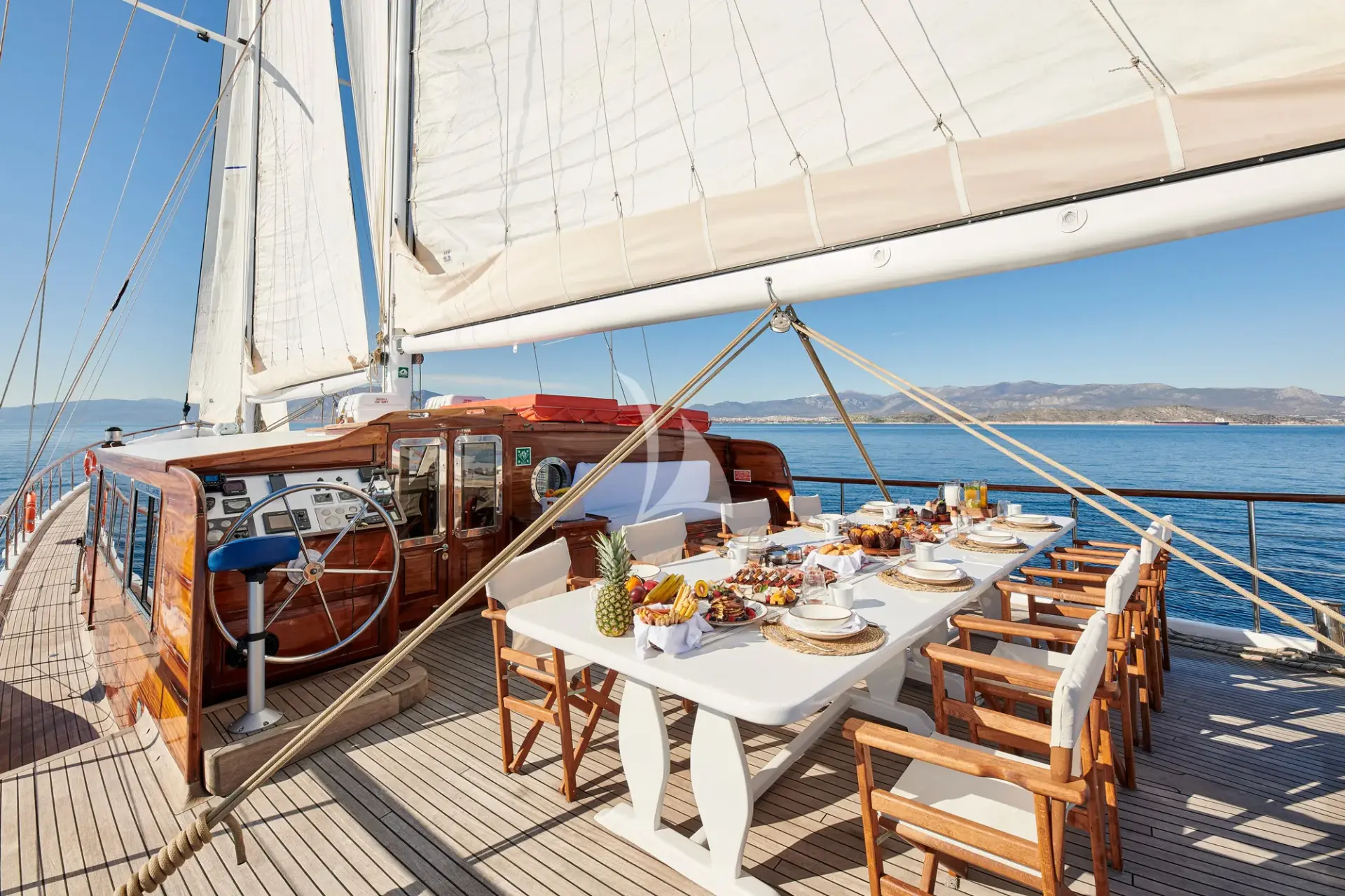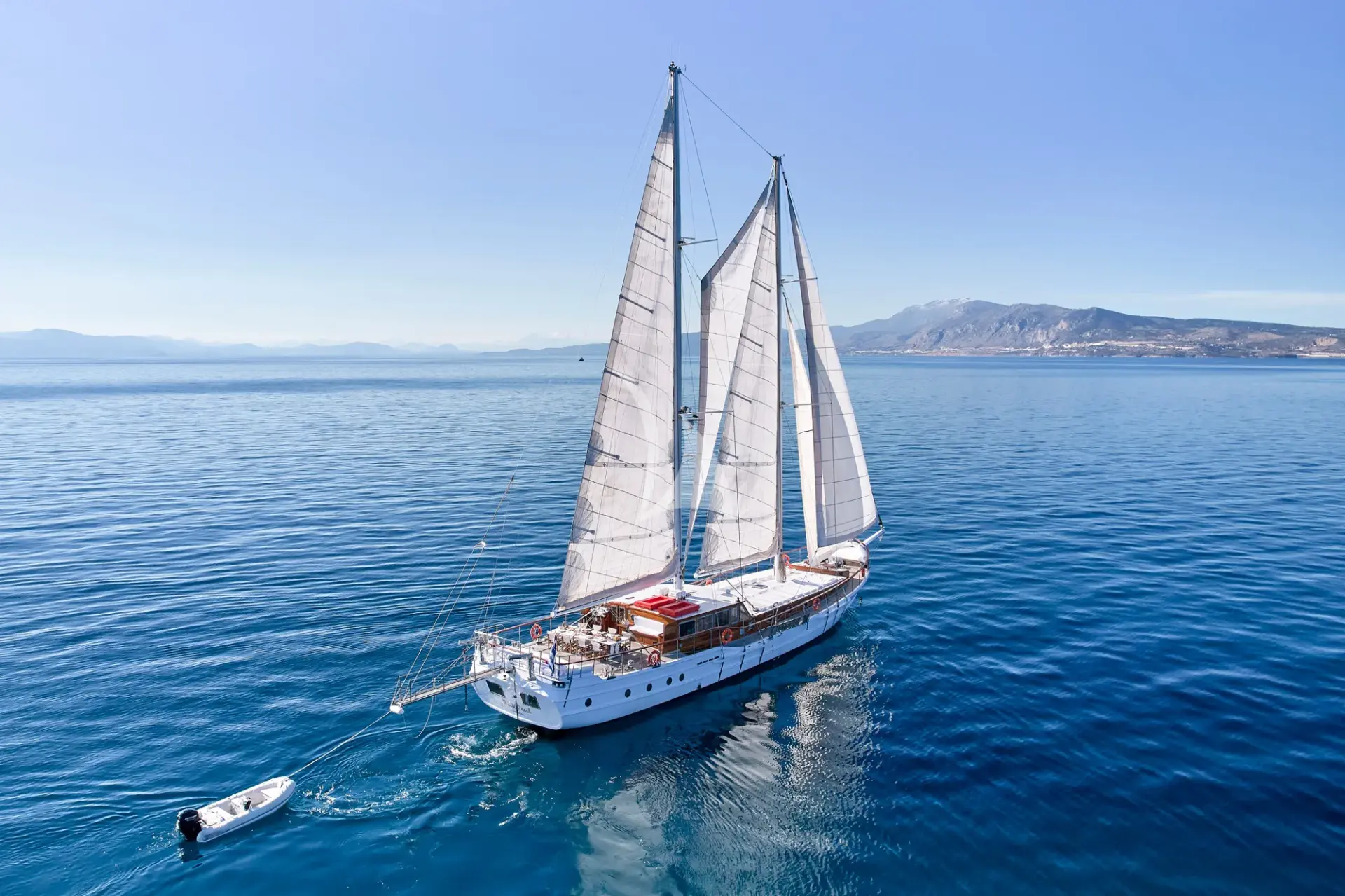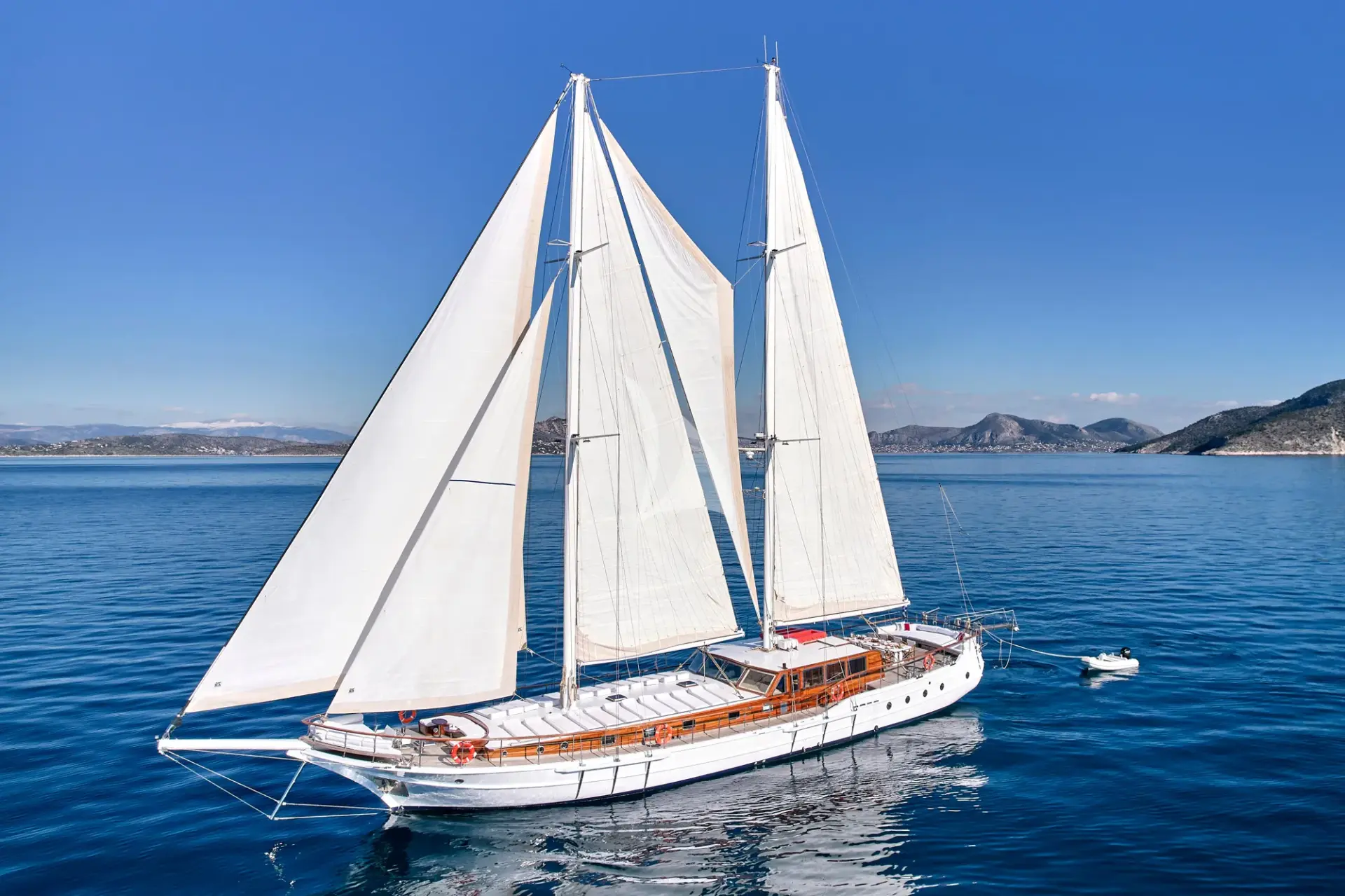 WHITE PEARL is a 34-metre gaff-rigged gulet, crafted in traditional wood and inspired by the historic trading vessels that once sailed along the Aegean coast at the turn of the century—beautifully enhanced with all modern comforts.
