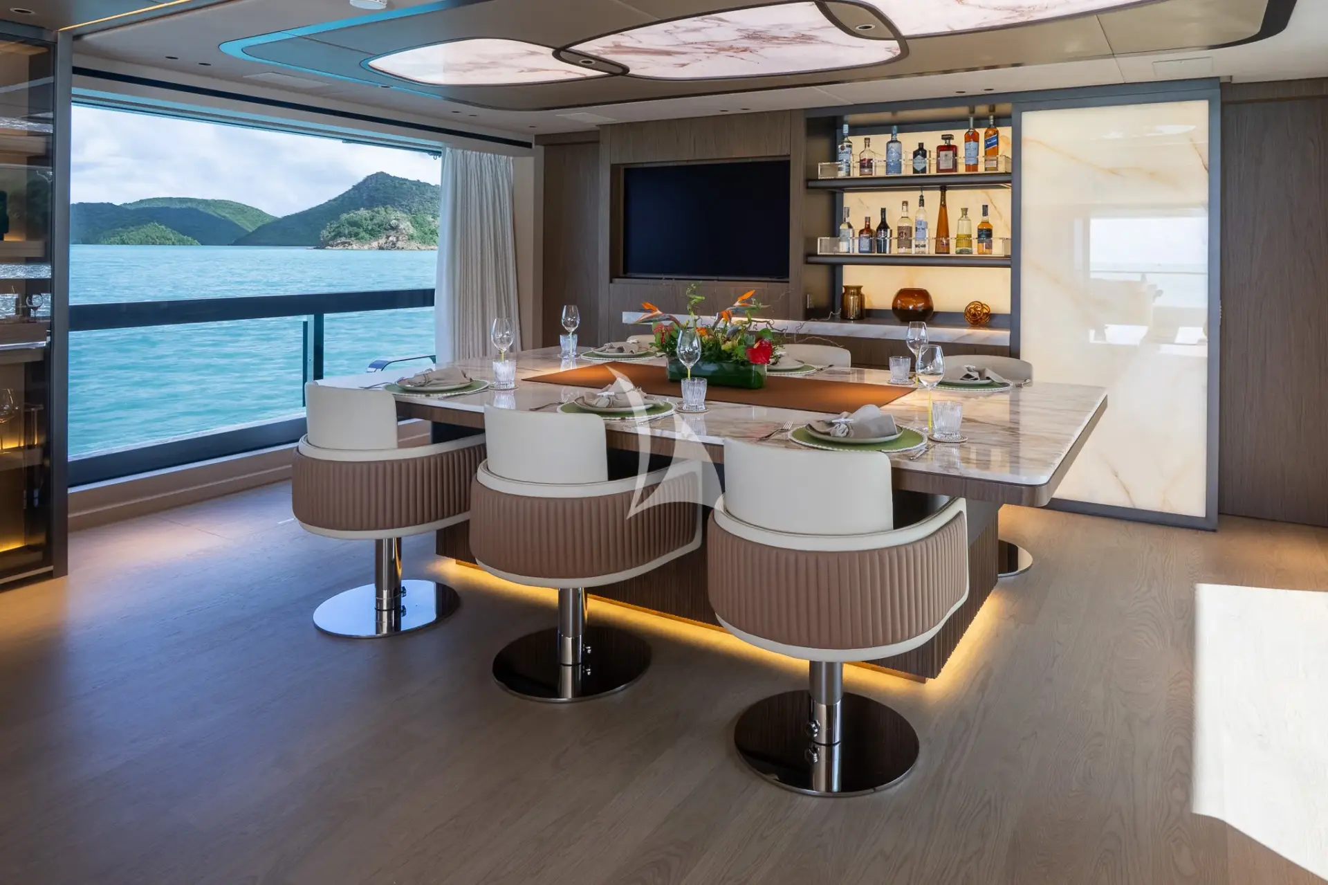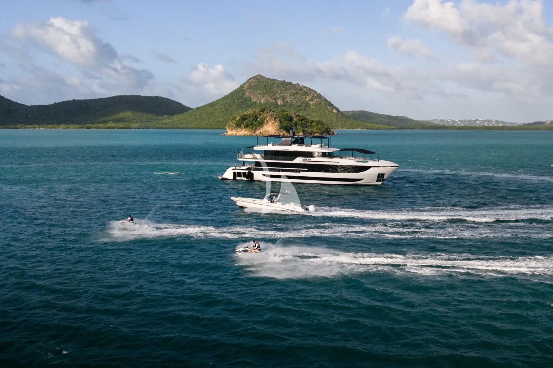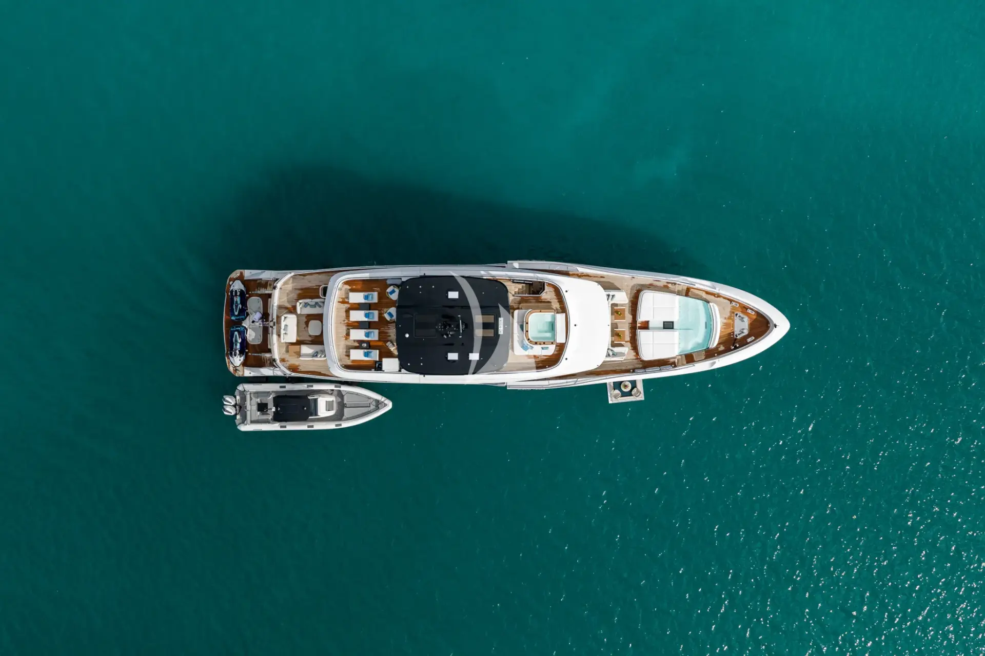 WHITE STAR is a 129ft (39m) motor yacht built by Mangusta (overmarine) in 2025, with design by Overmarine. She accommodates up to 10 guests in 5 cabins comprising 3 single and 2 convertible, with a professional crew of 7 ensuring an exceptional charter experience. Available for charter in North America, The Caribbean and the Bahamas. Notable features include she had generous interior and exterior volume due to her 28 foot beam., she is fully automated throughout with state-of-the-art AV, air conditioning, lighting and related., over 50 speakers located inside and out with 5 Surround Sound TV systems., 2023 Skipper 38' Tender (Twin Mercury 450R(1000HP total)), and 6 Person jacuzzi on sundeck.