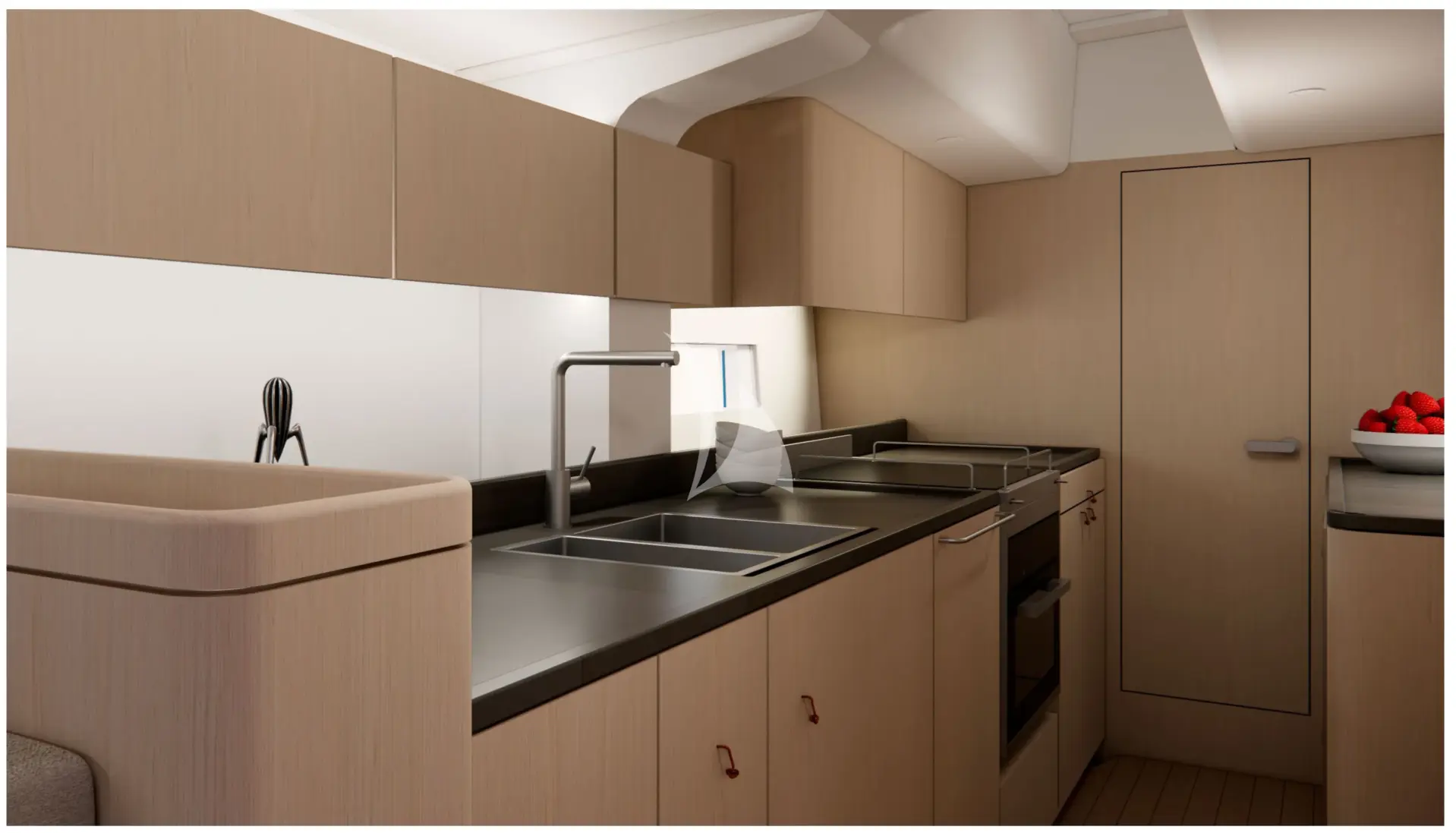 Thanks to her carbon hull and solid construction, YUME is remarkably quiet inside, ensuring a very peaceful atmosphere while sailing.