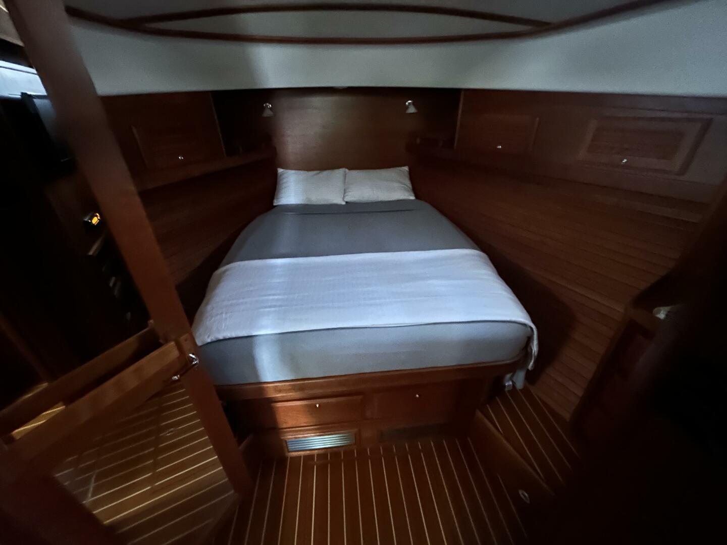 - Master stateroom forward with Queen size island berth