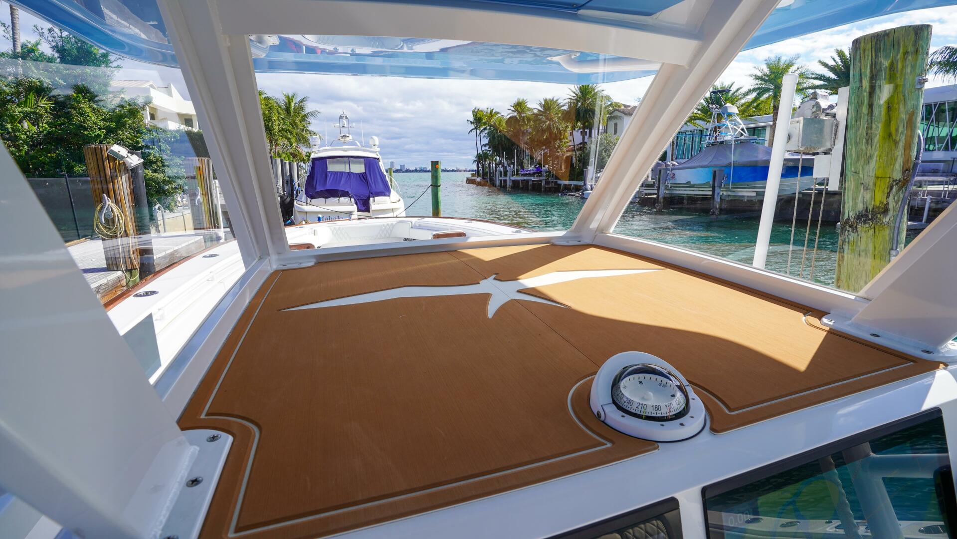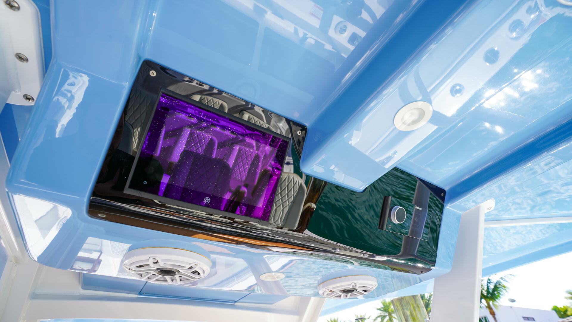 At the helm, she delivers a commanding, climate-controlled operating environment with custom helm and console air conditioning and a full windshield enclosure. The advanced electronics suite centers around Garmin multifunction displays, including dual 8622 MFDs and a 8616 at the main helm, supported by a GSD 25 sounder, R111LH 2kW transducer, GMR 1224 xHD2 open-array radar, SiriusXM weather, FLIR M364C thermal camera, ACR LED spotlight, and GOST Nav Tracker security system. JPO joystick control, bow thruster integration, windlass controls, and Mercury VesselView 903 place total vessel control at the captain’s fingertips, while a premium JL Audio sound system delivers concert-quality audio throughout the boat.