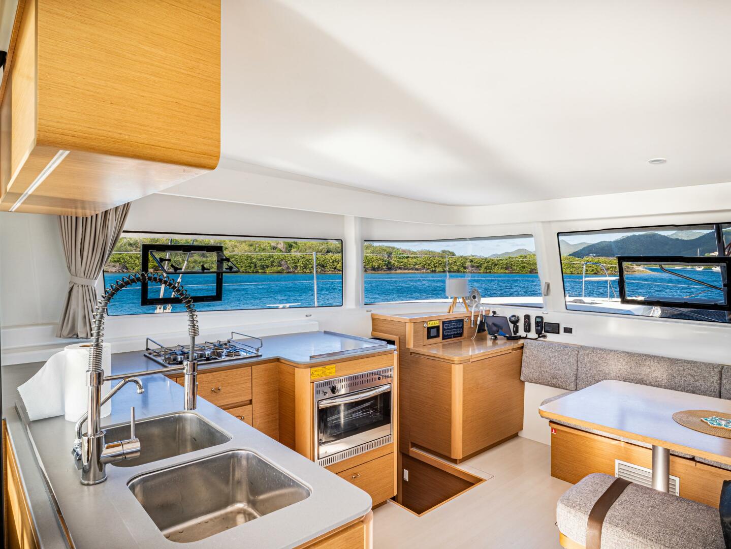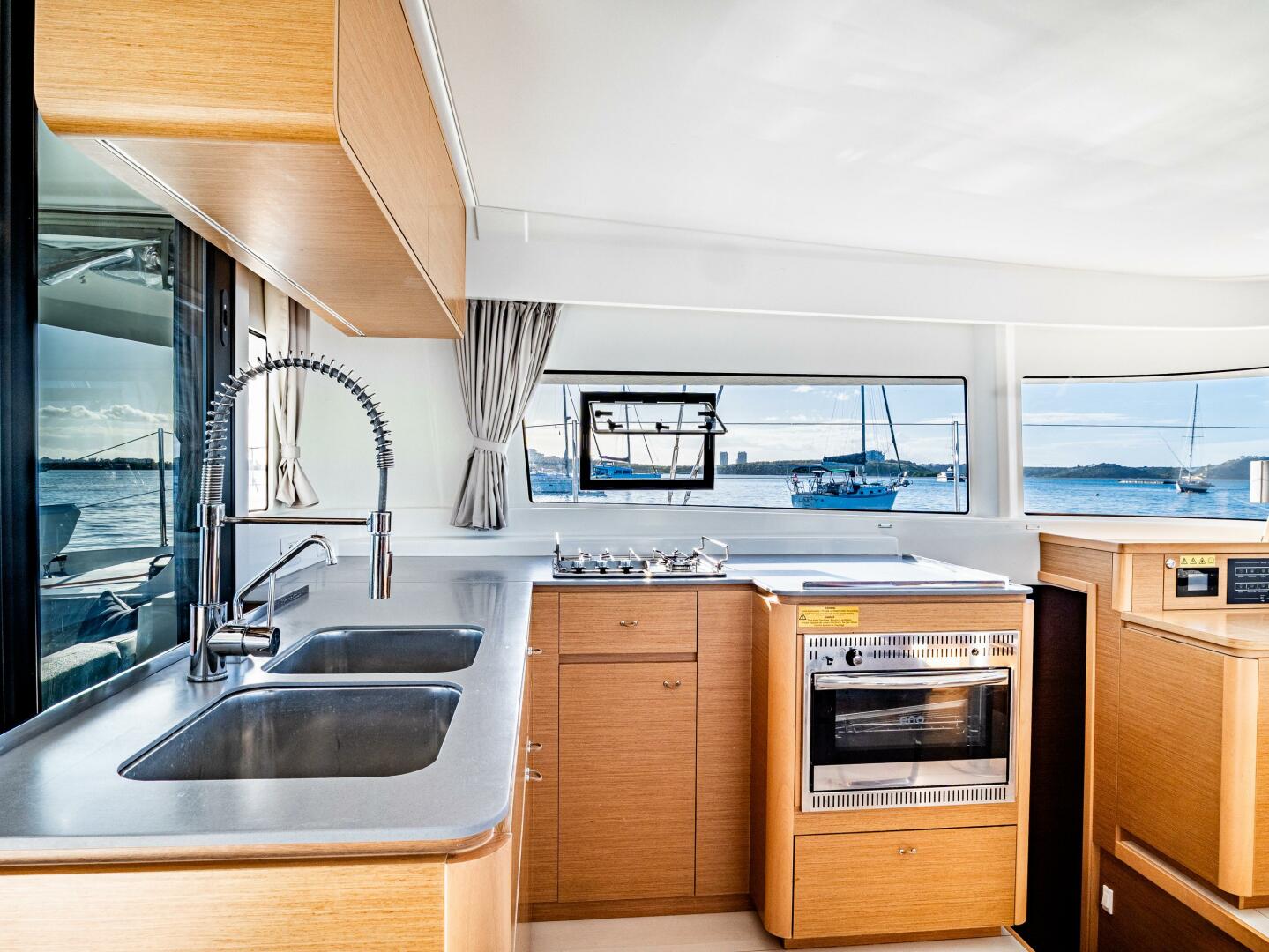 Fully equipped cruising galley suitable for long-term live-aboard use.