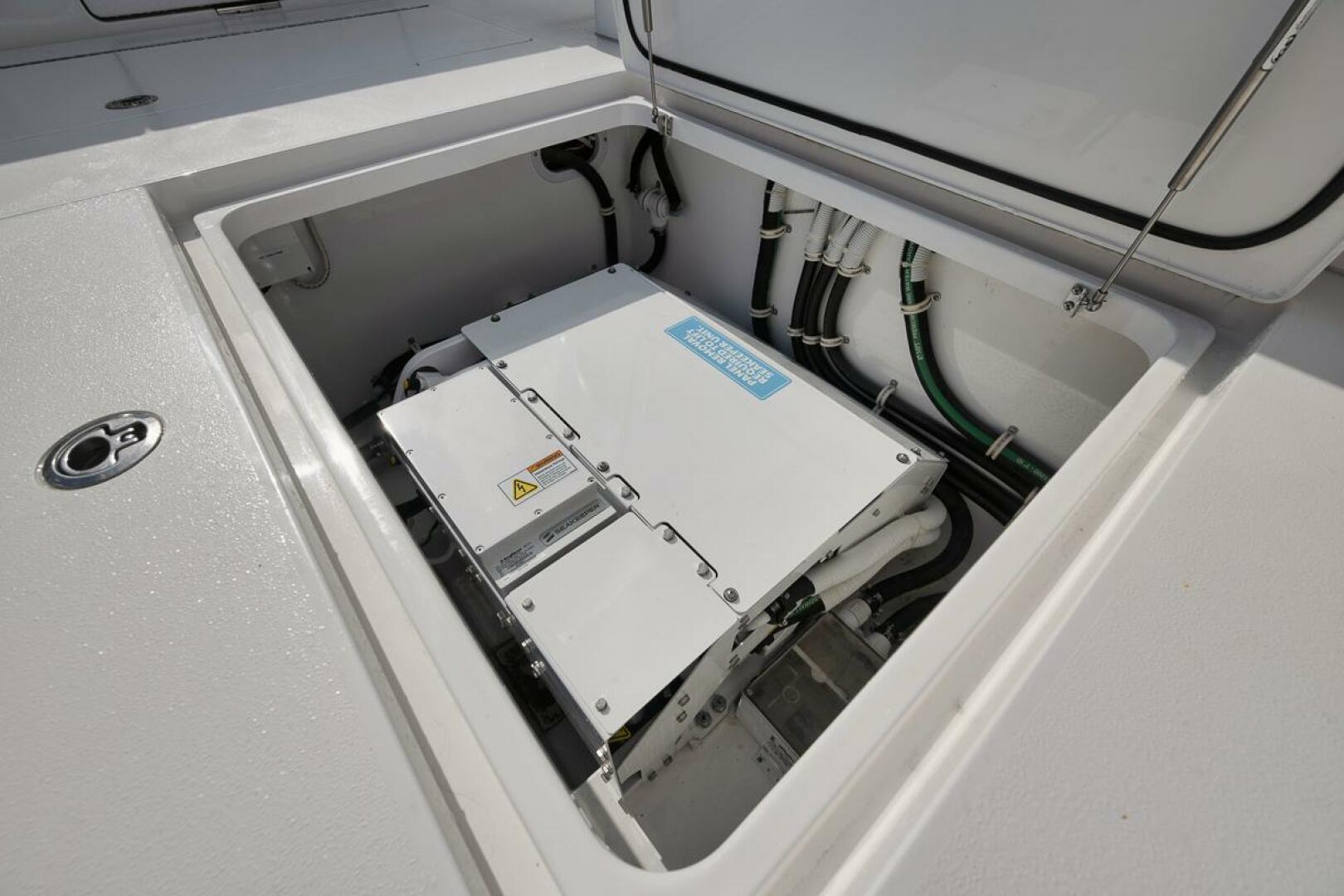 Edson steering wheel with power knob satin finishFiberglass hardtop with polished aluminum finish, spreader lights, 6 rod rocket launcher, radar pod