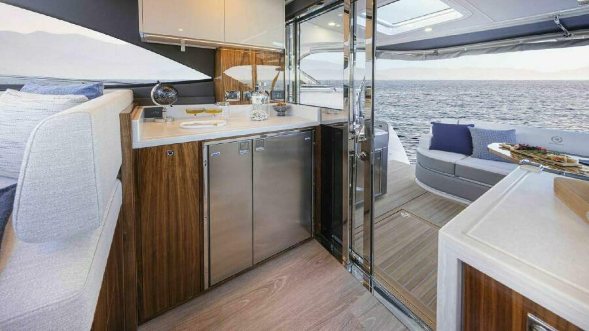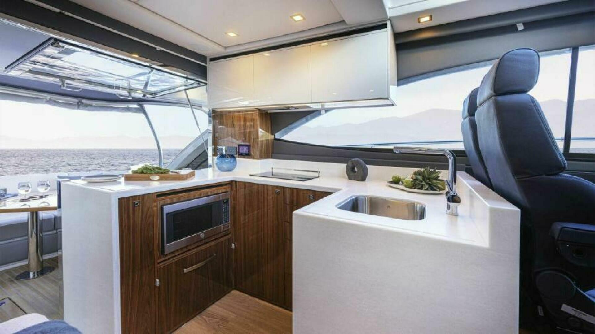 - Waterfall galley benchtop ends in solid surface to match galley benchtop selection