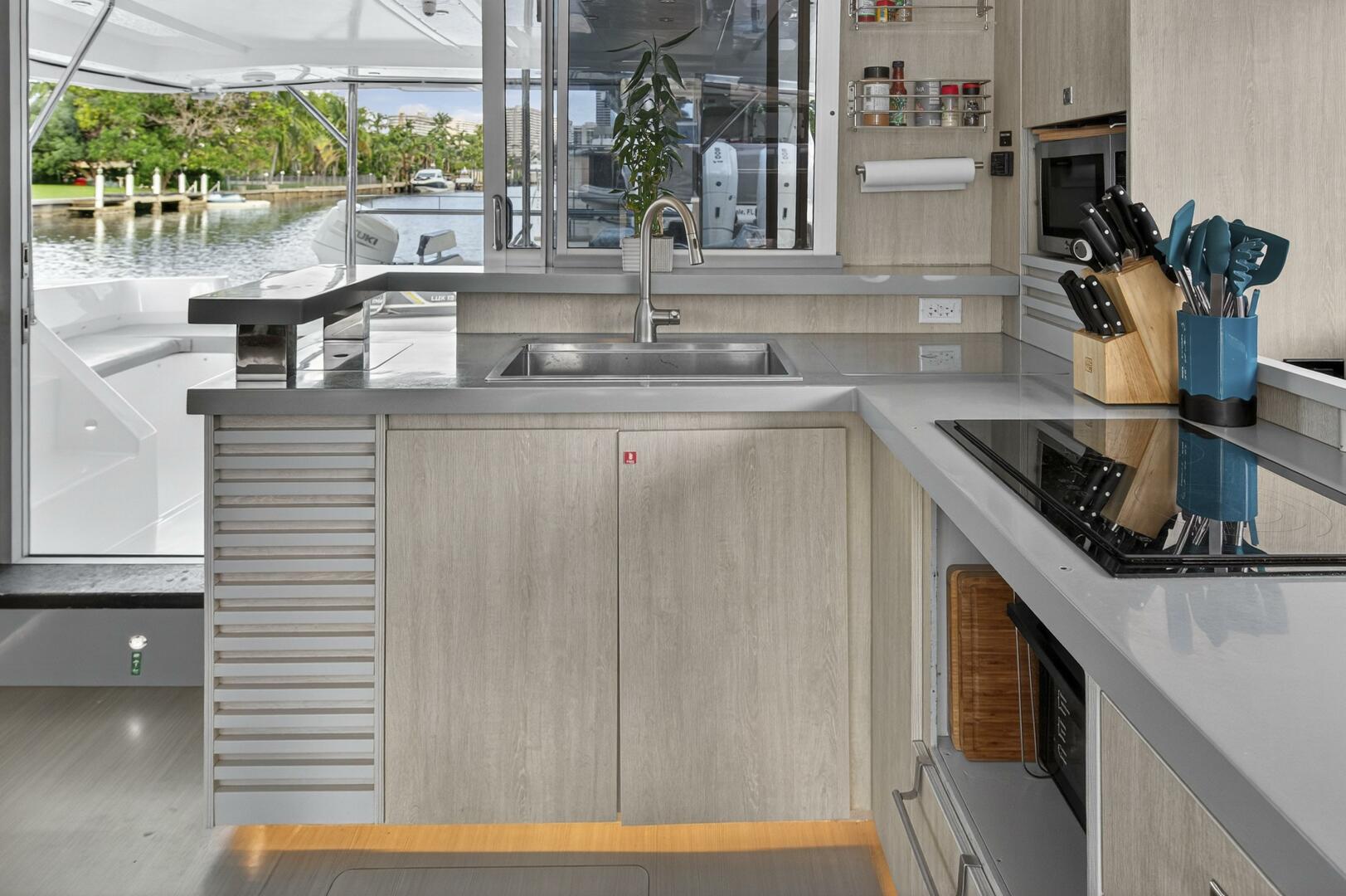 Air conditioning, Flybridge, Galley, Panoramic windows, Water Maker