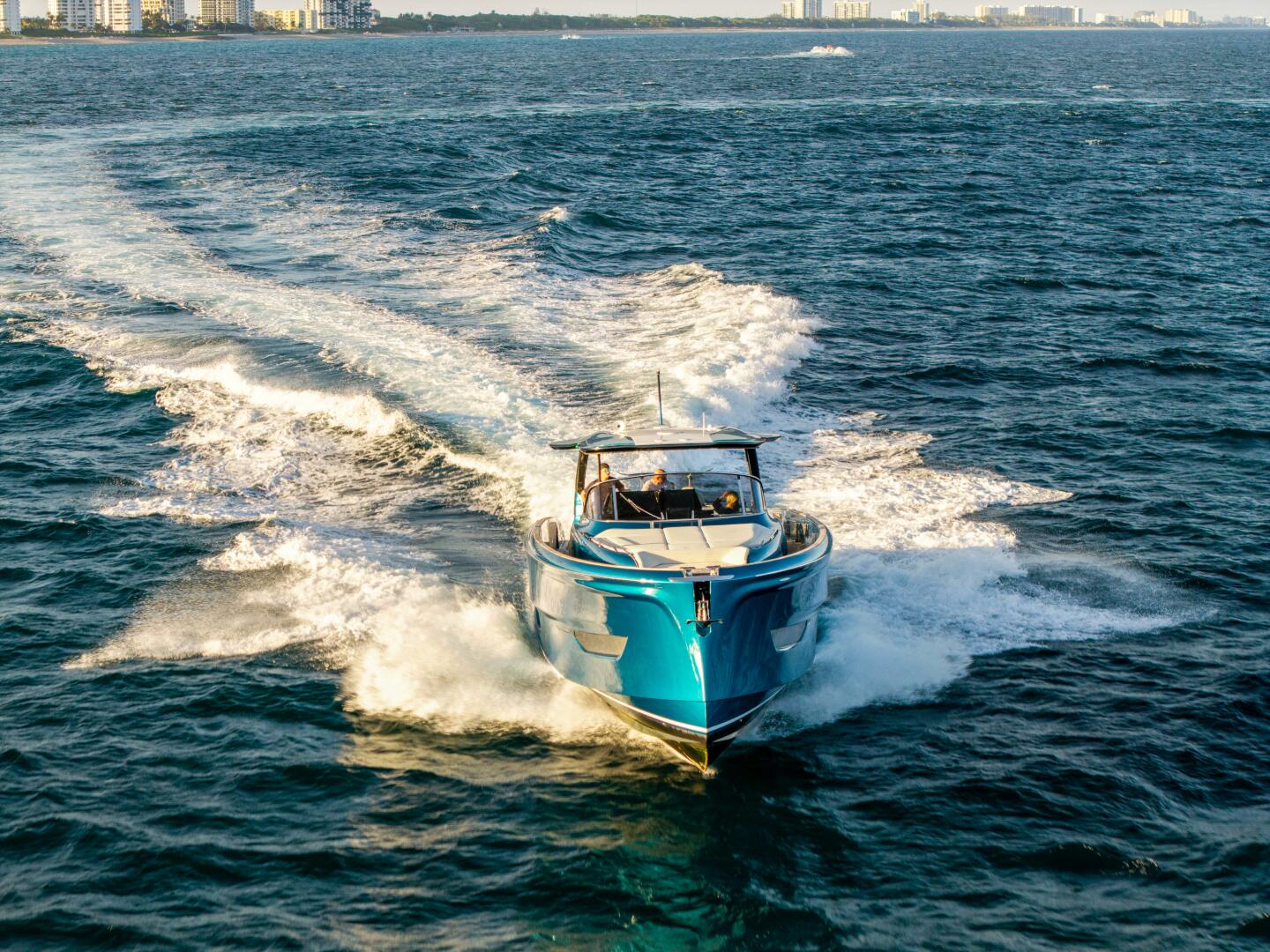 - Standard version: Owner's midship cabin with private bathroom and separate shower, Vip bow cabin with private bathroom and separate shower, Storage compartment, Dormast color interiors, 2 Volvo Penta IPS 650 (440H) engines, Outdoor upholstery Silvertex Ice Cream Color, 4x Service batteries 180Ah, 2x 12" Multi-Function Volvo Display, 9Kw generator, Deck layout with L-shaped galley, Linear sofa, Sunpad, Fixed stern platform, Stainless steel rub rails in stern area, Gunwale on natural wood walkaround.