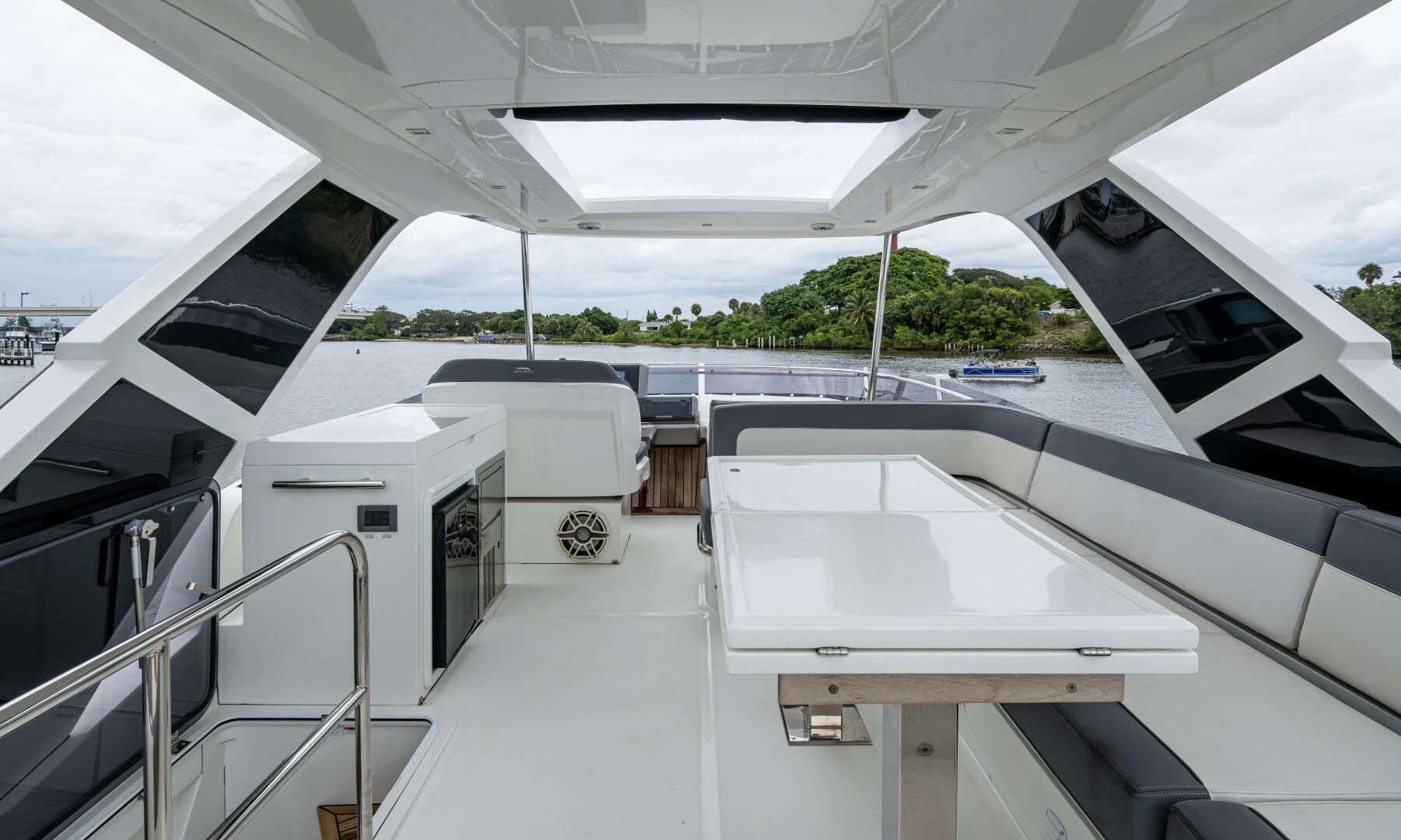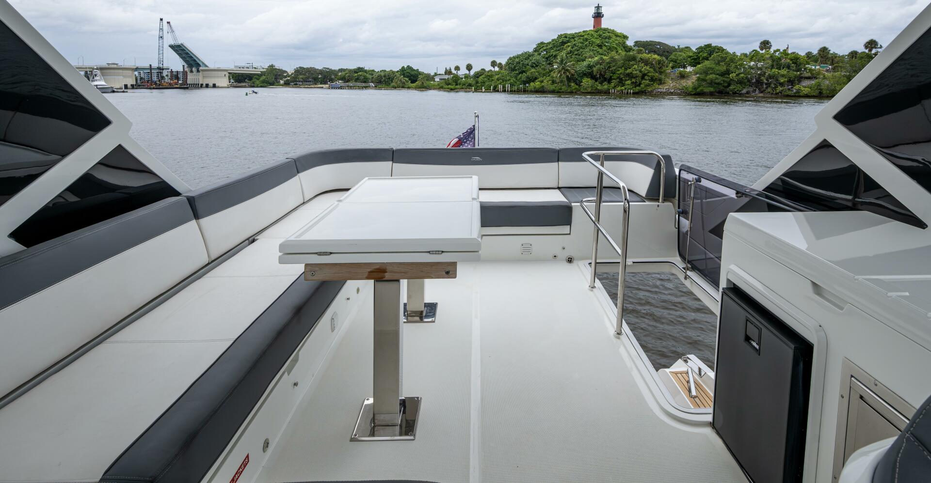 - Sunpad, forward with doublewide starboard backrest for adjacent helm seating