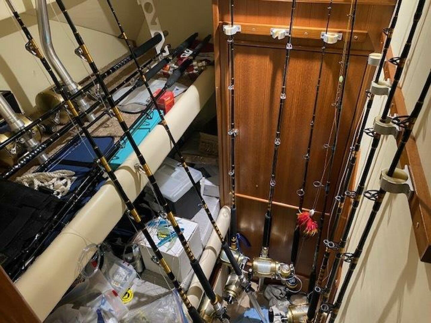 Gaff Lockers with separate ship's service and washdown lockers aft on either side