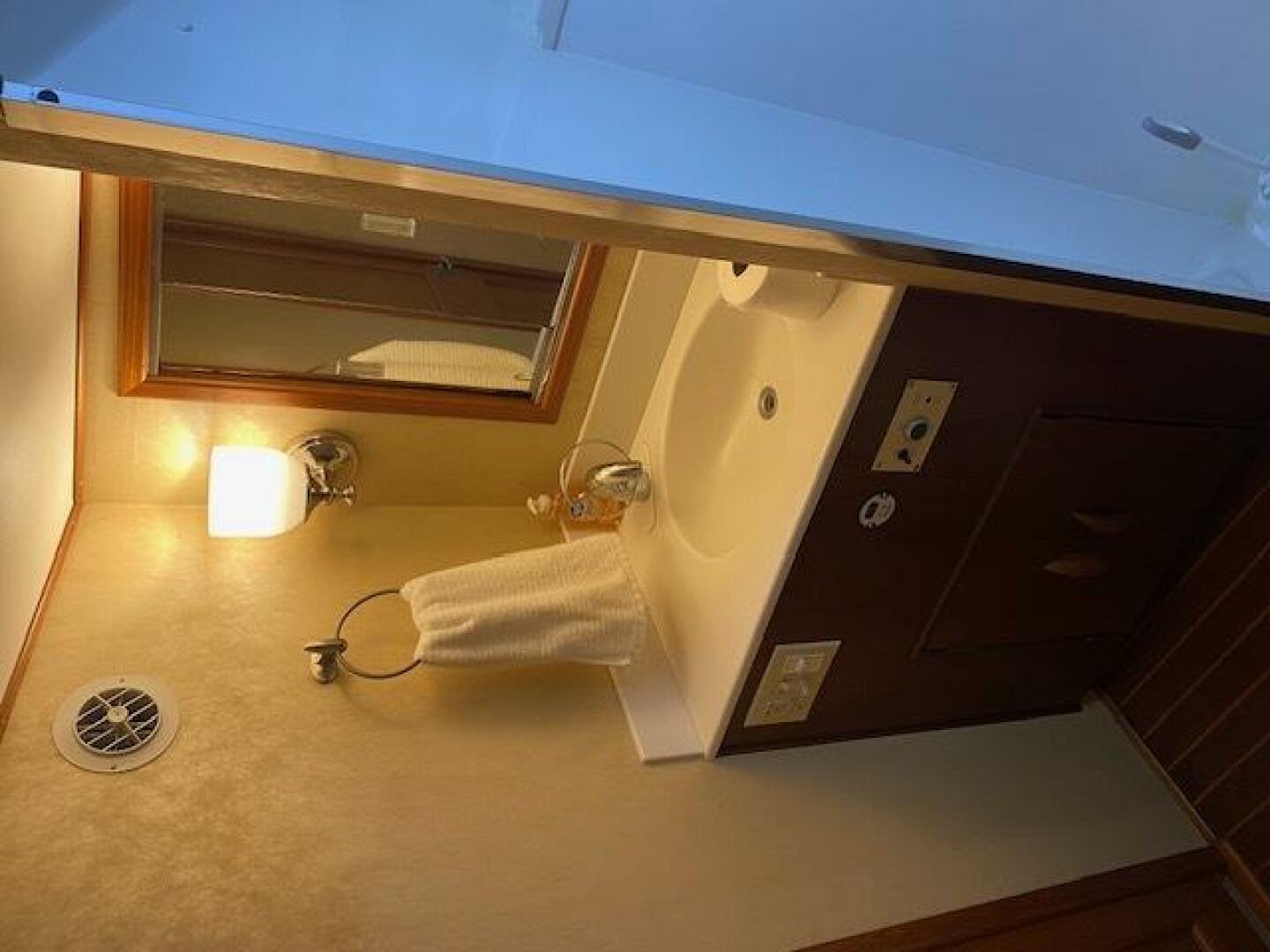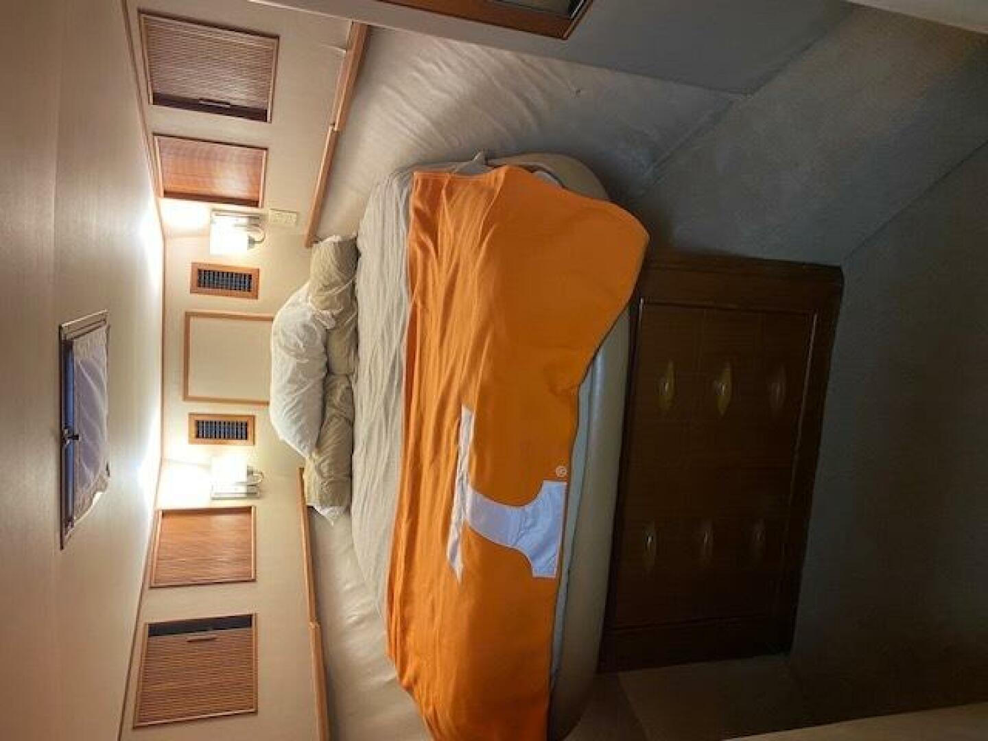Crew's Quarters are located to the starboard at the beginning of the companionway. Comfortable quarters with a lockable door and shares a head with the Guest Bunk Room