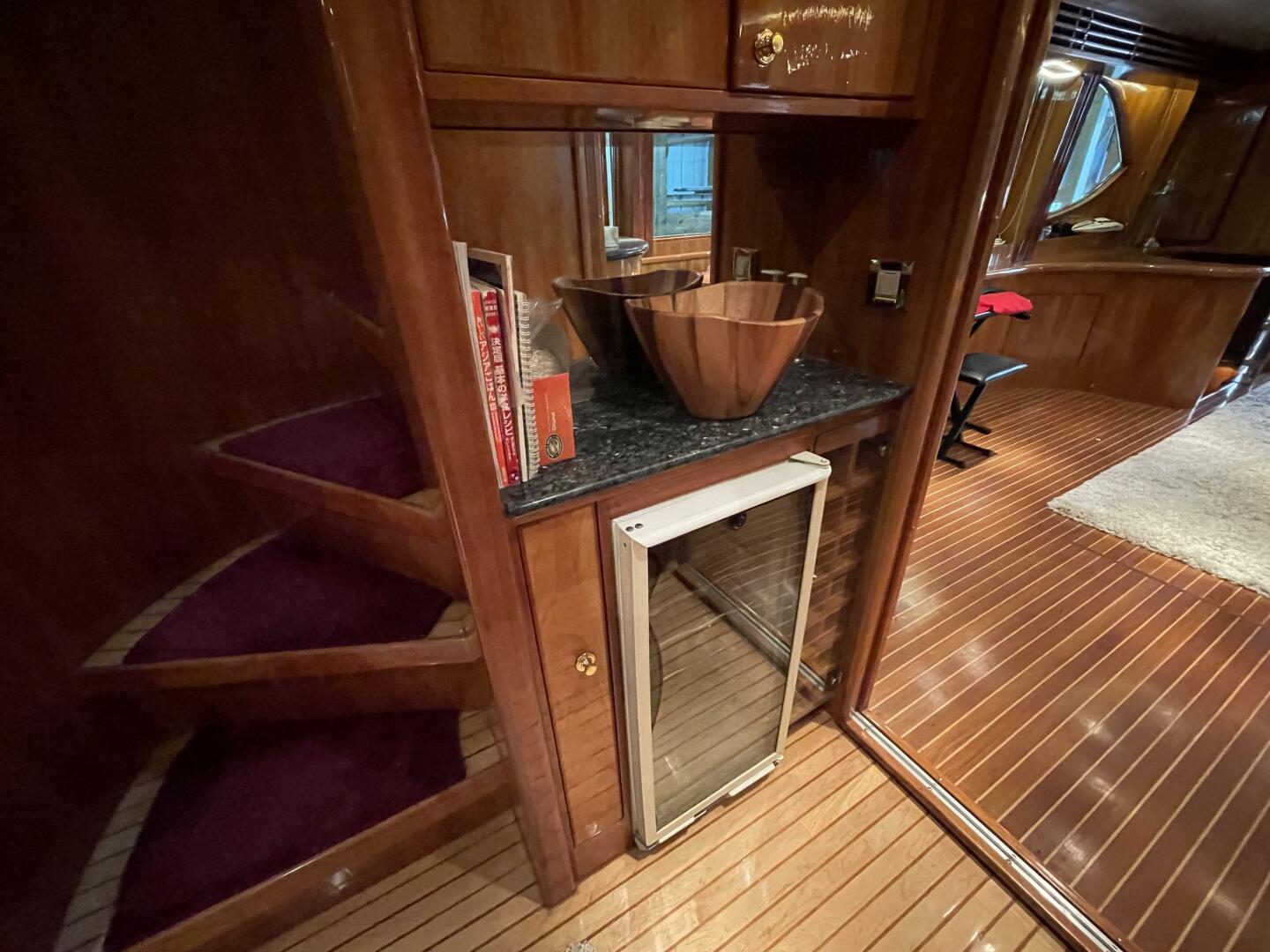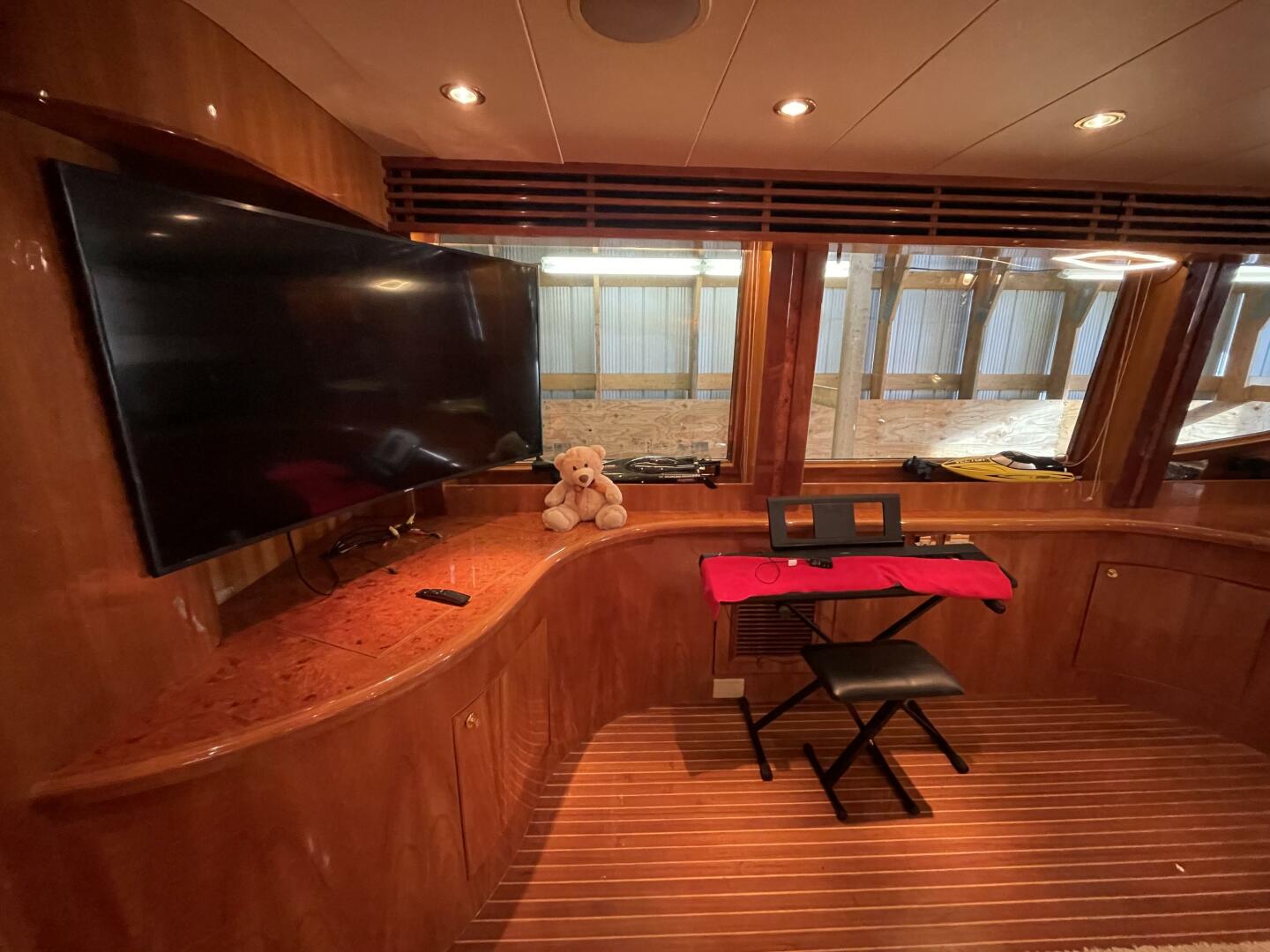 - Flybridge skylounge with L-settee, helm seat & wet bar