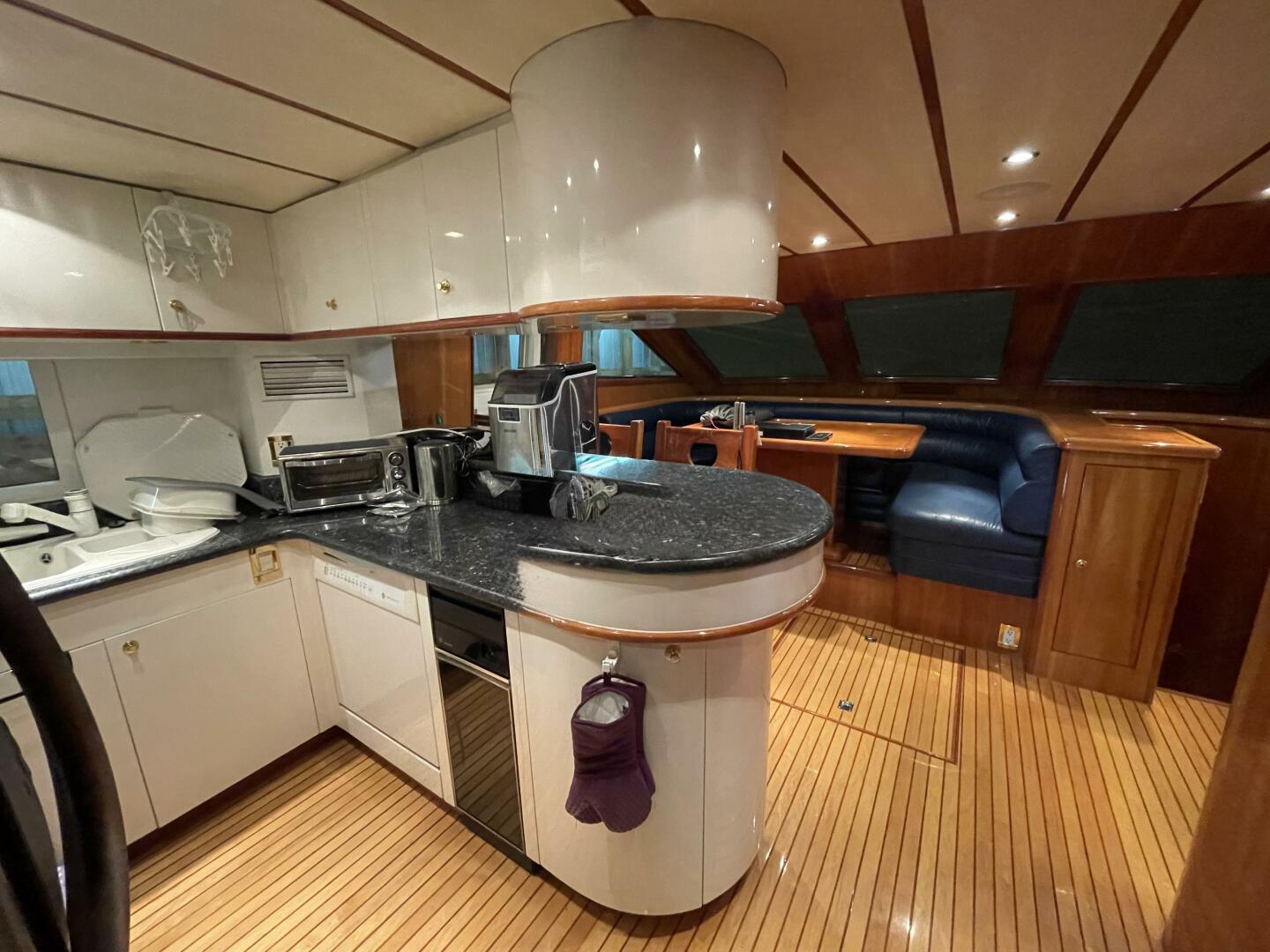 The fully equipped galley features granite counters, breakfast bar w/ stools, dinette seating, and an excellent view forward.