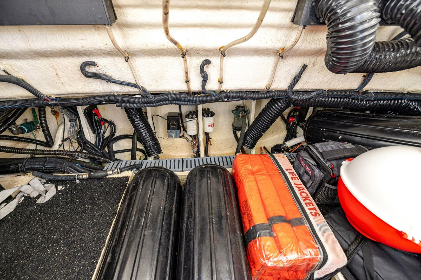 - Transom and Cockpit Seating is Electrically Actuated to Lift Providing Access to the Huge Storage and Machinery Compartment Housing Generator and Seakeeper