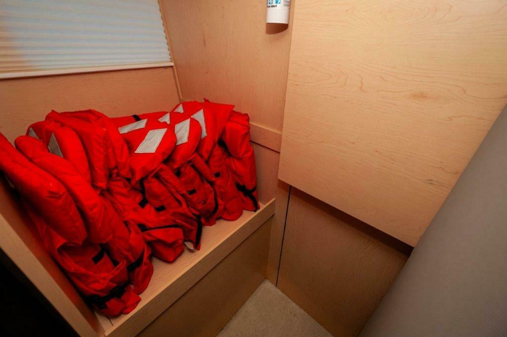 - a Marquipt boarding stairs with handrails on both sides of boat for boarding and deboard