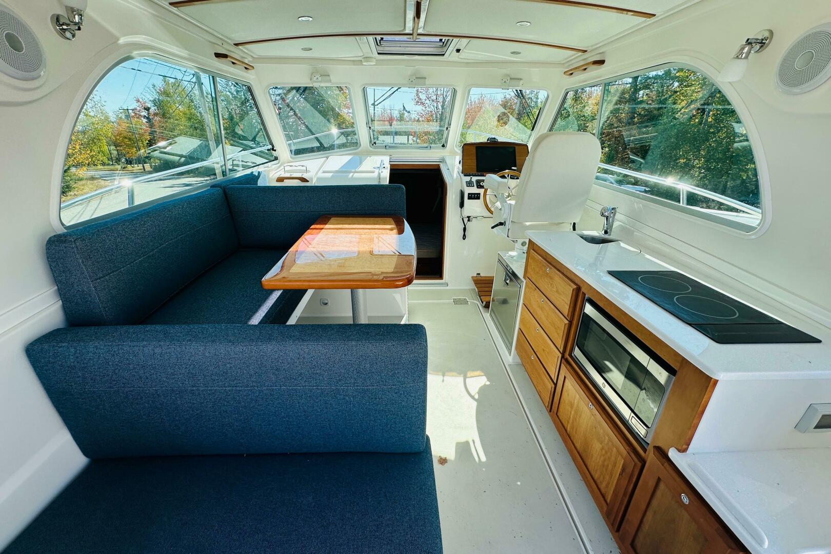 - Convertible aft dinette seating with Back Cove high gloss inlaid table