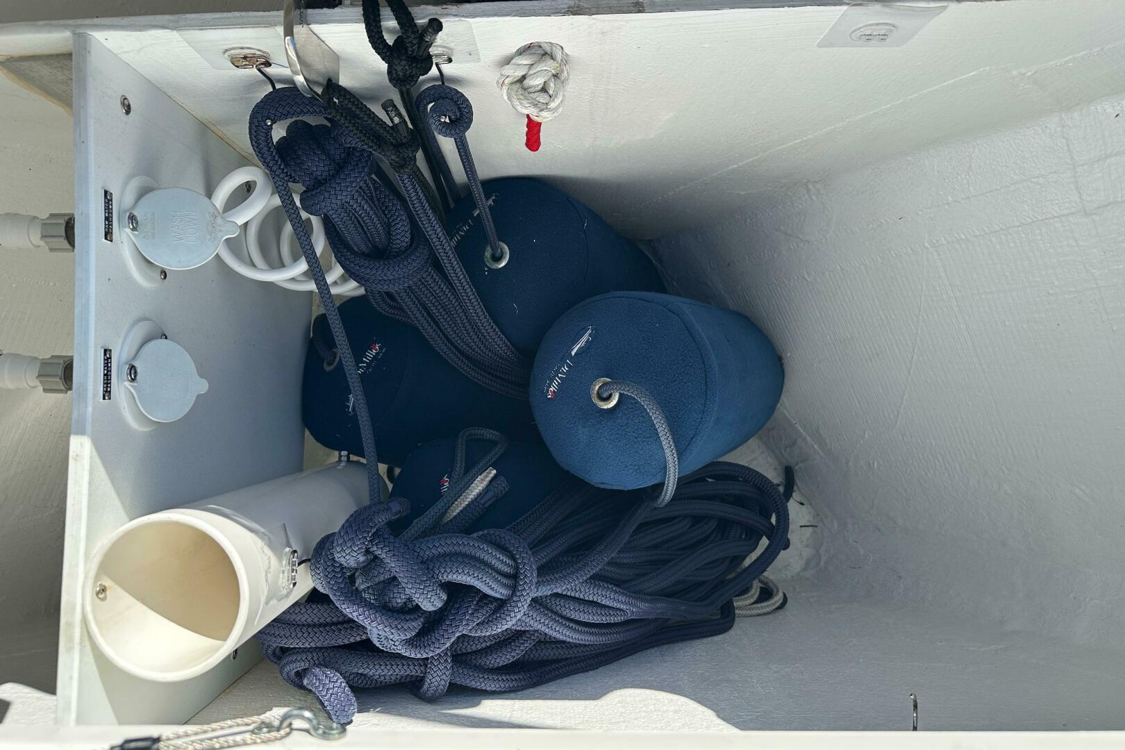 - Mooring cleats forward, aft and spring line. Aft cleats are pull-up style