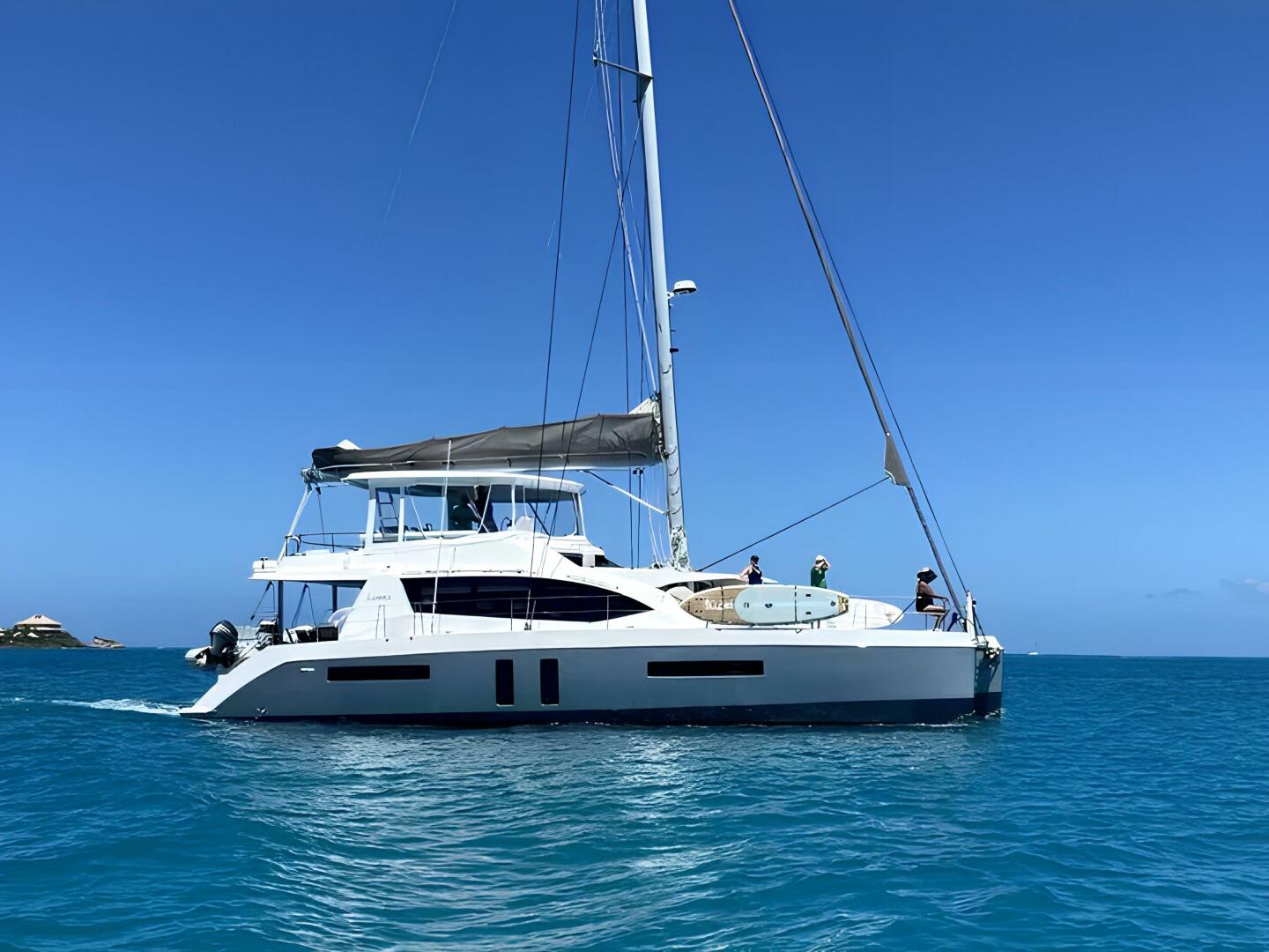 Throughout the vessel, the benefits of continuous care are evident: the tender platform operates smoothly after servicing, the Northern Lights 20 kW generator runs reliably under load, and the overall structure—hulls, decks, chainplates, deck hardware, and crossbeam—tested sound with no delamination noted. Safety gear has also been updated, including SOLAS lifejackets, a serviced 6-person life raft (valid to 2026), an EPIRB, updated flares, bilge alarms, and fire suppression systems, making ANNEX fully prepared for immediate cruising.
