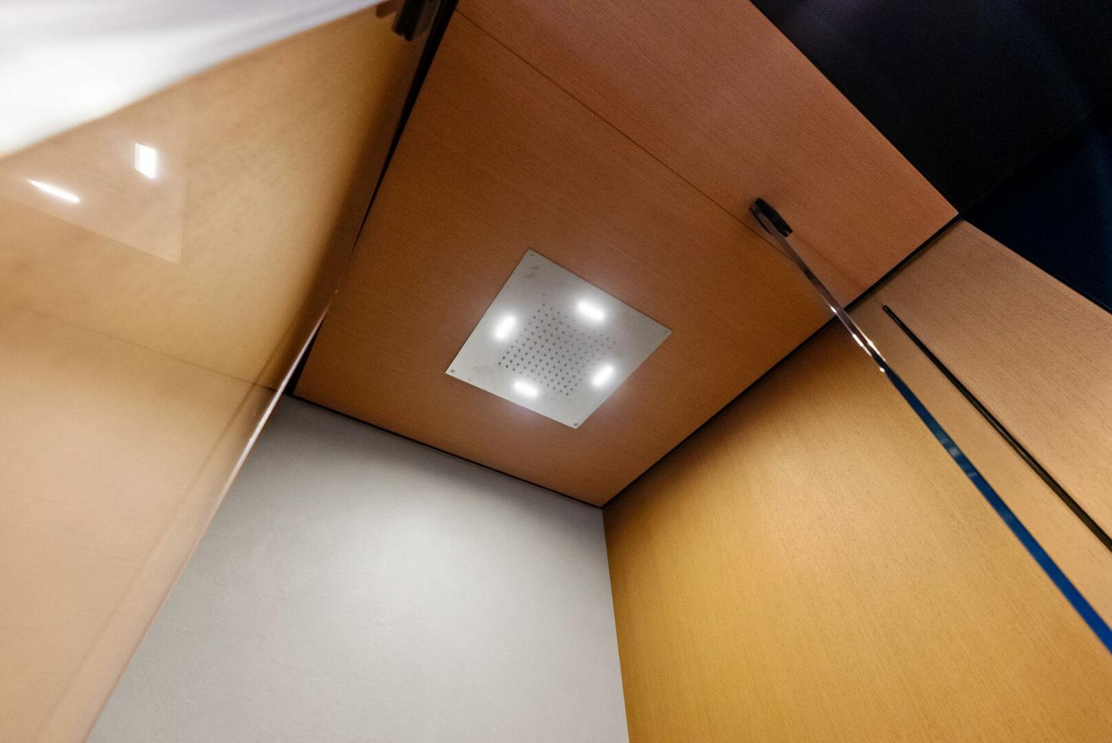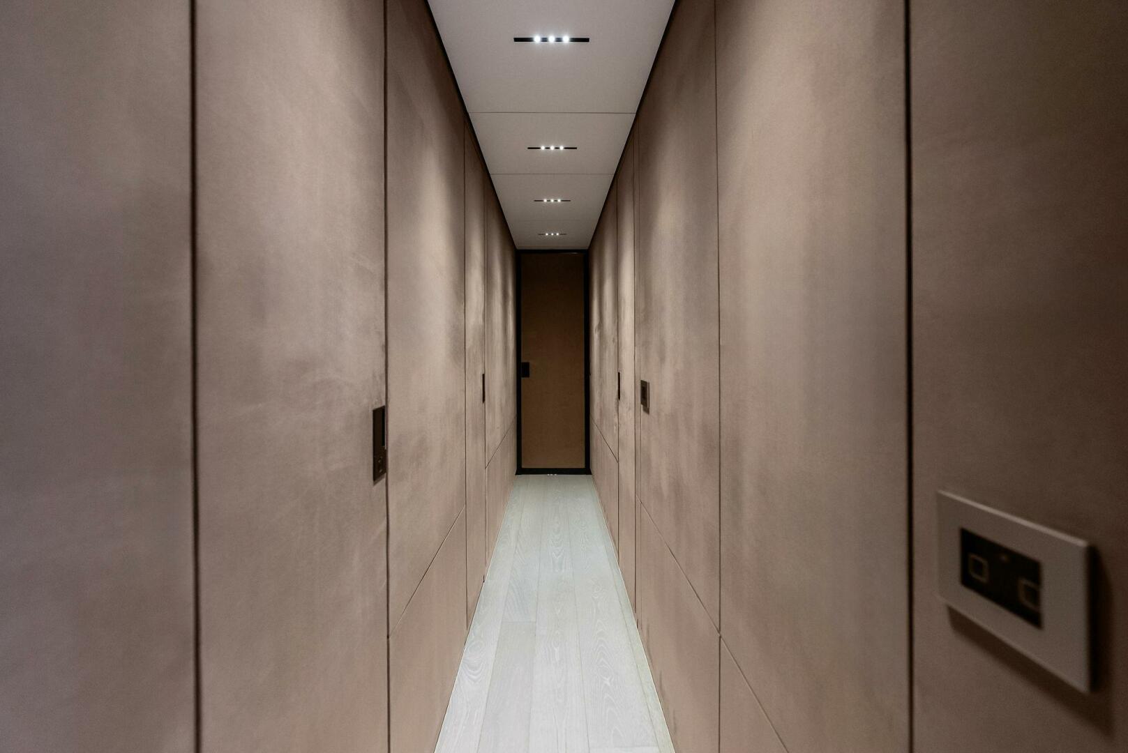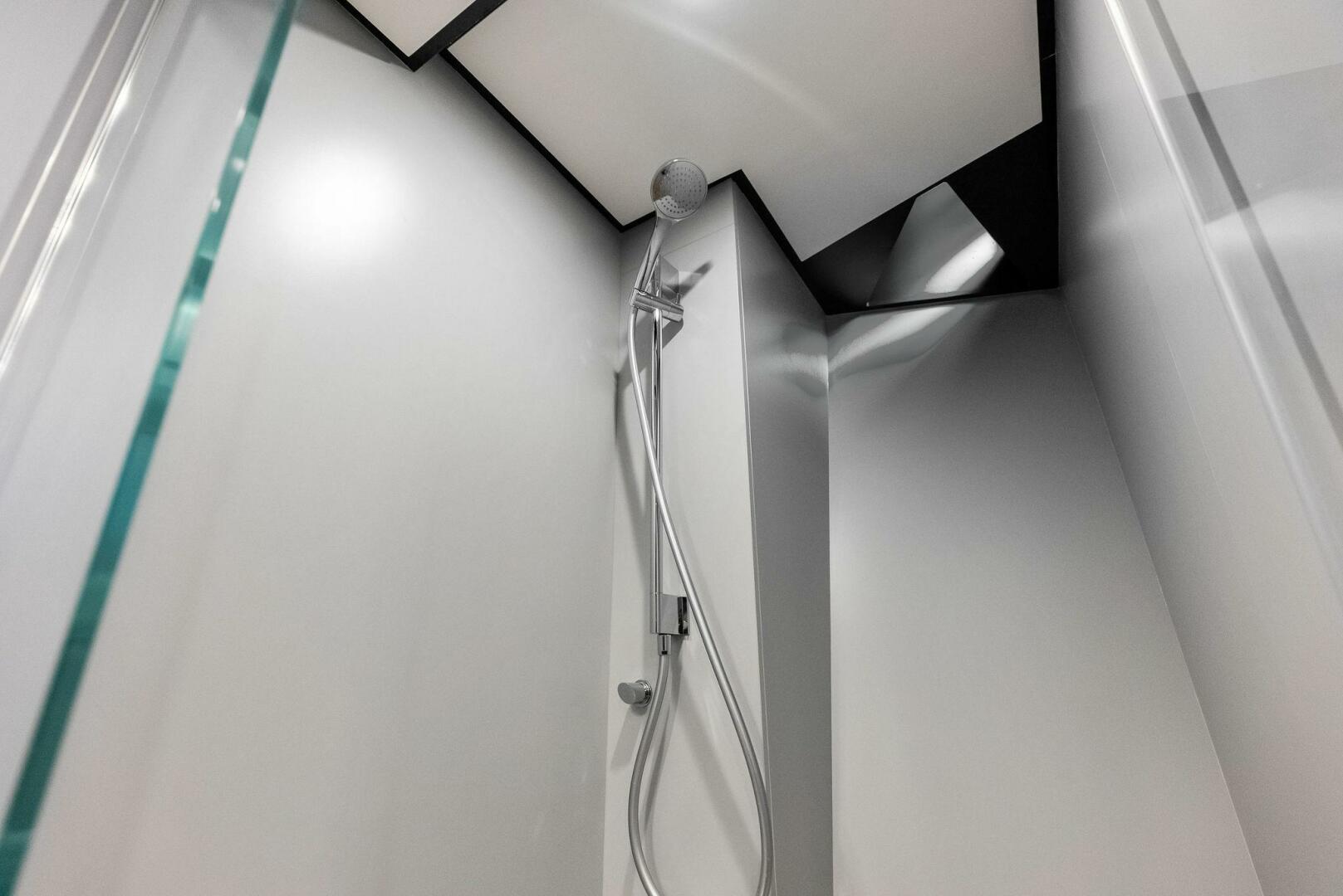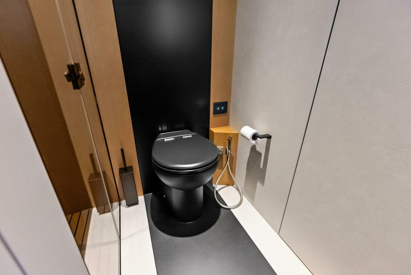 - The lower deck includes a full-beam owner’s suite amidships with an en-suite. featuring electrically switchable smart glass—transparent or opaque at the touch of a button.